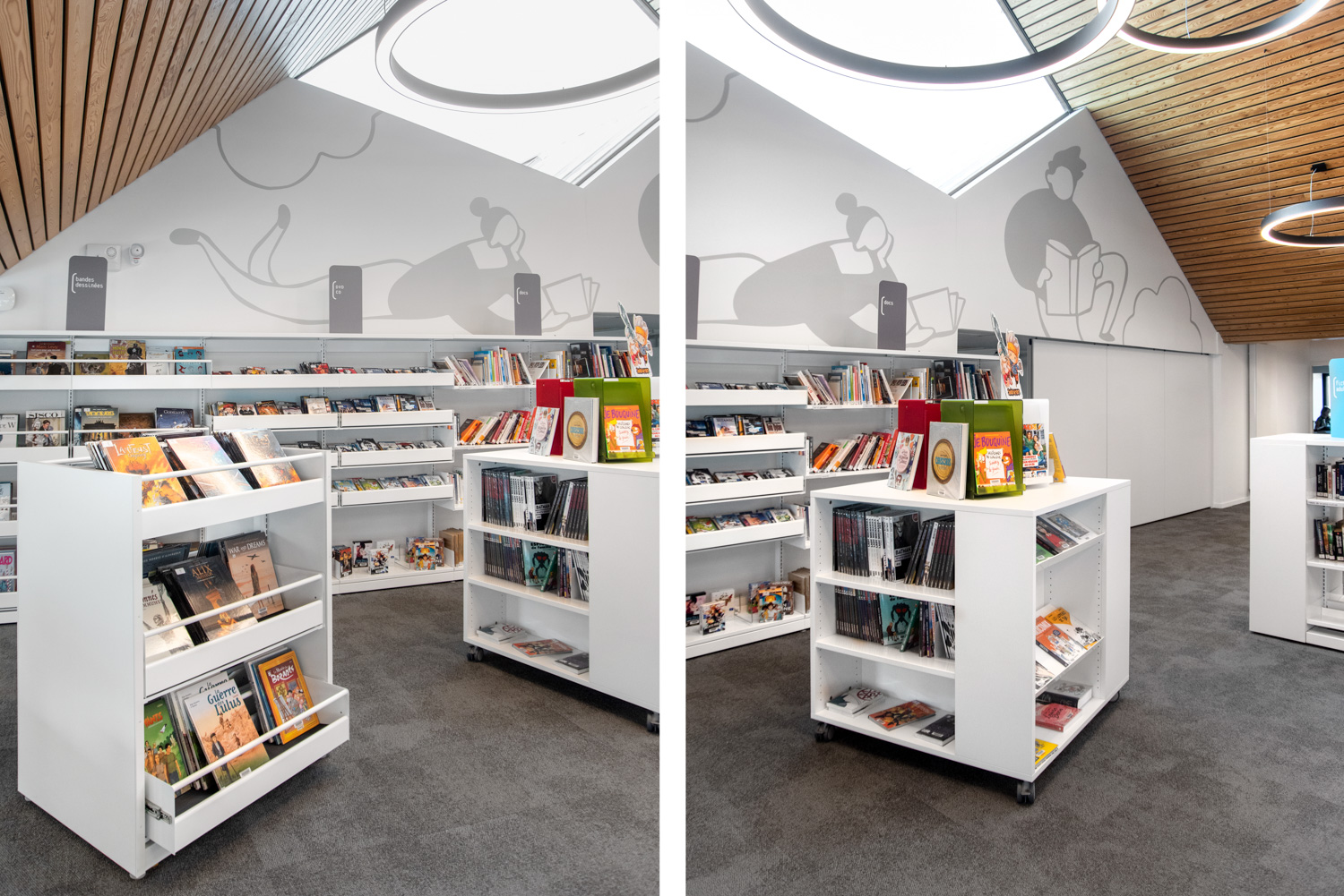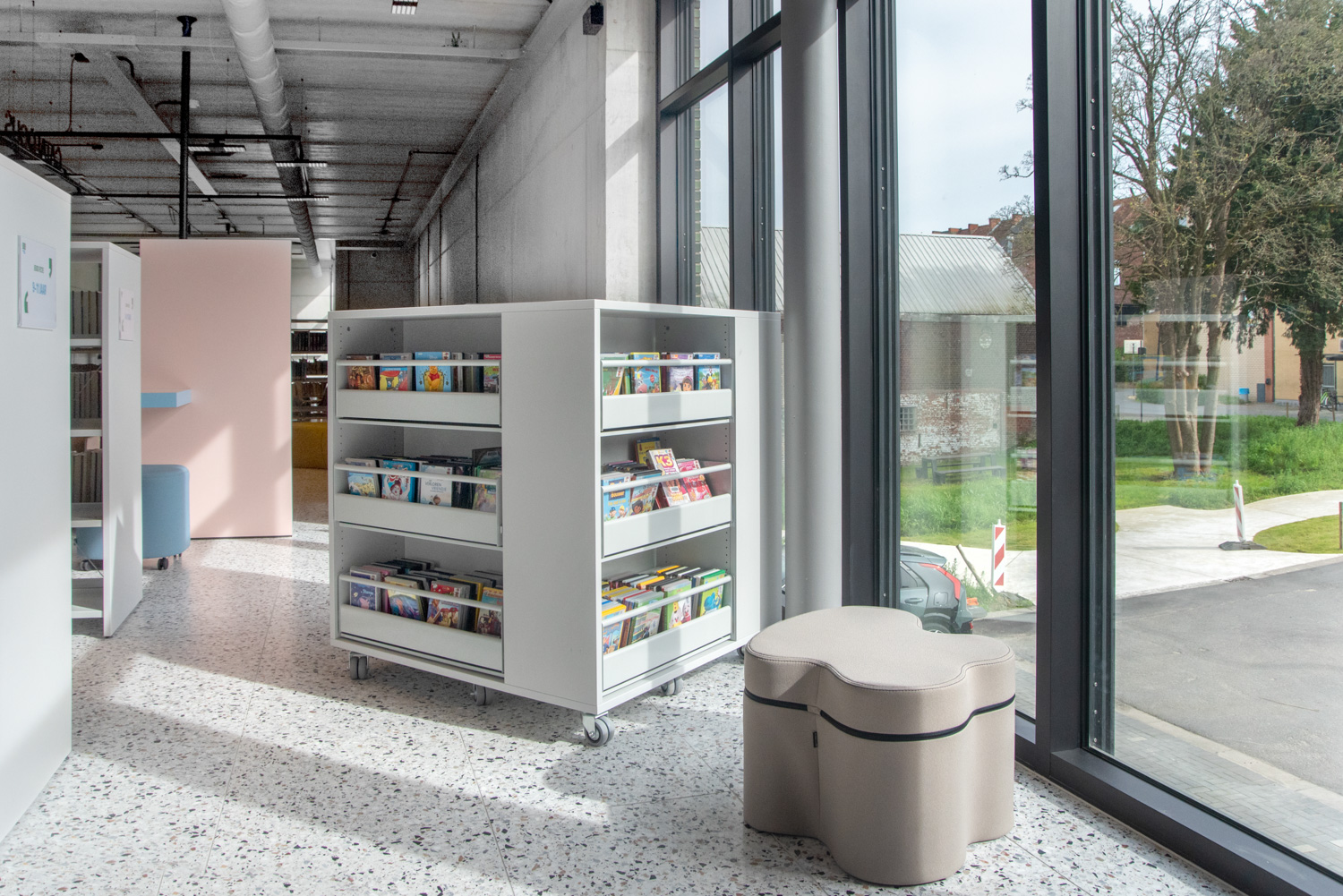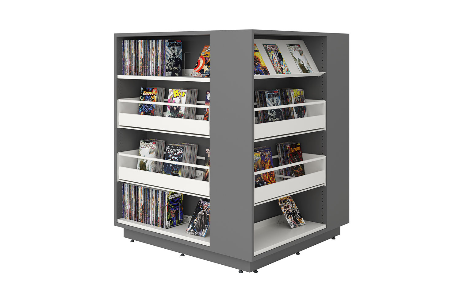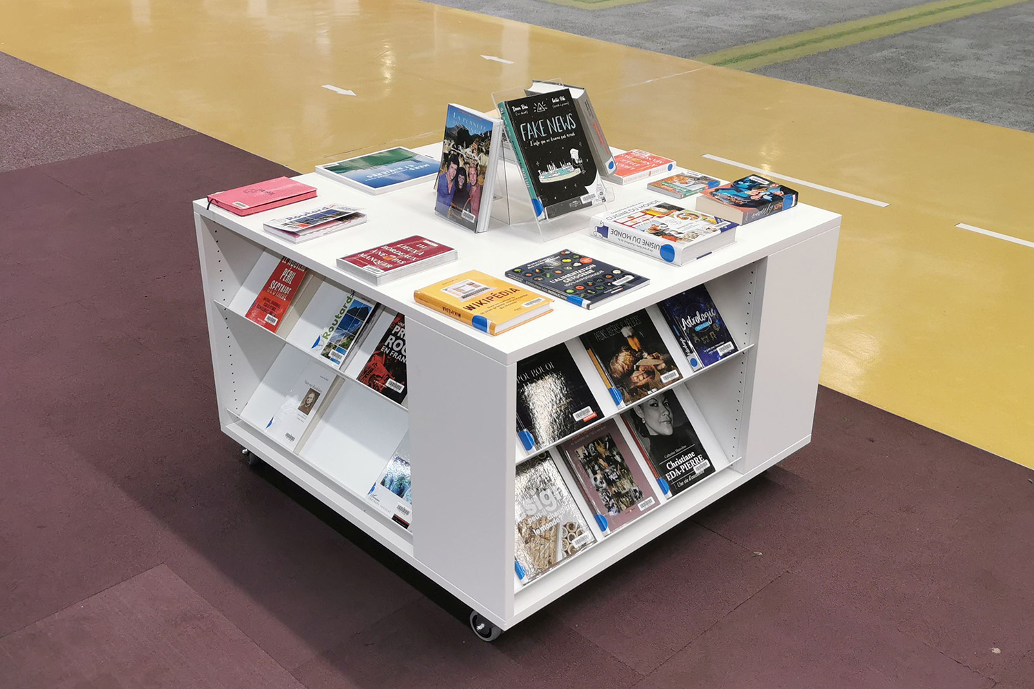 Setzen Sie das quadratische Regalsystem zur Unterbringung einer großen Büchermenge ein – oder als Display unter Verwendung einer Kombination sowohl von flach- als auch schräggestellten Fachböden. Der Abdeckboden des Lingo Square ermöglicht verschiedene Nutzungen – z. B. als Arbeitstisch, Display oder Spielzone.