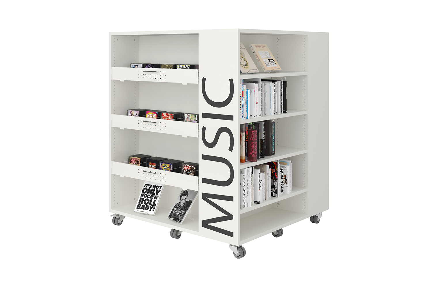 Wählen Sie zwischen einer melaminbeschichteten, lackierten oder furnierten Oberfläche. Sämtliche Standard-Modelle sind mit 8 Rollen oder Sockel ausgestattet.