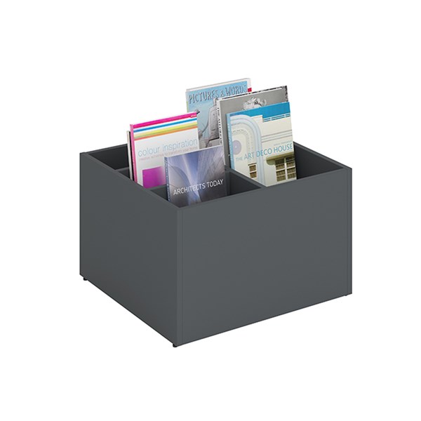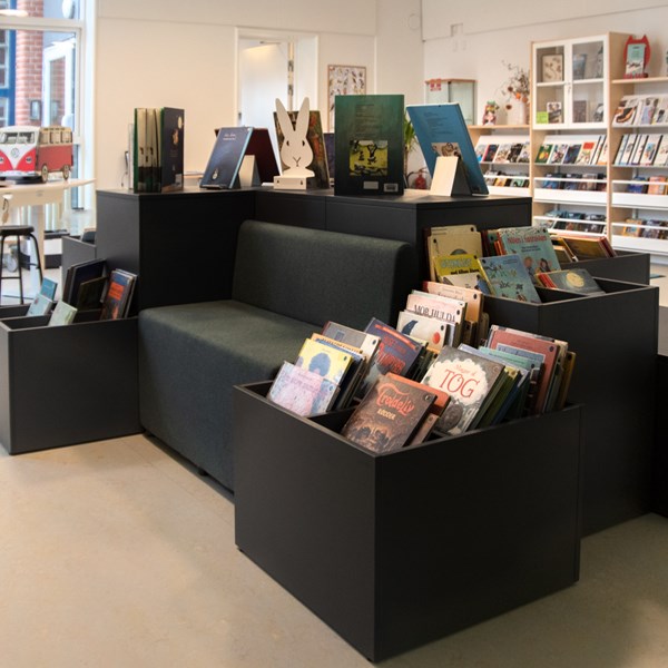 Maria ist eine Serie von Podien mit Trog erhältlich in zwei Größen (50 cm und XL 64 cm) und drei Höhen (Mini, Midi und Maxi) für flexible Bibliothekseinrichtungen.