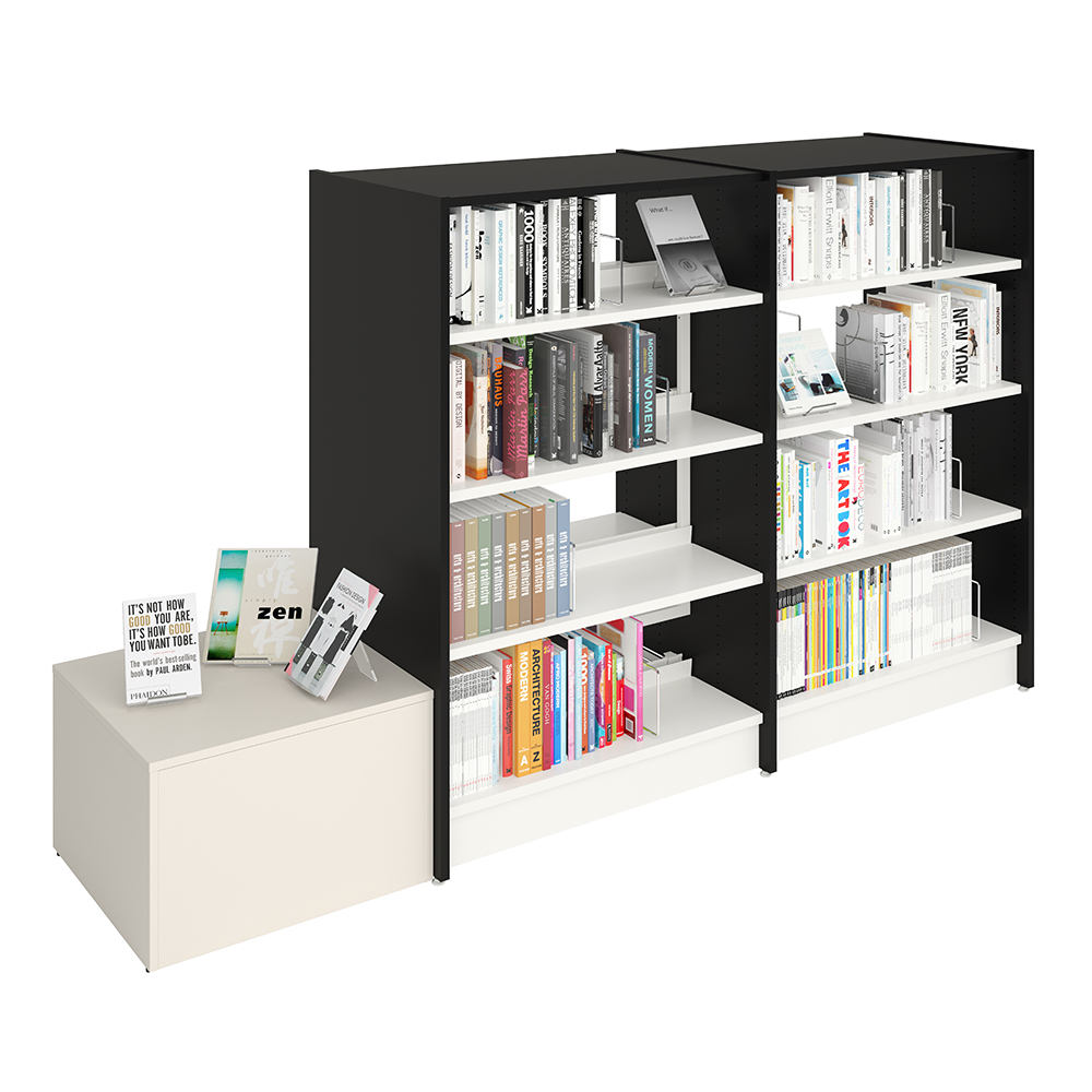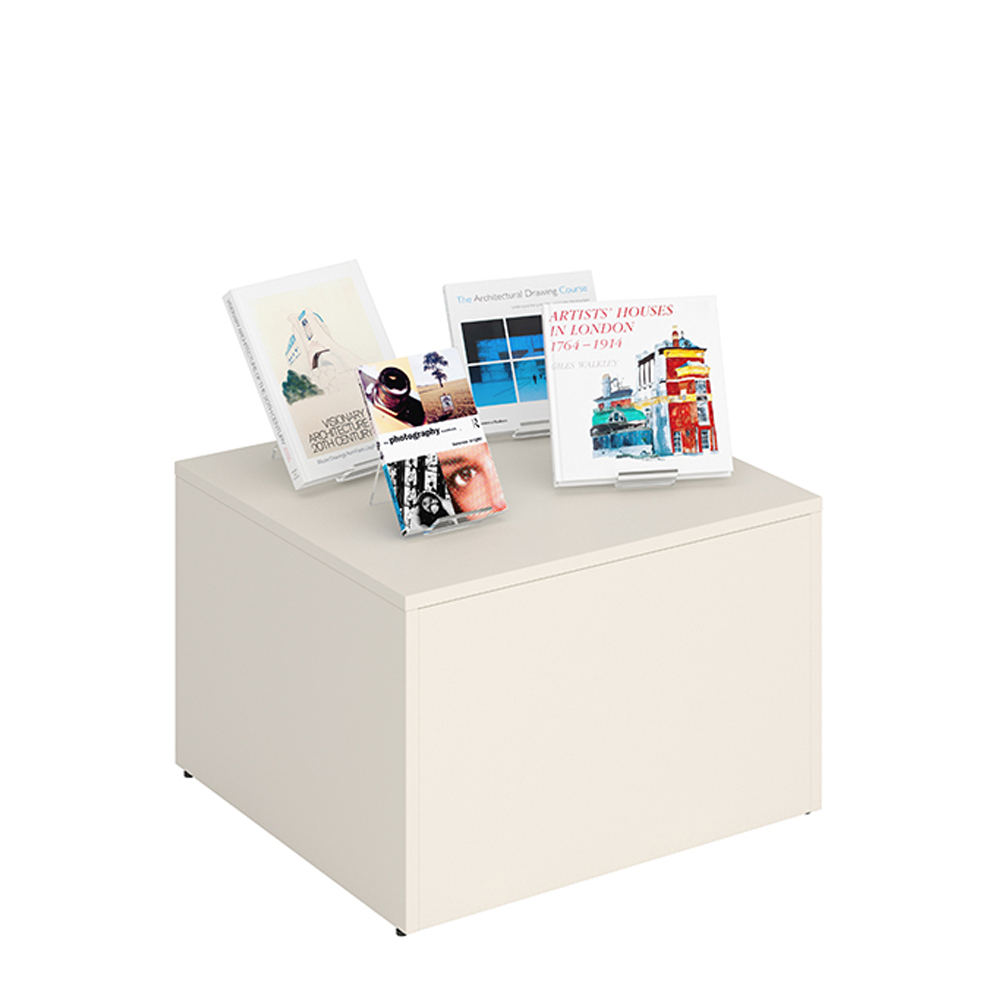 Maria ist eine Serie von Podien mit Trog erhältlich in zwei Größen (50 cm und XL 64 cm) und drei Höhen (Mini, Midi und Maxi) für flexible Bibliothekseinrichtungen.