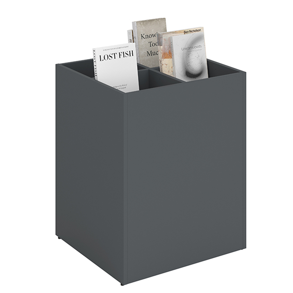Maria ist eine Serie von Podien mit Trog erhältlich in zwei Größen (50 cm und XL 64 cm) und drei Höhen (Mini, Midi und Maxi) für flexible Bibliothekseinrichtungen.