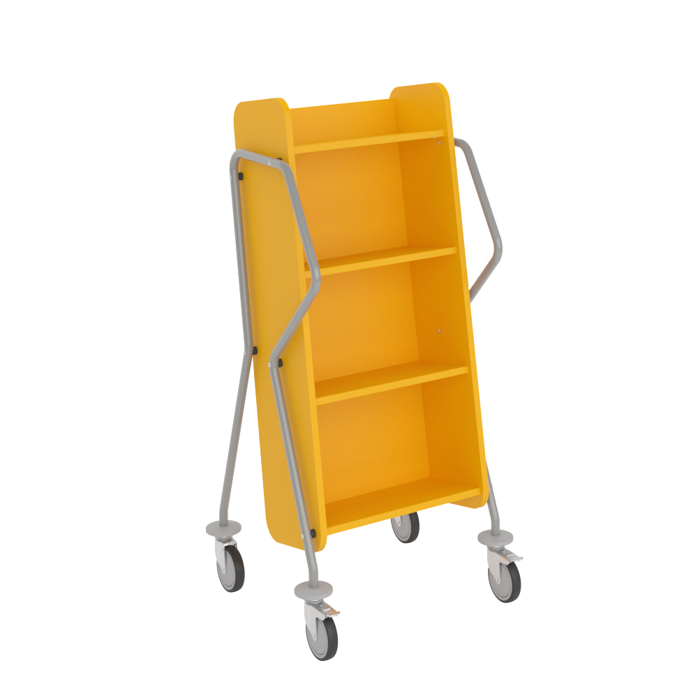 Die Neigung des Bücherwagens sorgt für eine sichere Medienunterbringung und bietet eine gute Übersicht über die jeweiligen Bücher.