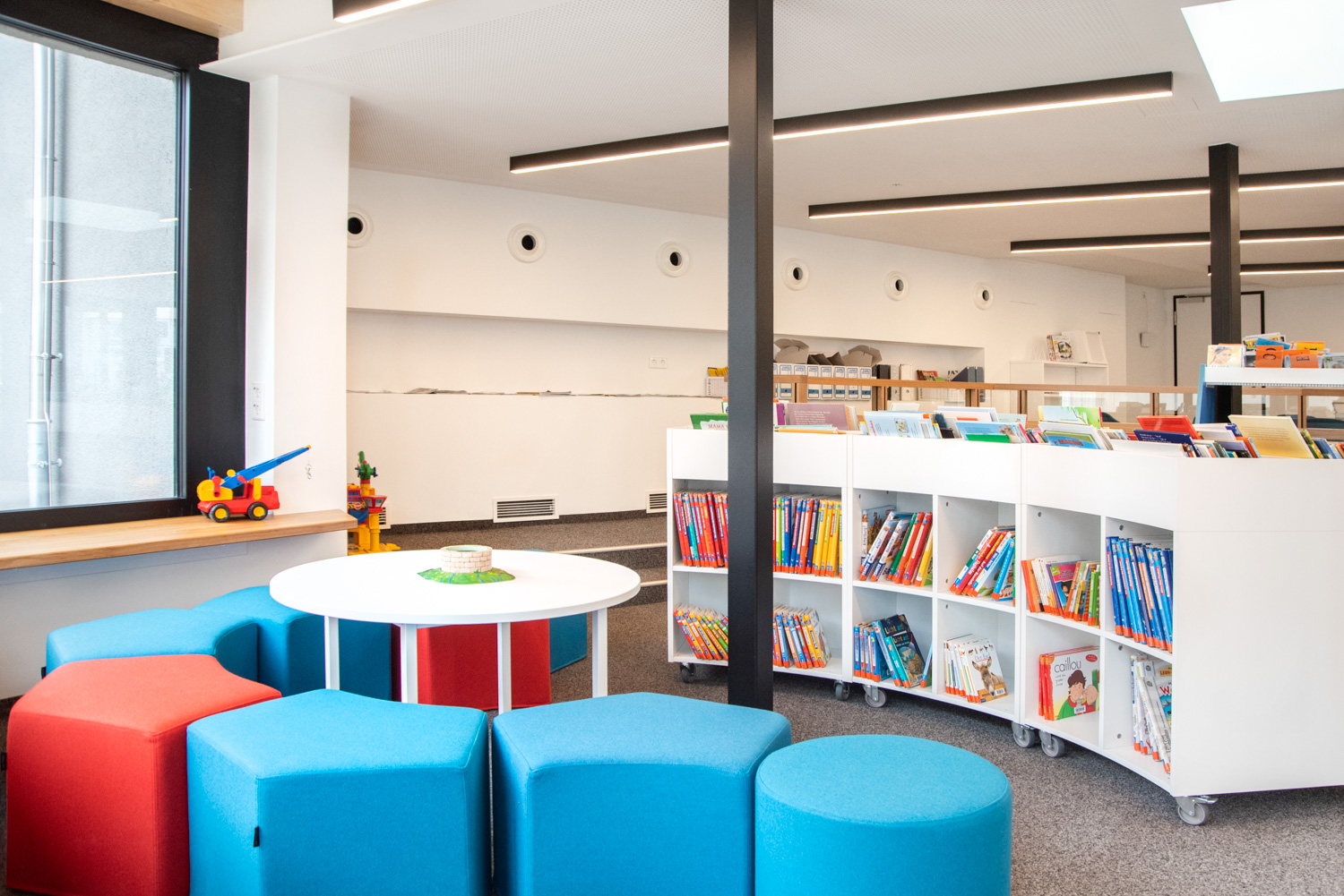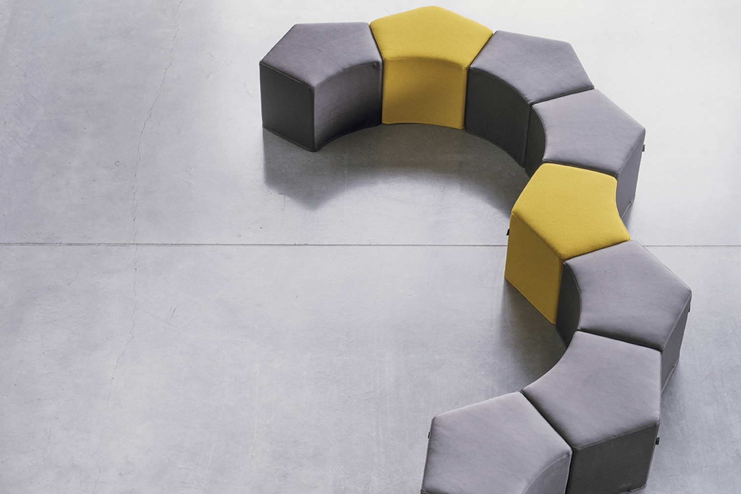 Pause von Softline ist ein kombiniertes Bibliotheksmöbel, das als Einzelobjekt oder in Gruppen kombiniert zum Entspannen, Arbeiten oder Spielen funktioniert.