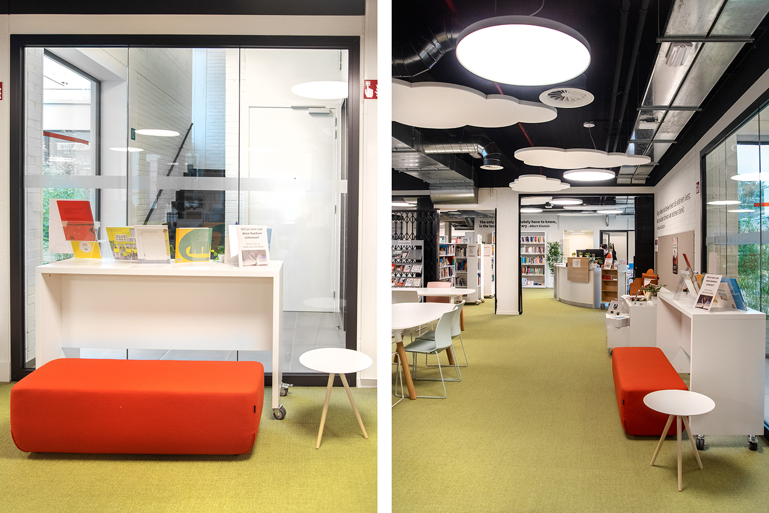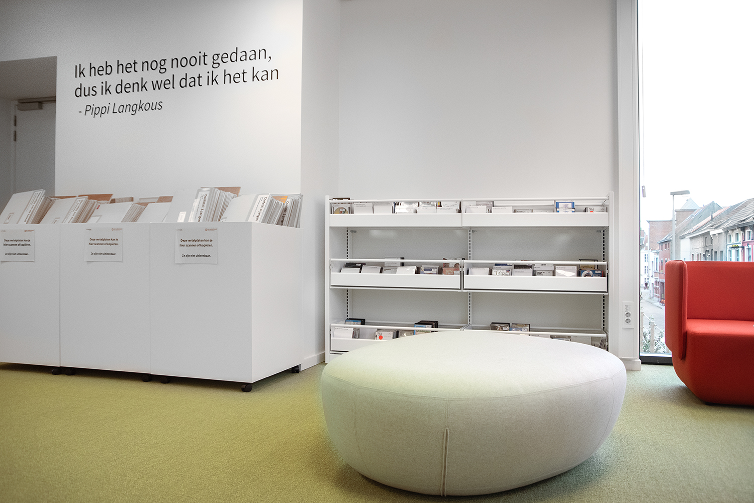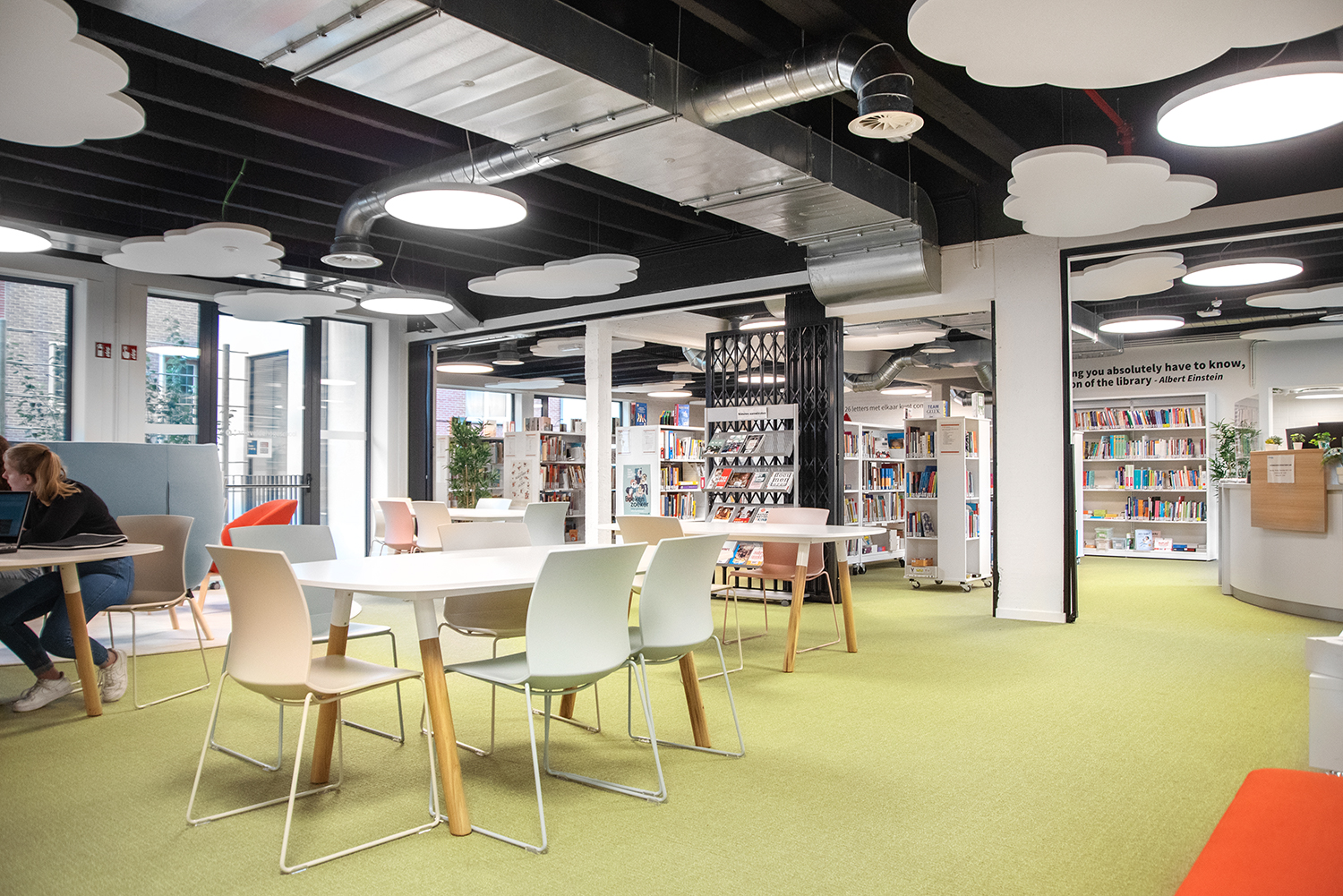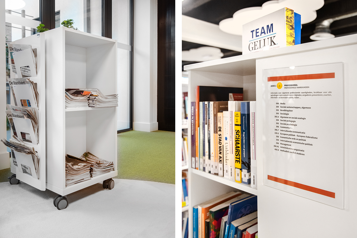 Die Bibliothek ist zu einem Ort geworden, an dem Besucher arbeiten, entspannen und sich treffen können. Mitarbeiterin Lore Letermere sagt: "Studenten, Mitarbeiter und Besucher sind sich einig, dass die renovierte Mediathek zu einem angenehmen und inspirierenden Raum geworden ist. Die Menschen stehen der ruhigen, nüchternen Umgebung, die auch Wärme ausstrahlt und komfortabel eingerichtet ist, sehr positiv gegenüber. Die Mediathek wirkt leicht, frisch und ein bisschen verspielt. Ganz zugeschnitten auf die Vorschule und frühkindliche Bildung, für die die Mediathek vor allem gedacht ist."