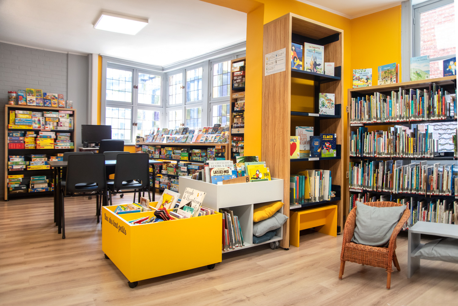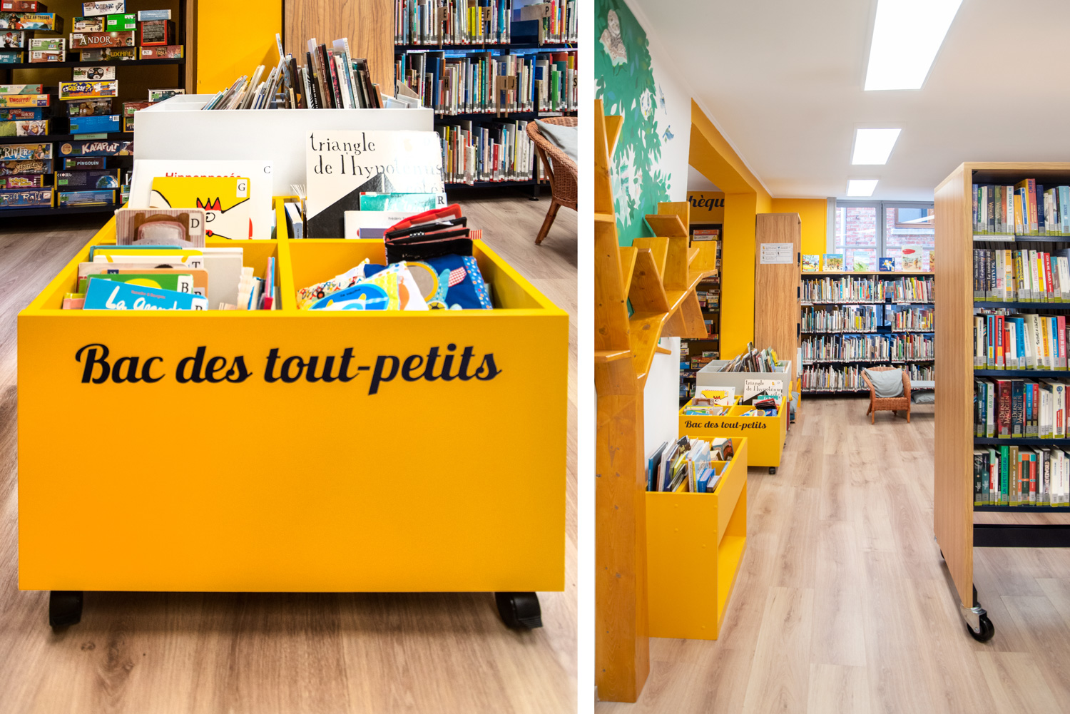 Die Erklärung stammt von der Bibliothekarin Noëlle Willem. Gemeinsam mit ihrem Team hat sie den Raum optimiert und das Innere der Bibliothek zu einer Augenweide gemacht, die Passanten zum Eintreten verleitet. Sie haben es auch einfacher gemacht, sich in den Büchern zurechtzufinden. Der Einsatz von Farbe ist zeitgemäß, die Wahl der Materialien – Holz und Metall – nachhaltig.