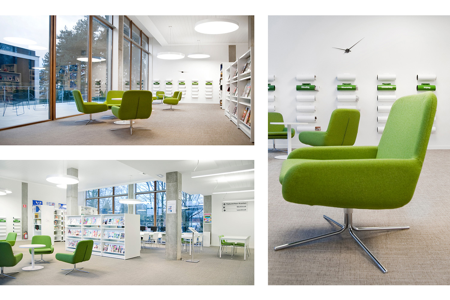 Seit September 2012 genießen die Einwohner von Lummen einen transparenten, hellen und offenen Raum, in dem sie Informationen und Inspirationen finden. Die Einrichtungslösung wurde in Zusammenarbeit mit dem Architekten Peter Van Nuffel gestaltet. Wir haben es geschafft mit standardeinrichtungsgegenständen, die angepasst und modifiziert werden können, eine zeitgenössische und nachhaltige Lösung zu gestalten.
