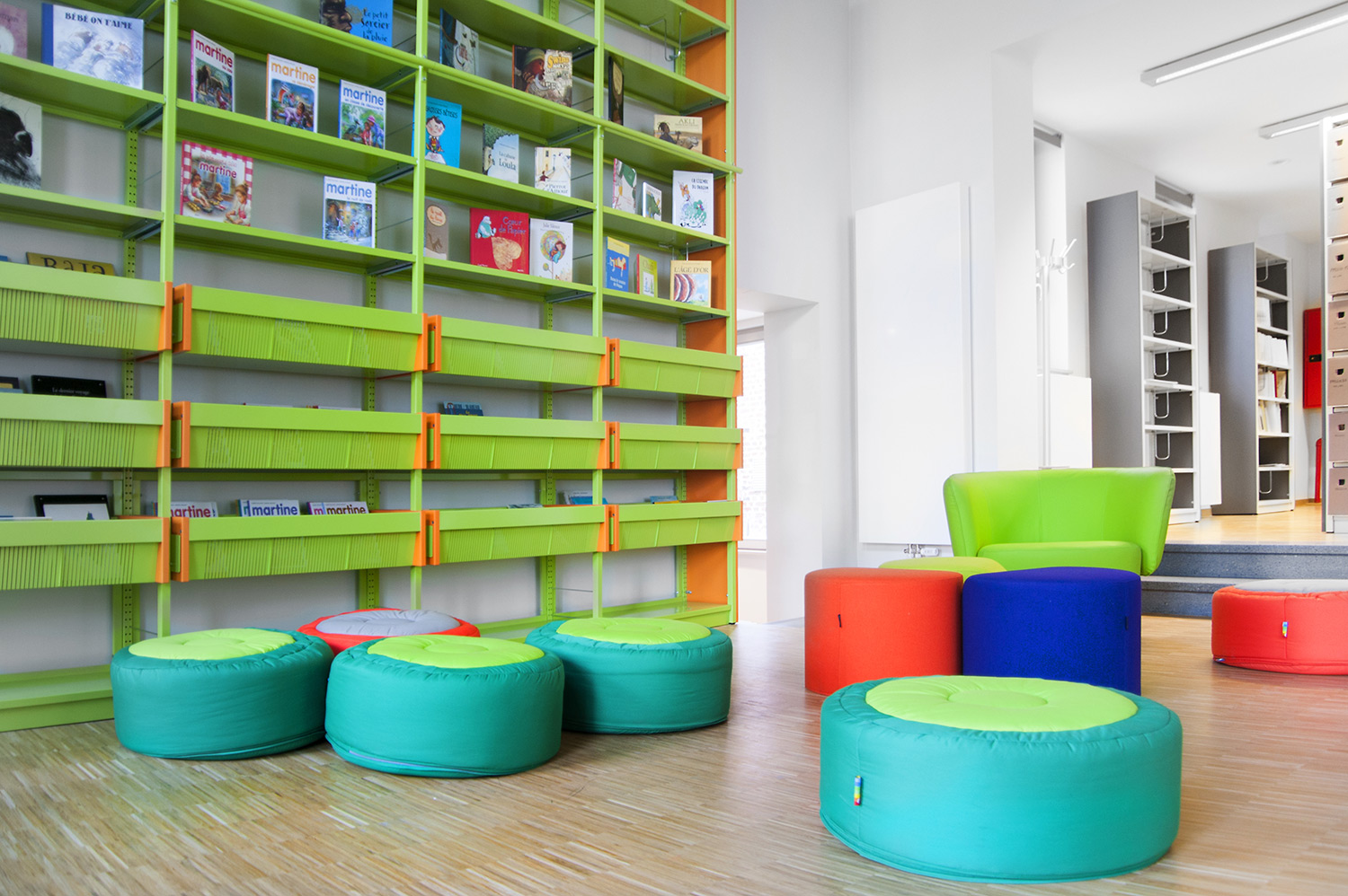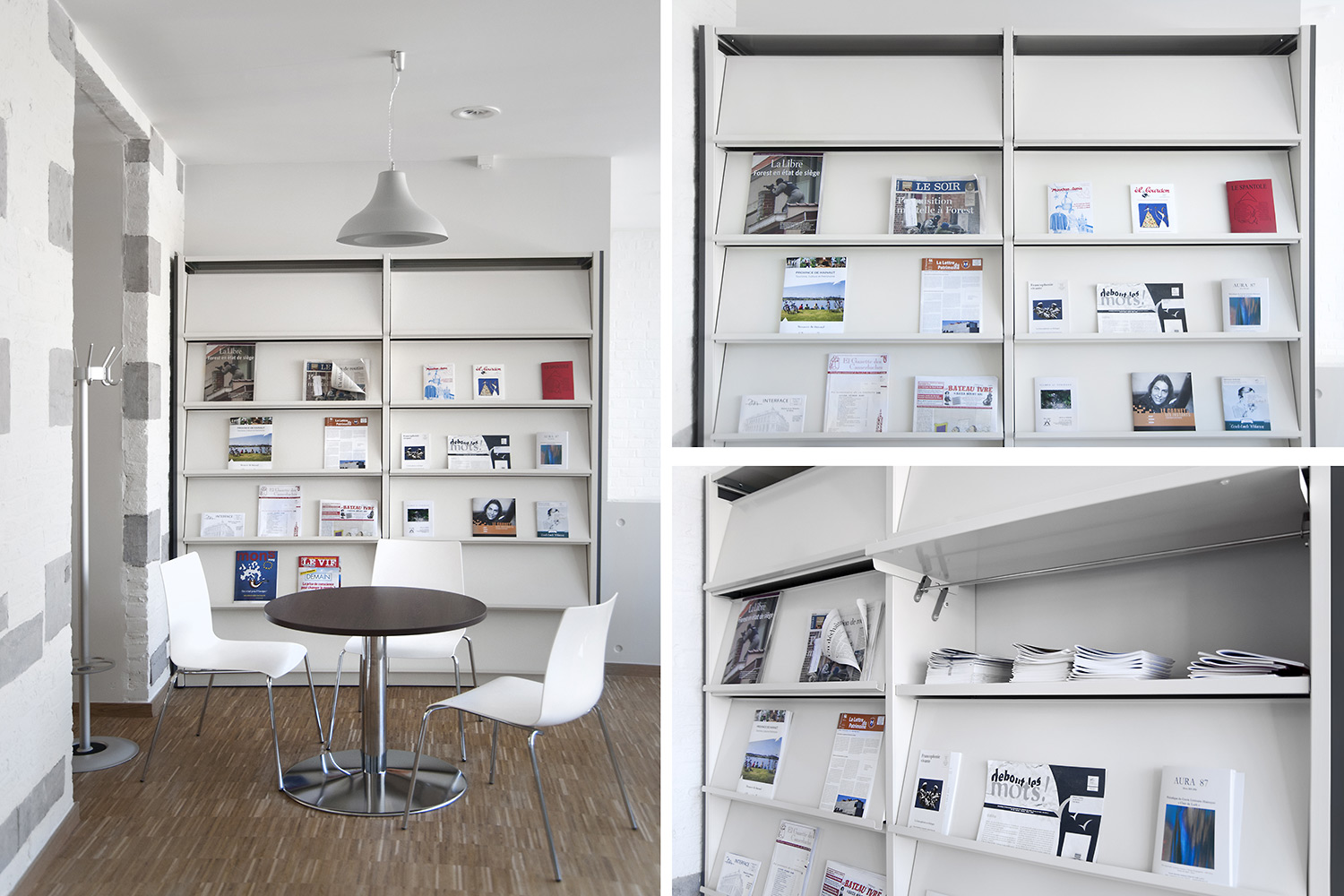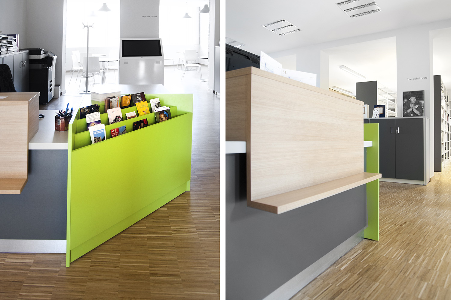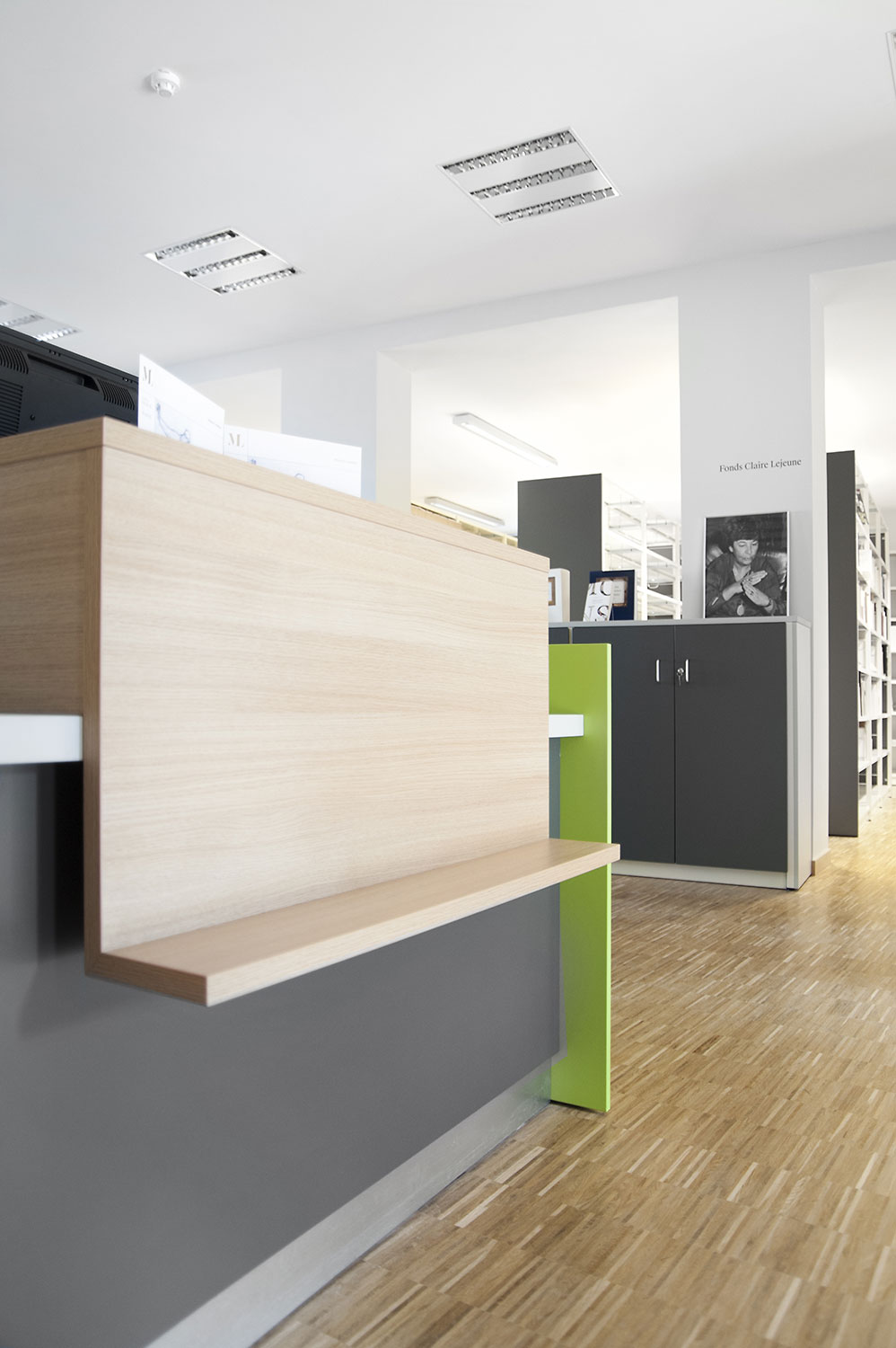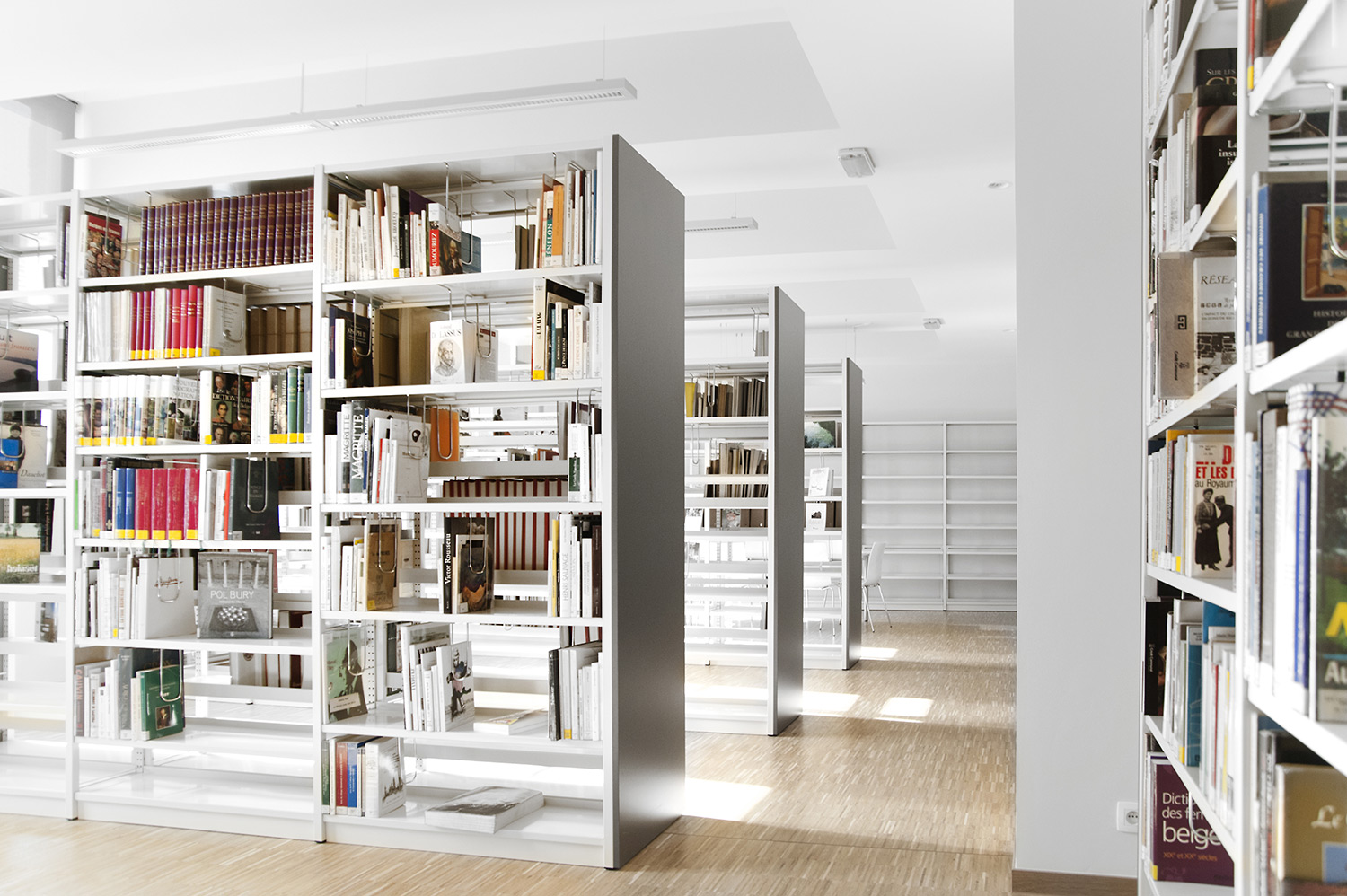 Hauptmerkmale sind Zugänglichkeit und ein einladendes Interieur mit - gleich nach dem UNIFLEX-Regalsystem kommend - Arbeitstischen, komfortablen Sitzmöbeln, einer gemütlichen Comic-Ecke und Ausstellungsräumen. Das helle zeitgemäße Interieur gestattet dem Leser, sich an der Literatur zu erfreuen, bietet aber gleichzeitig Raum für Begegnungen und Erfahrungen. Dies erfolgreich: die Besucher haben die Bibliothek angenommen als neuen Mittelpunkt von Mons, der Kulturhauptstadt Europas 2015.