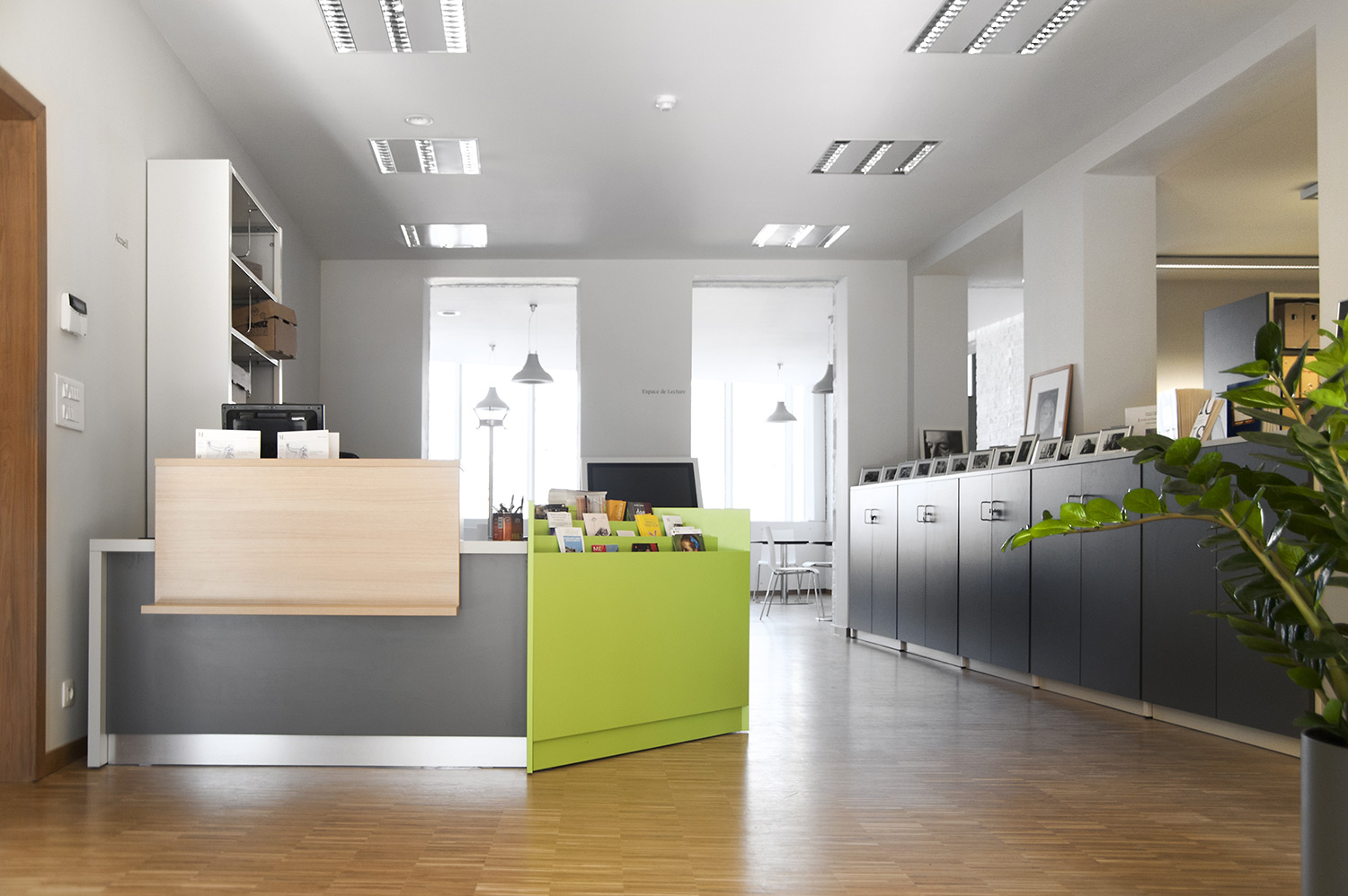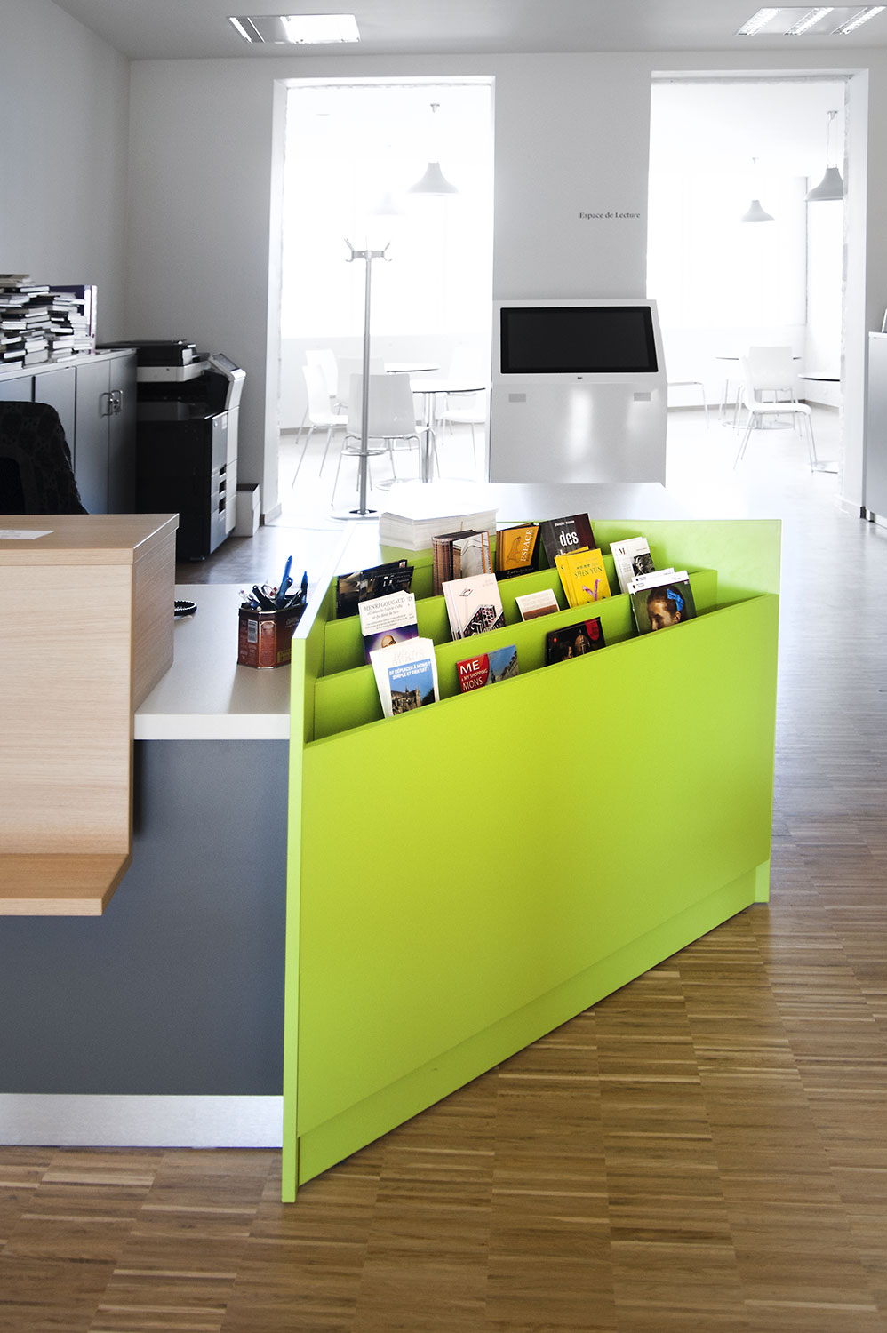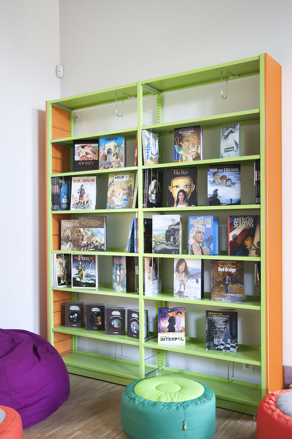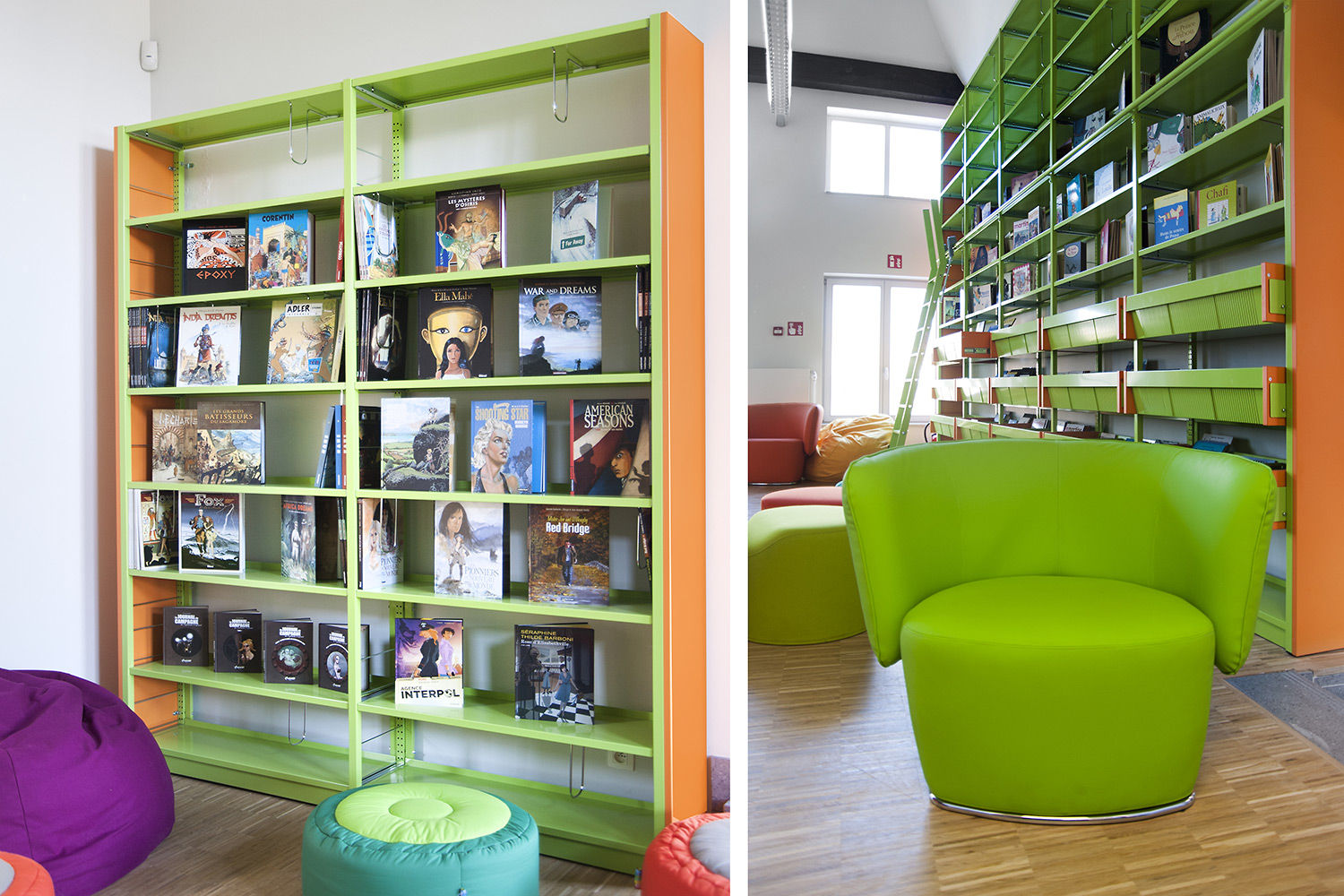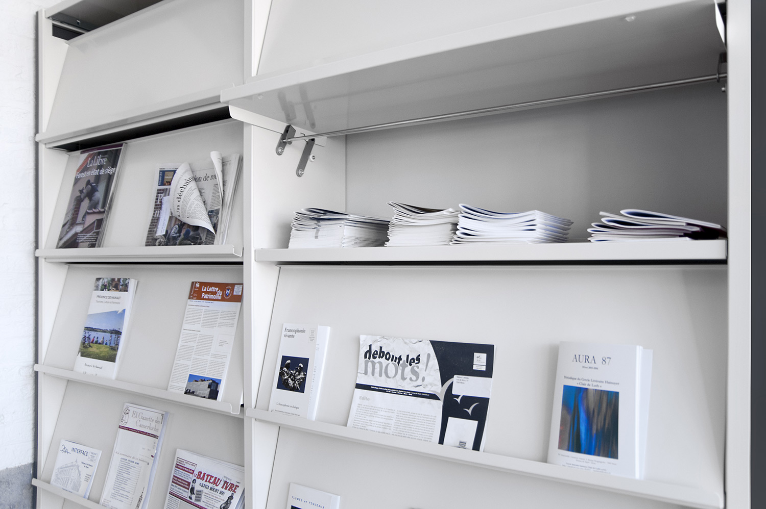 Hauptmerkmale sind Zugänglichkeit und ein einladendes Interieur mit - gleich nach dem UNIFLEX-Regalsystem kommend - Arbeitstischen, komfortablen Sitzmöbeln, einer gemütlichen Comic-Ecke und Ausstellungsräumen. Das helle zeitgemäße Interieur gestattet dem Leser, sich an der Literatur zu erfreuen, bietet aber gleichzeitig Raum für Begegnungen und Erfahrungen. Dies erfolgreich: die Besucher haben die Bibliothek angenommen als neuen Mittelpunkt von Mons, der Kulturhauptstadt Europas 2015.