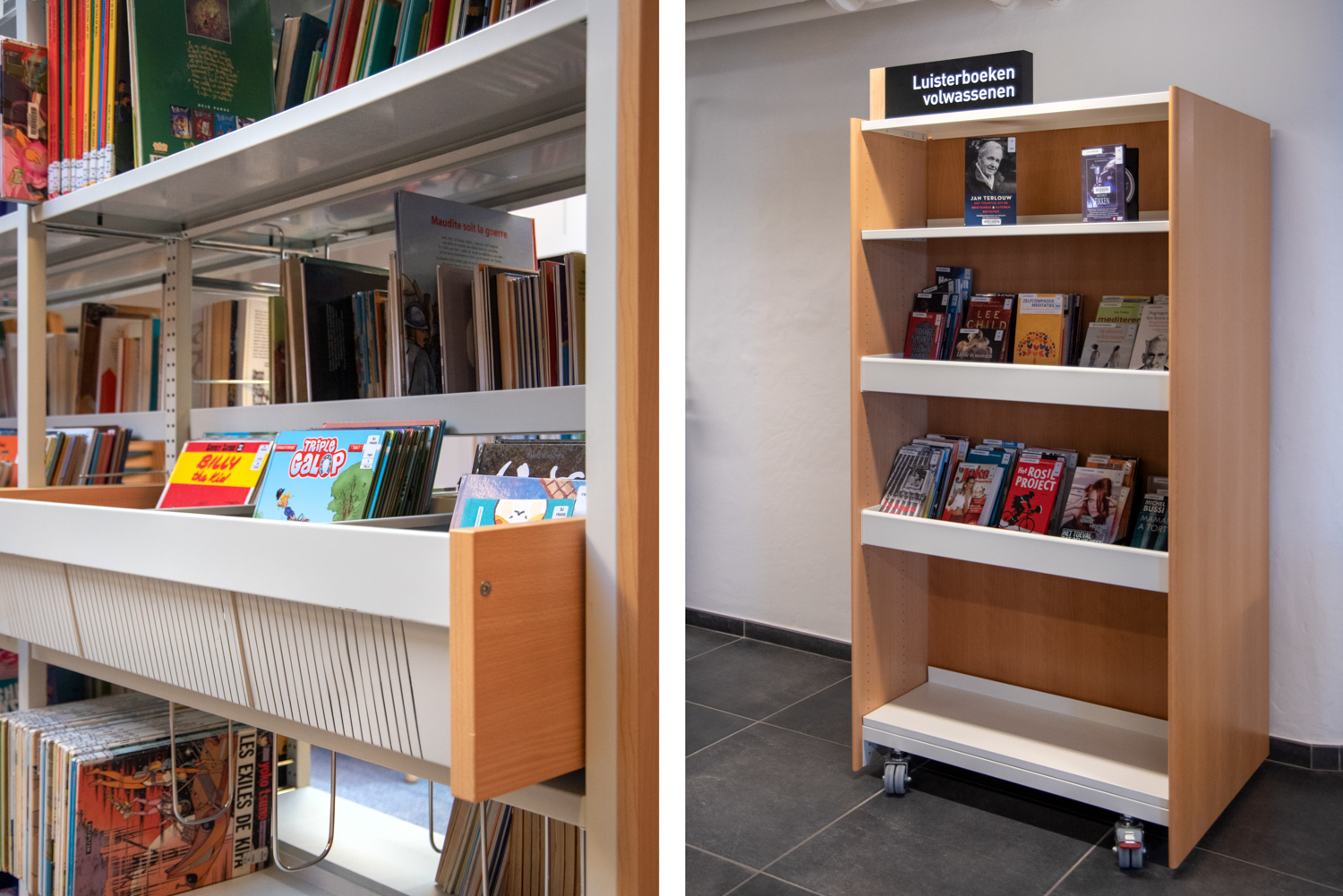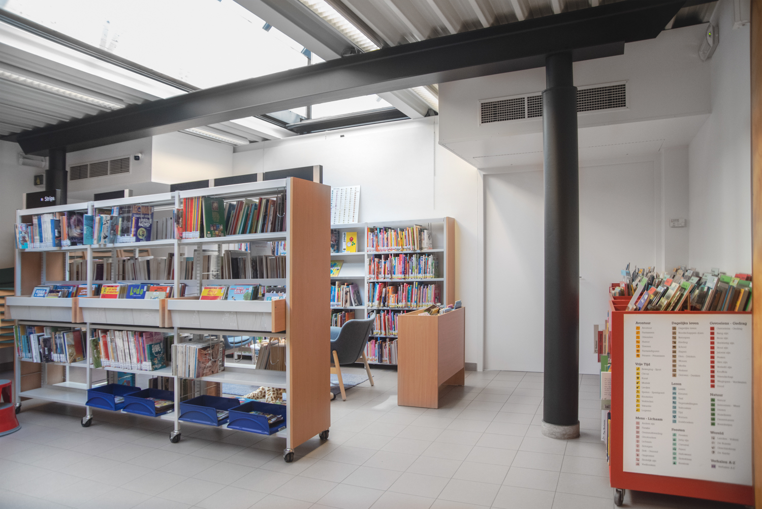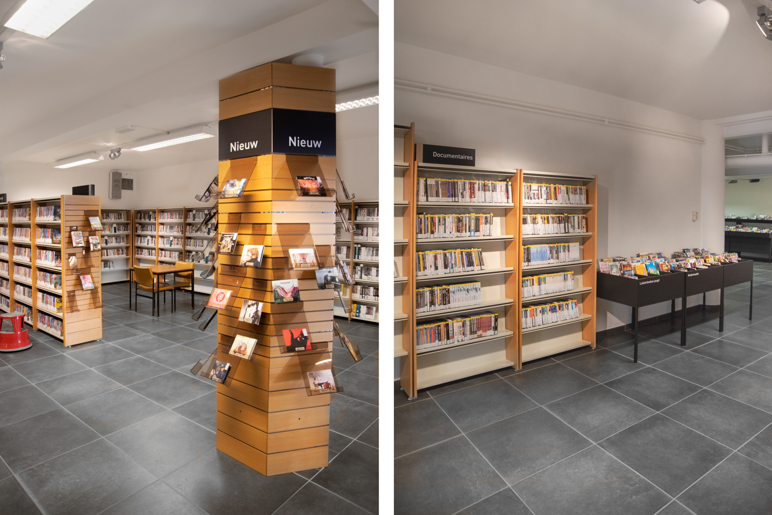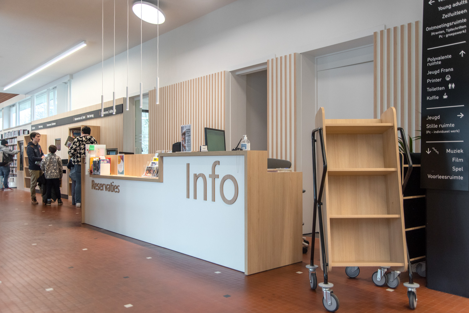 Die Bibliothekarin Karen Demeulemeester sagt: "Mit der Neugestaltung des Innenraums haben wir die ursprüngliche Atmosphäre und den Charakter des Gebäudes bewahrt. Wir wollten Komfort und Benutzerfreundlichkeit für unsere Besucher gewährleisten. Dank der eleganten und nüchternen neuen Möbel machen wir einen Sprung in Richtung eines zeitgemäßen Bibliotheksdienstes."