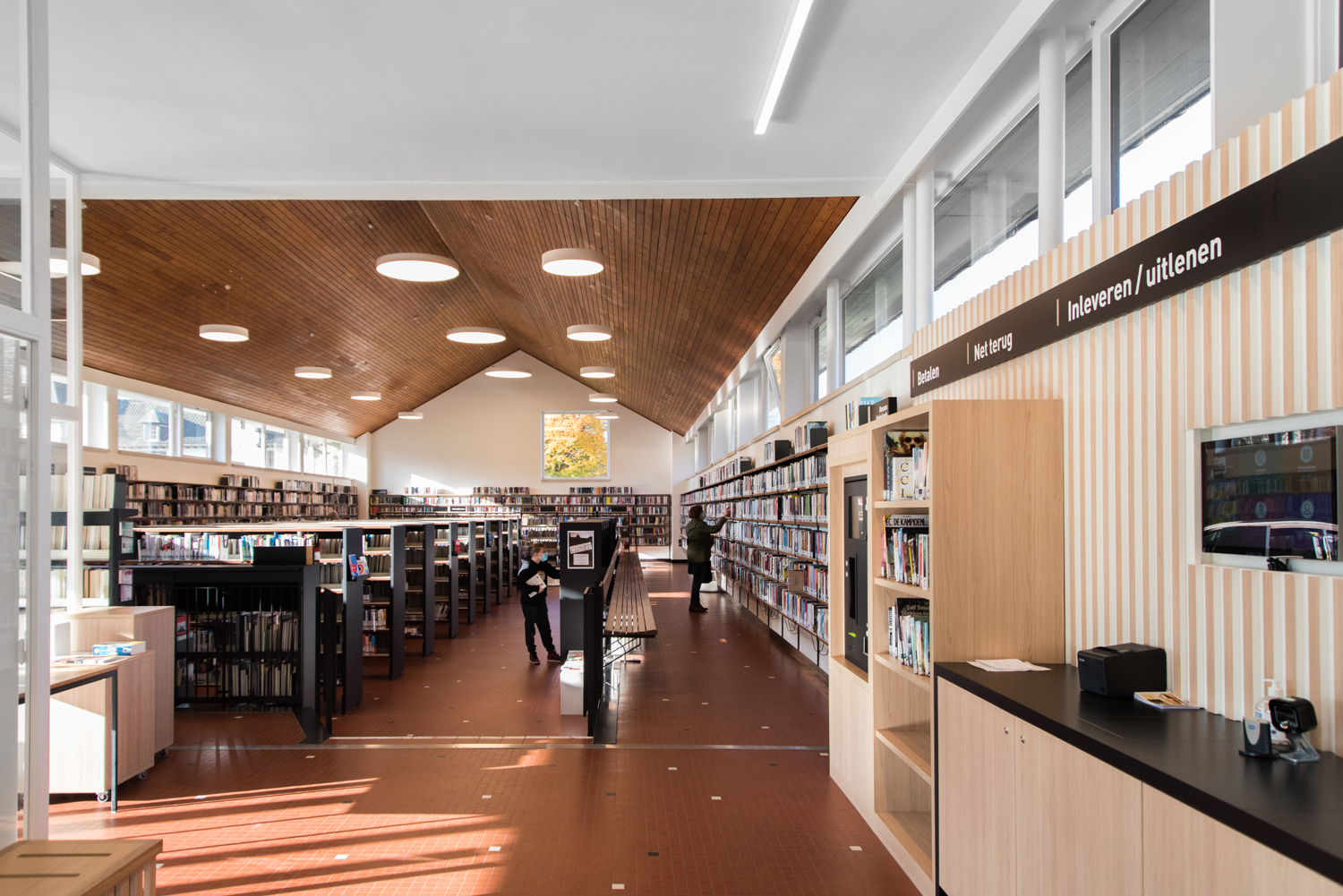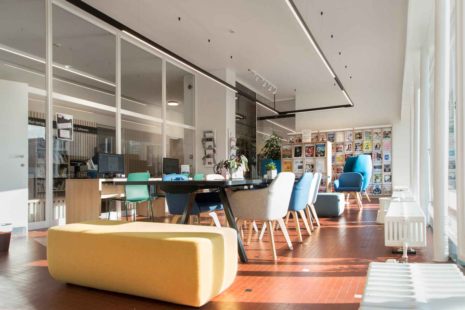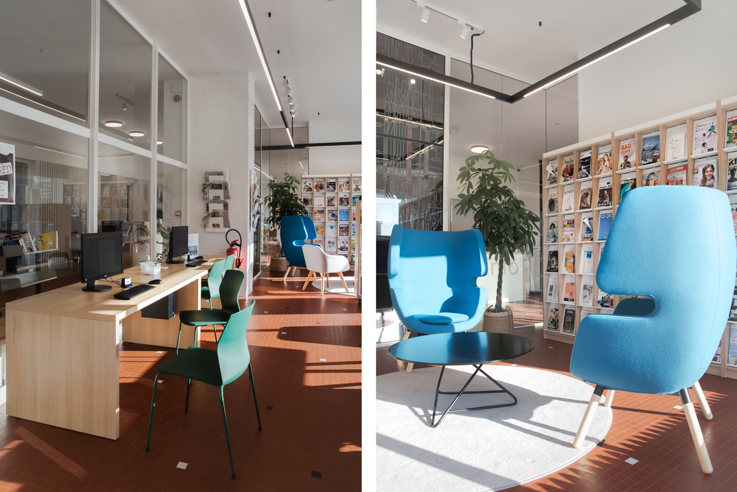 Die Bibliothekarin Karen Demeulemeester sagt: "Mit der Neugestaltung des Innenraums haben wir die ursprüngliche Atmosphäre und den Charakter des Gebäudes bewahrt. Wir wollten Komfort und Benutzerfreundlichkeit für unsere Besucher gewährleisten. Dank der eleganten und nüchternen neuen Möbel machen wir einen Sprung in Richtung eines zeitgemäßen Bibliotheksdienstes."