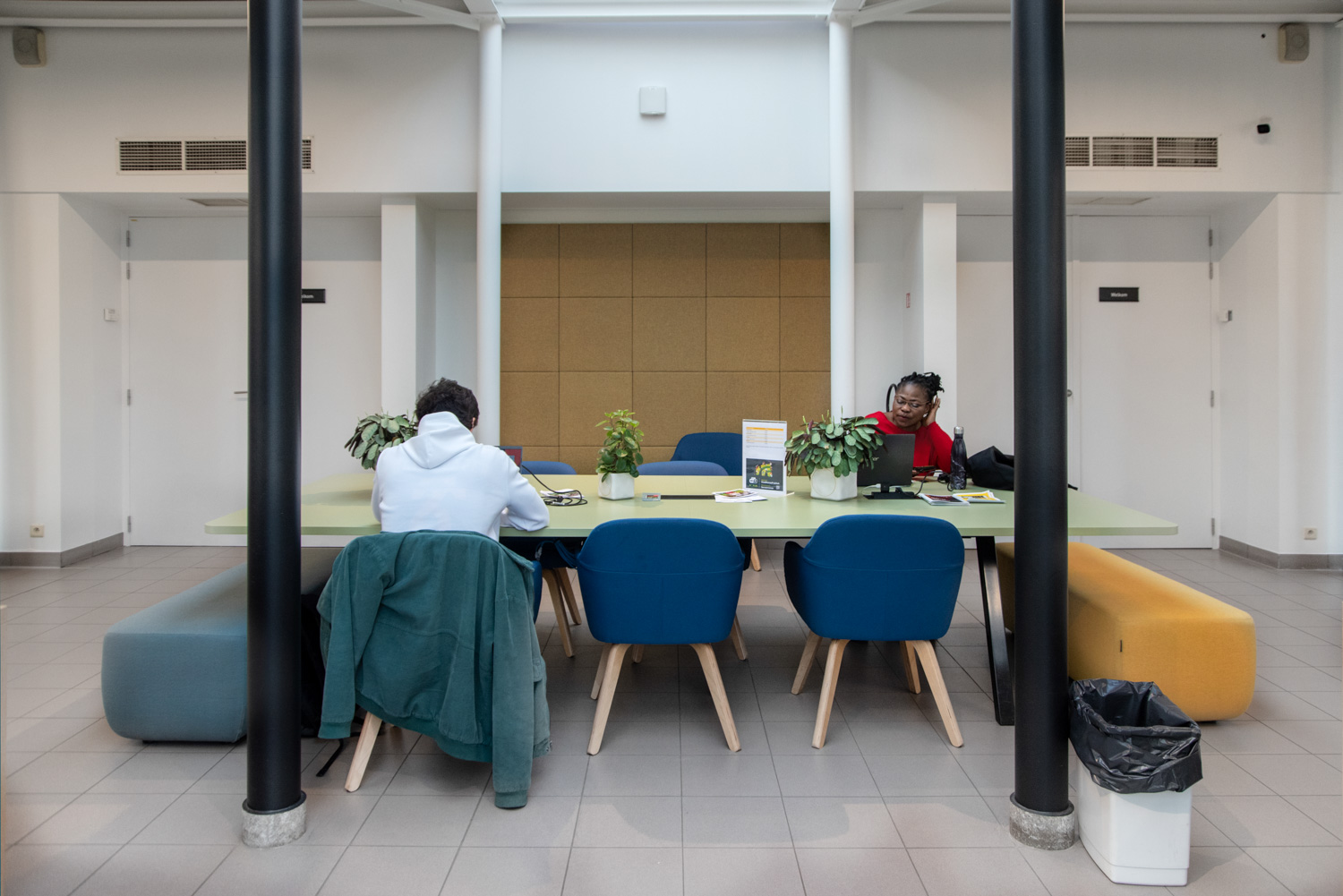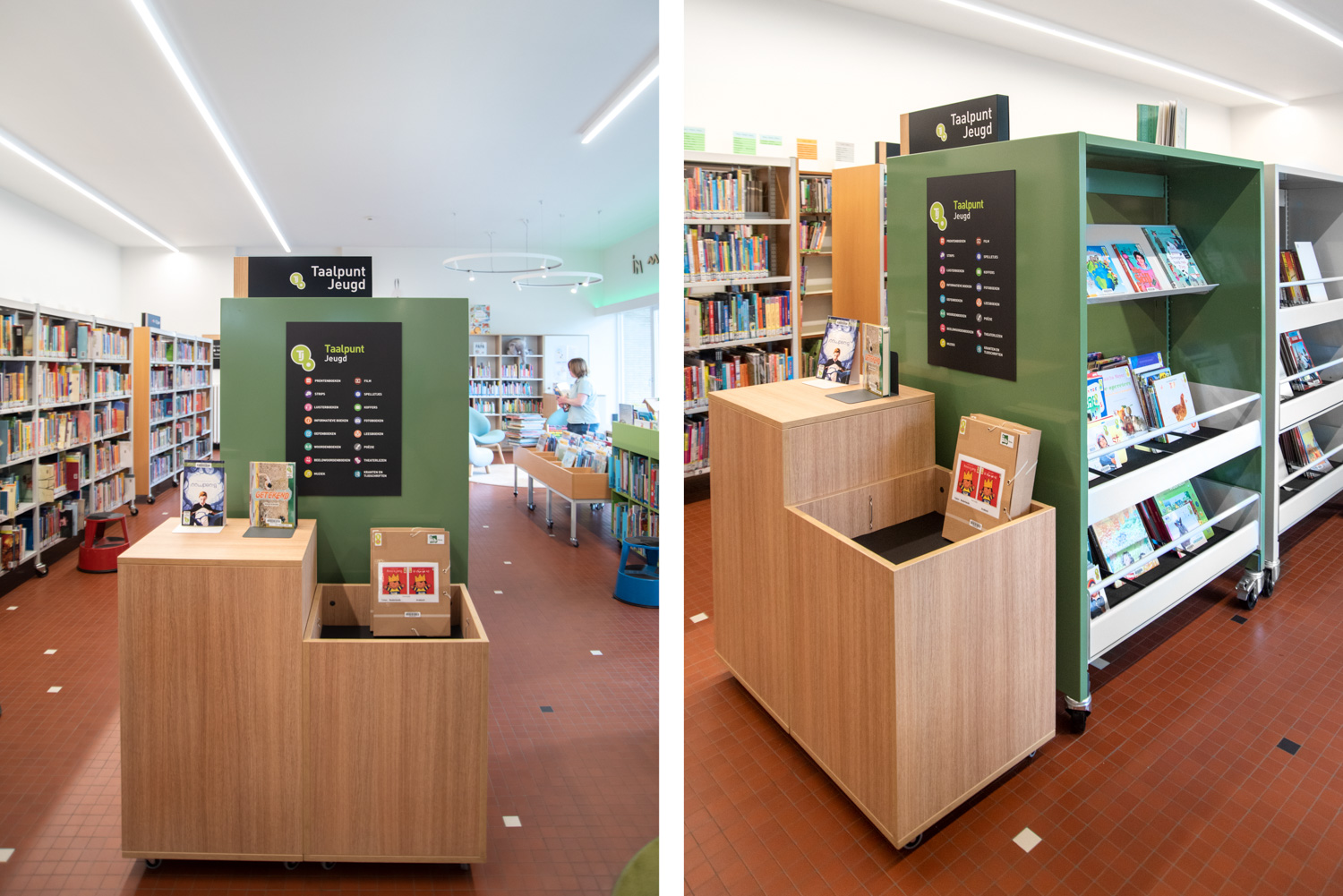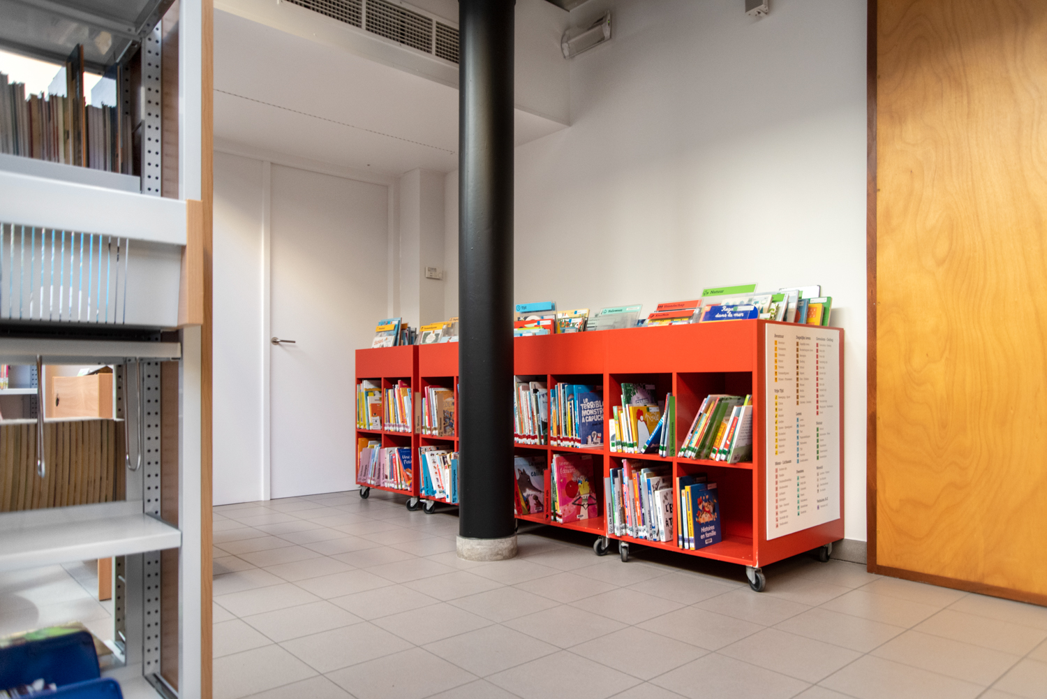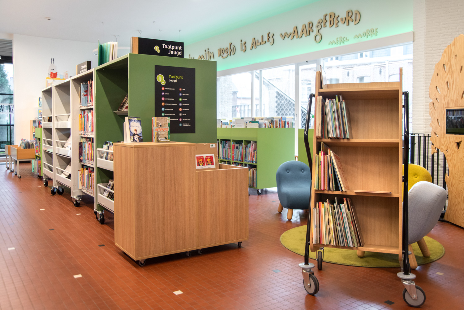Die Bibliothekarin Karen Demeulemeester sagt: "Mit der Neugestaltung des Innenraums haben wir die ursprüngliche Atmosphäre und den Charakter des Gebäudes bewahrt. Wir wollten Komfort und Benutzerfreundlichkeit für unsere Besucher gewährleisten. Dank der eleganten und nüchternen neuen Möbel machen wir einen Sprung in Richtung eines zeitgemäßen Bibliotheksdienstes."