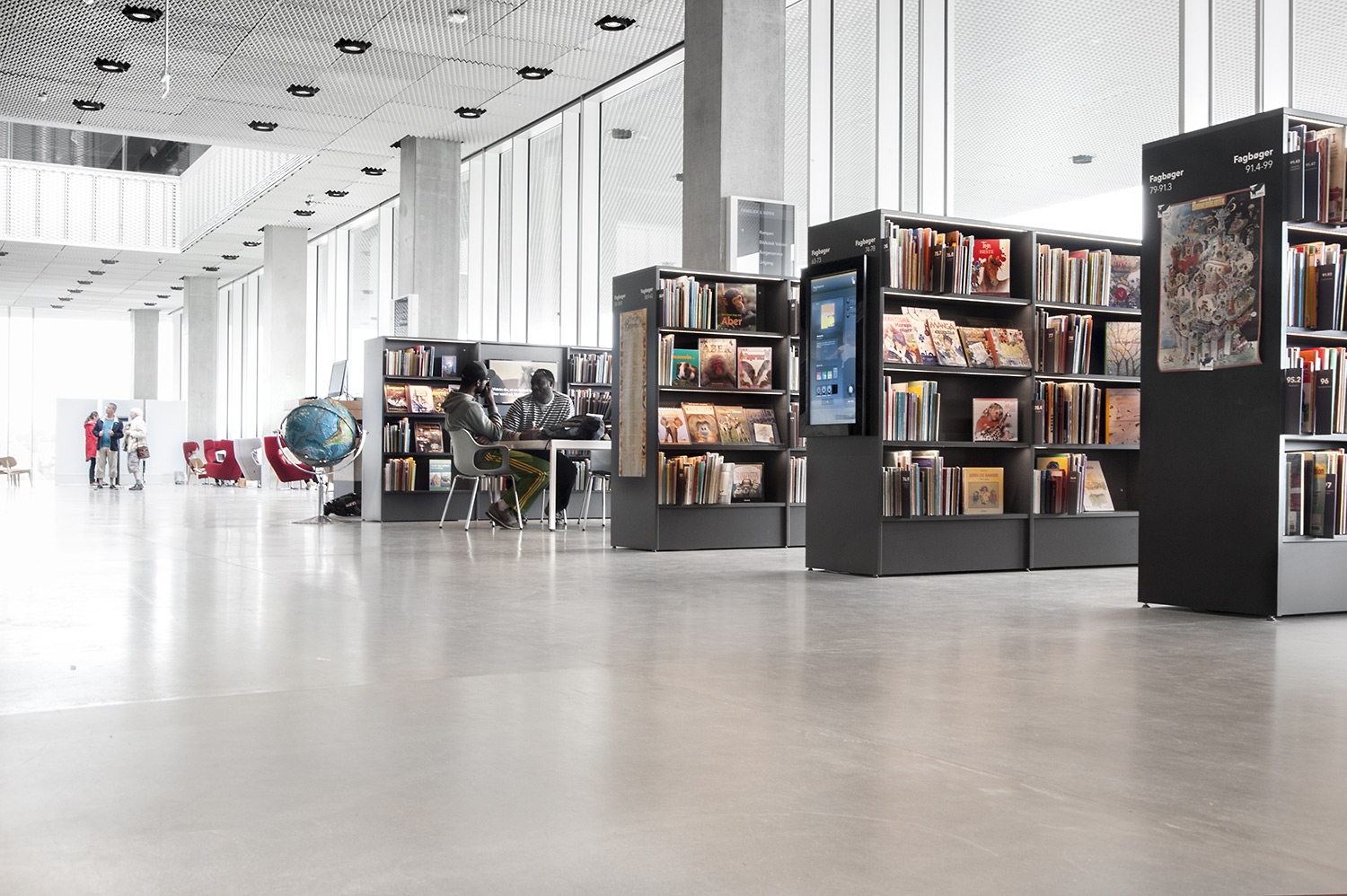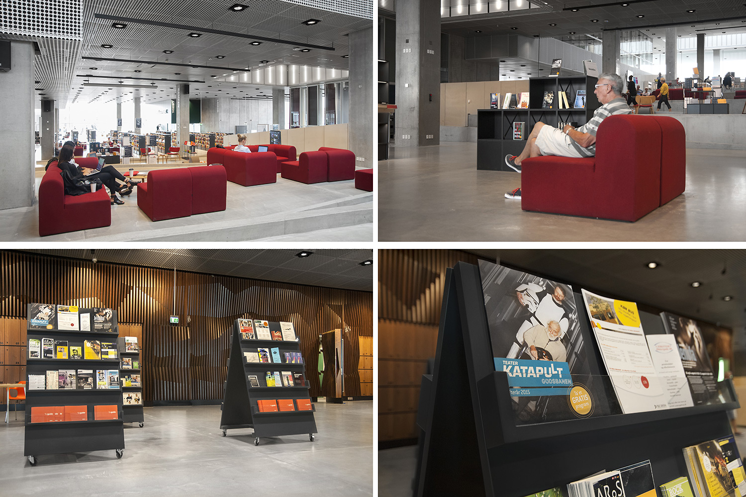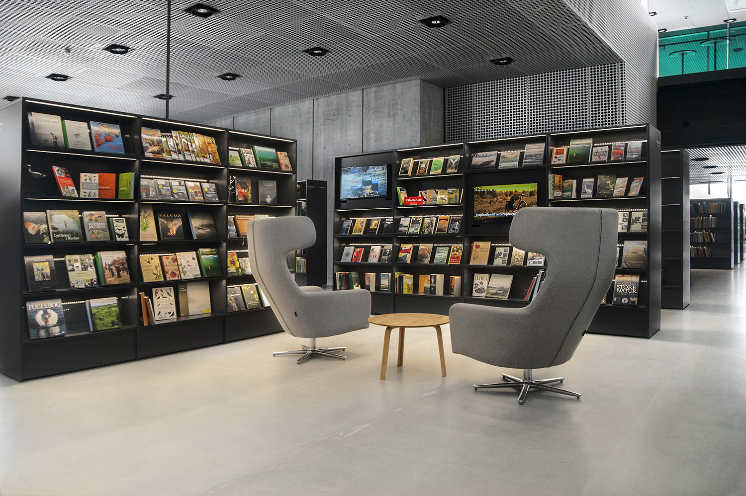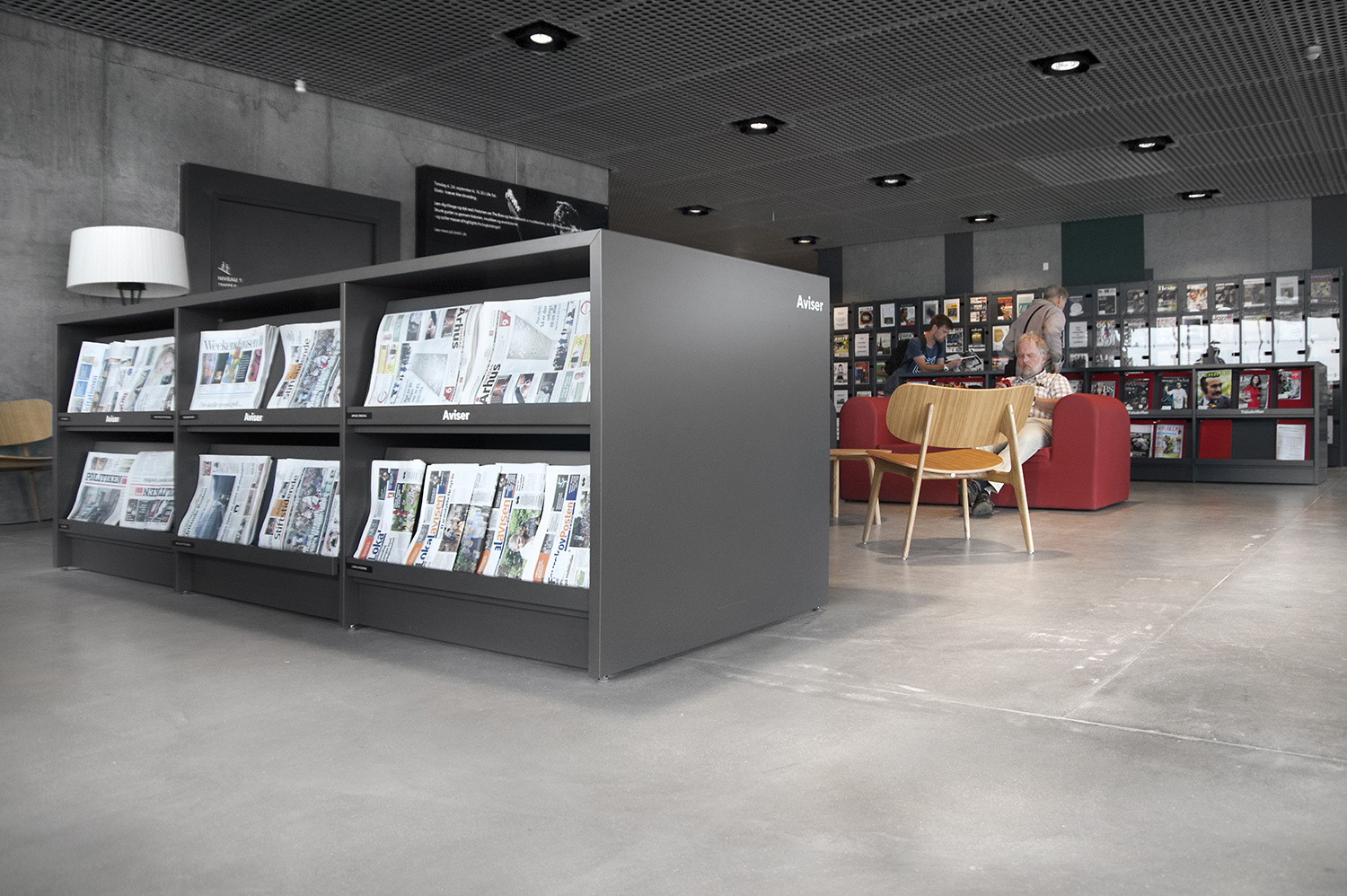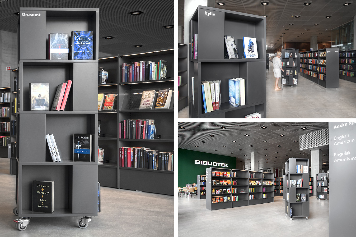 Unsere Schwestergesellschaft Lammhults Biblioteksdesign A/S hat den Großteil des Mobiliars für die Bibliothek im Dokk1 geliefert, sowohl Standard- als auch Sonderlösungen. Die Architektur des Gebäudes ist innen und außen als Kreuzfahrtschiff gestaltet. Dieses Design findet sich in der Innenarchitektur, Ausstattung und Möblierung wieder. Da es die Anforderung gab, so wenig Möbeltypen wie möglich in der Bibliothek einzusetzen, fand eine Fusion unserer bekannten Systeme Ordrup und Frontline Square statt – und Ordrup Square war geboren.
