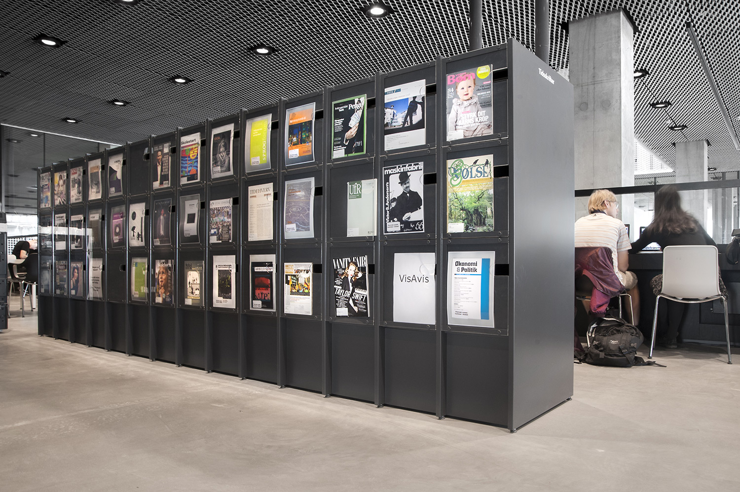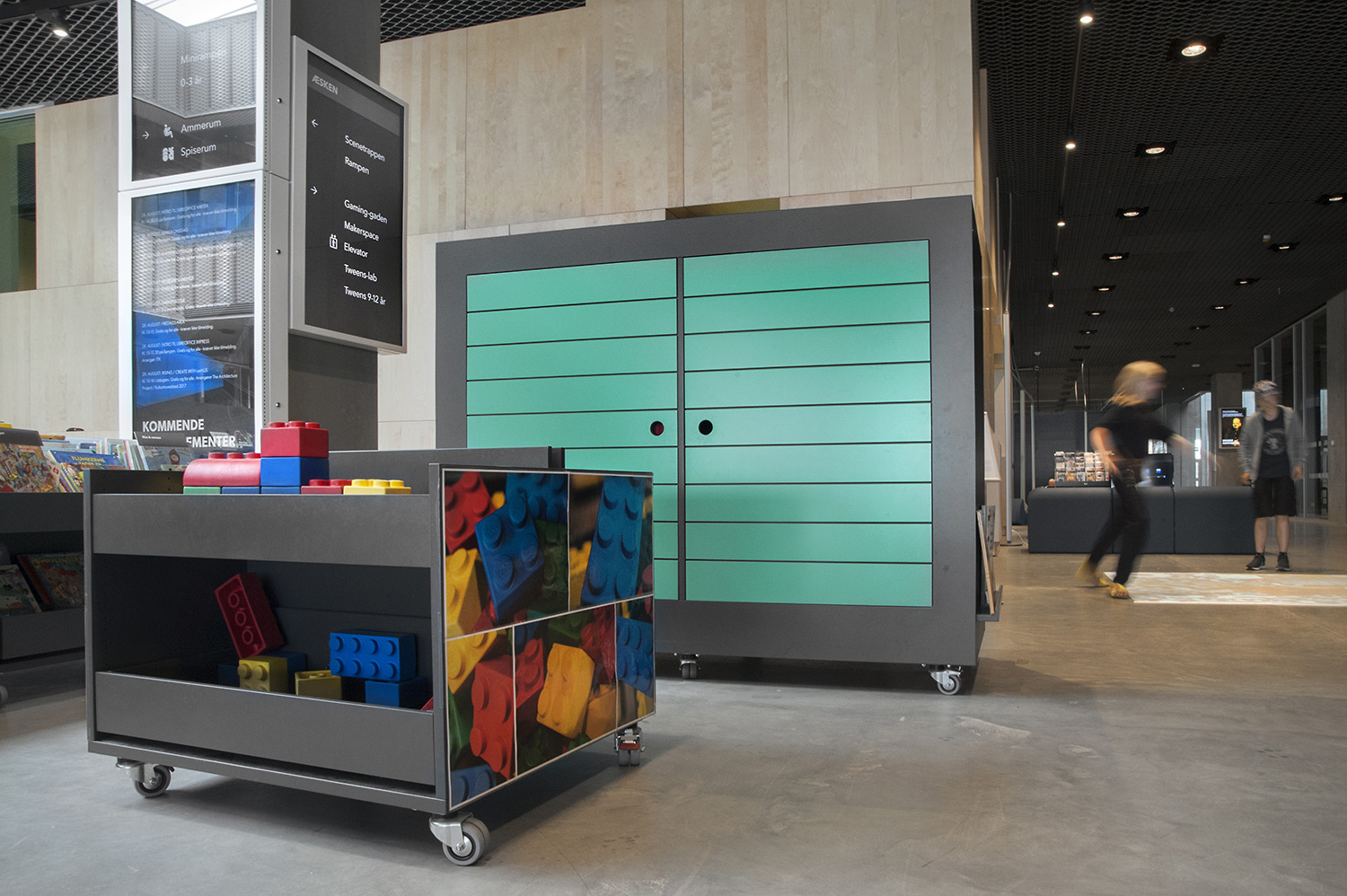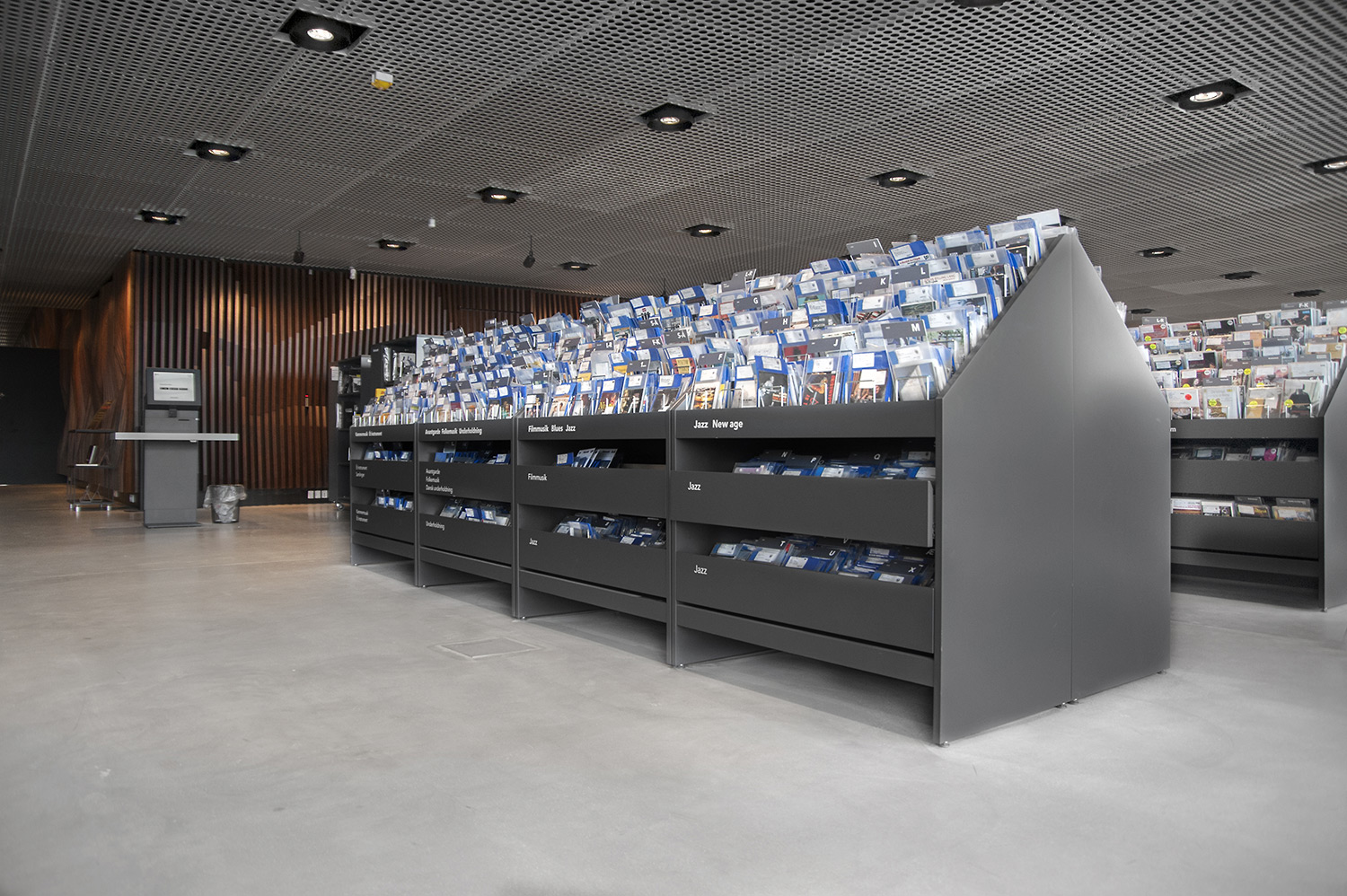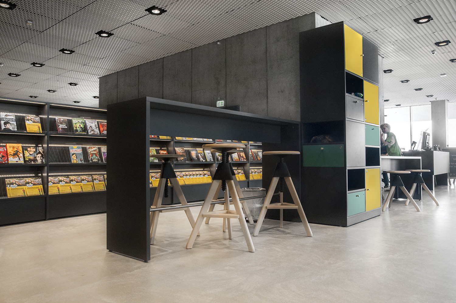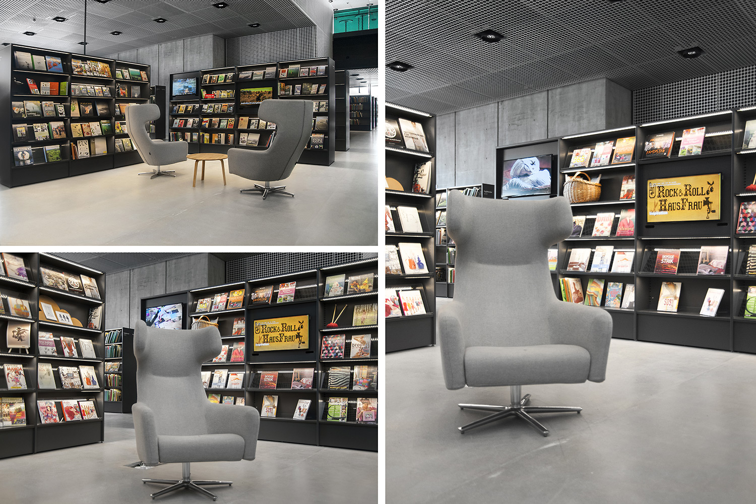 Unsere Schwestergesellschaft Lammhults Biblioteksdesign A/S hat den Großteil des Mobiliars für die Bibliothek im Dokk1 geliefert, sowohl Standard- als auch Sonderlösungen. Die Architektur des Gebäudes ist innen und außen als Kreuzfahrtschiff gestaltet. Dieses Design findet sich in der Innenarchitektur, Ausstattung und Möblierung wieder. Da es die Anforderung gab, so wenig Möbeltypen wie möglich in der Bibliothek einzusetzen, fand eine Fusion unserer bekannten Systeme Ordrup und Frontline Square statt – und Ordrup Square war geboren.