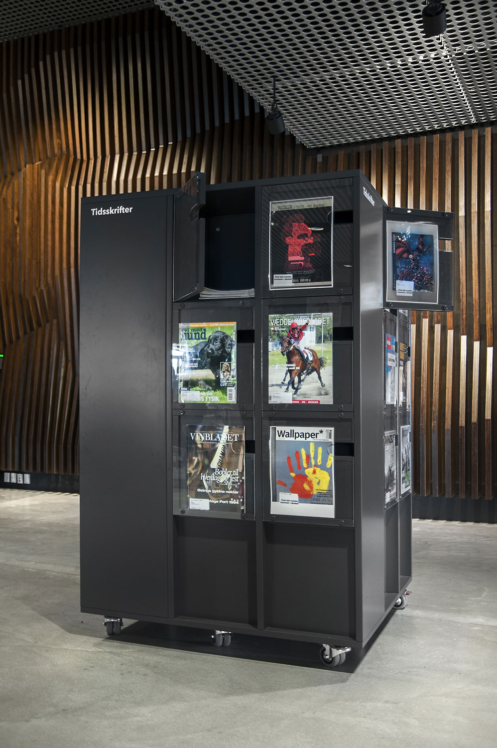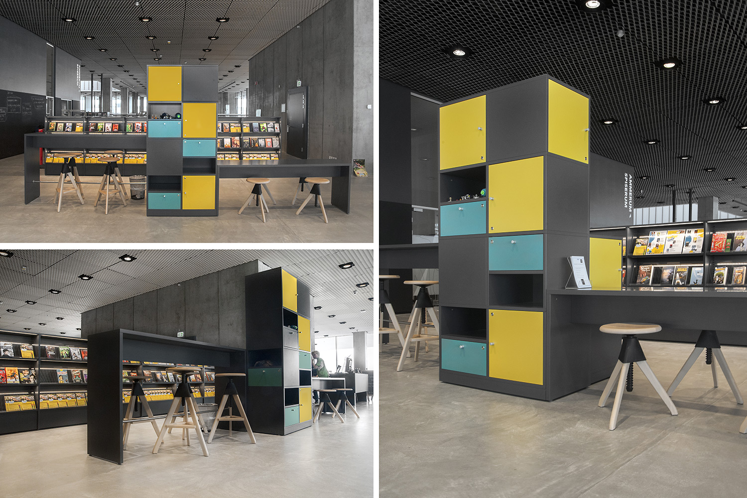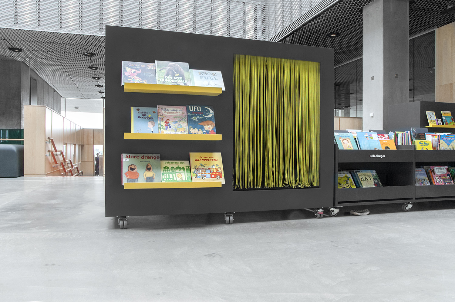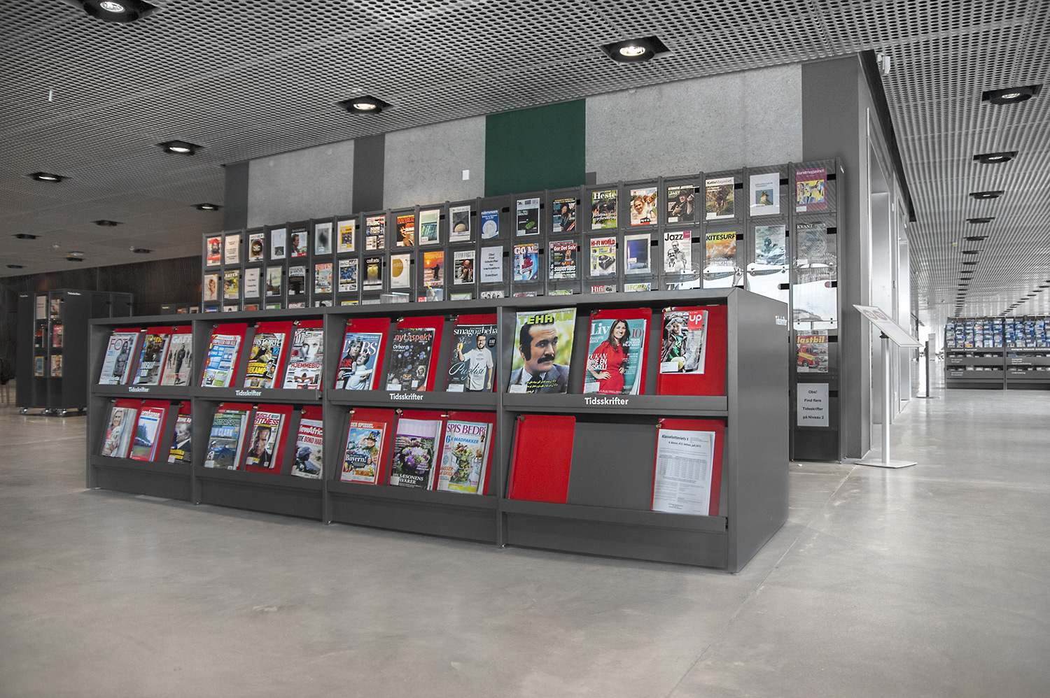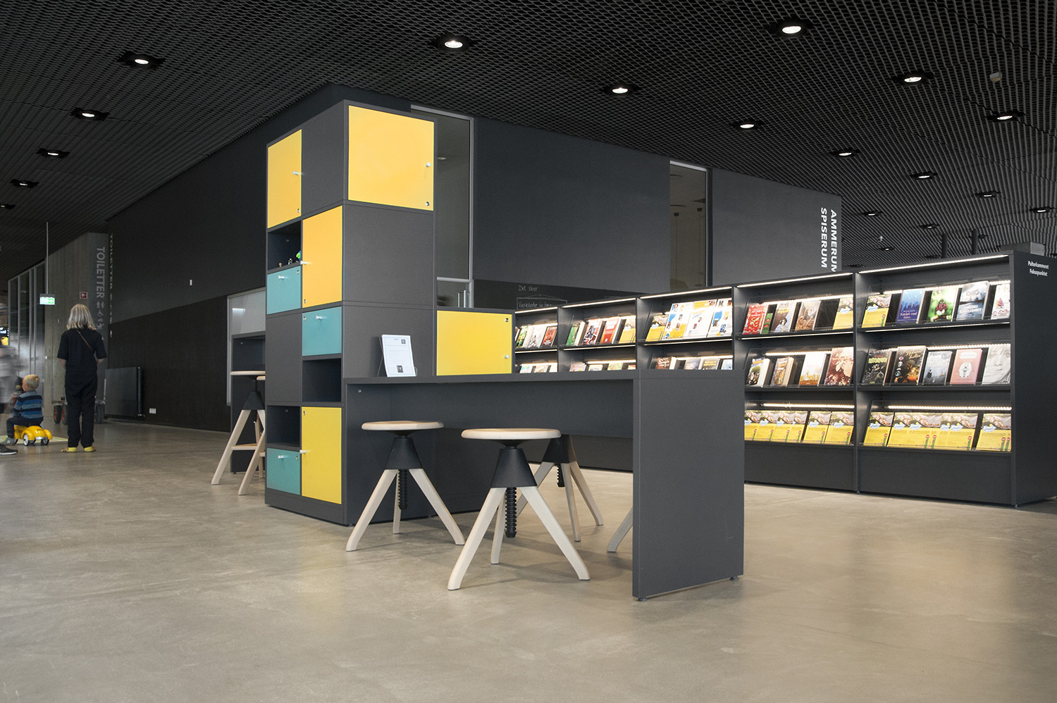 Unsere Schwestergesellschaft Lammhults Biblioteksdesign A/S hat den Großteil des Mobiliars für die Bibliothek im Dokk1 geliefert, sowohl Standard- als auch Sonderlösungen. Die Architektur des Gebäudes ist innen und außen als Kreuzfahrtschiff gestaltet. Dieses Design findet sich in der Innenarchitektur, Ausstattung und Möblierung wieder. Da es die Anforderung gab, so wenig Möbeltypen wie möglich in der Bibliothek einzusetzen, fand eine Fusion unserer bekannten Systeme Ordrup und Frontline Square statt – und Ordrup Square war geboren.