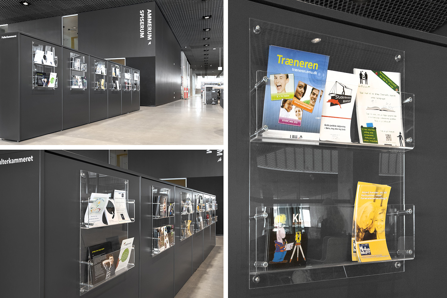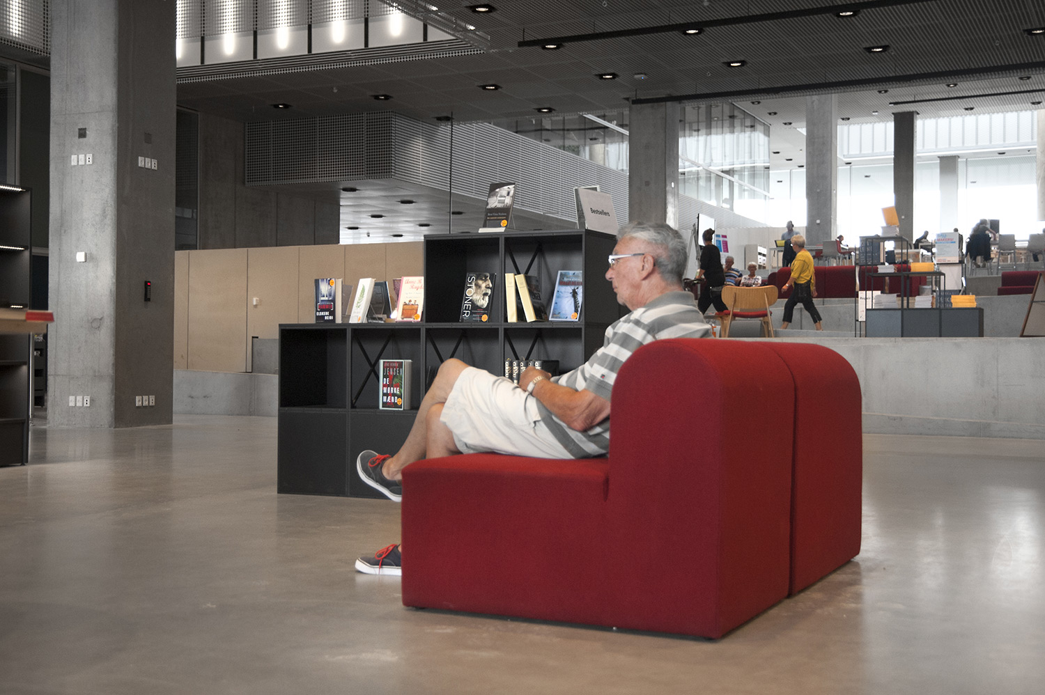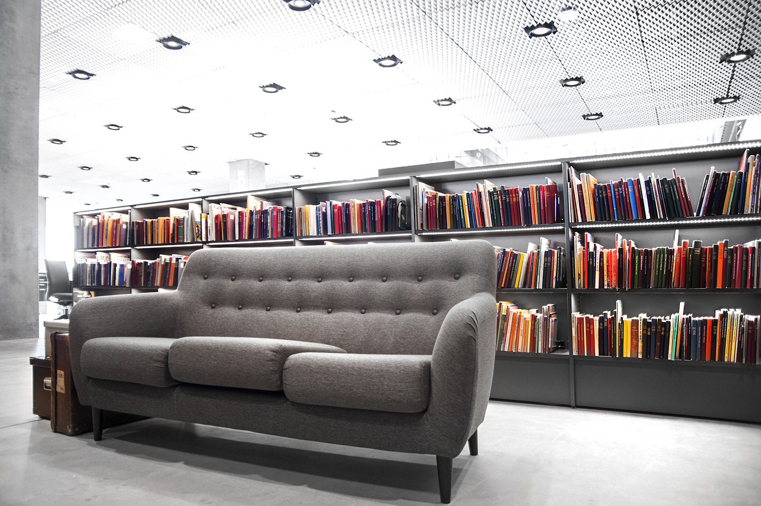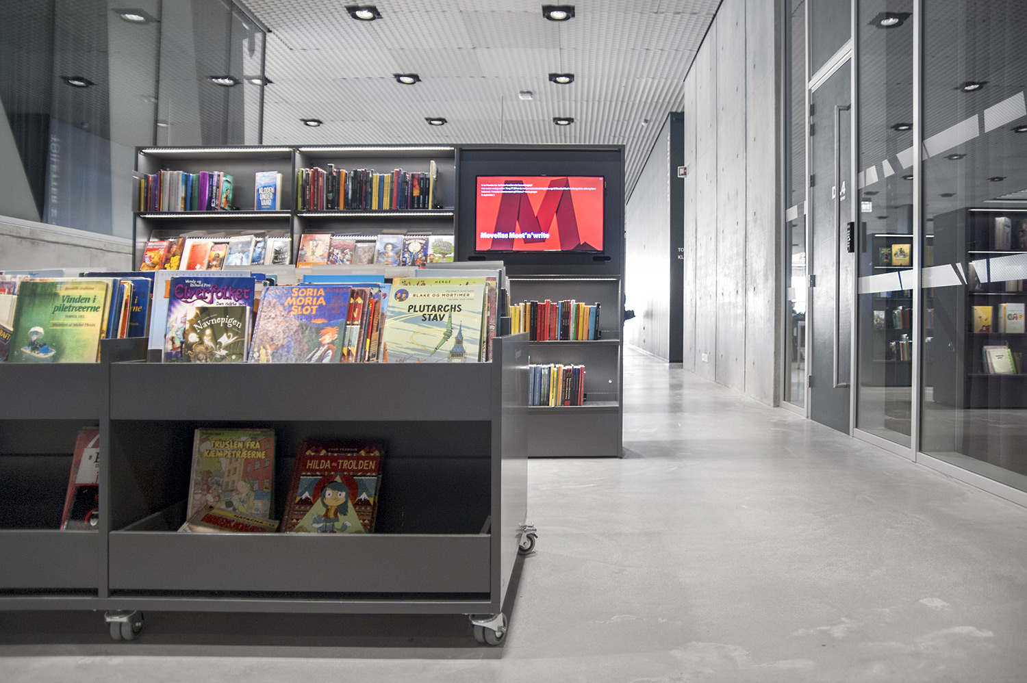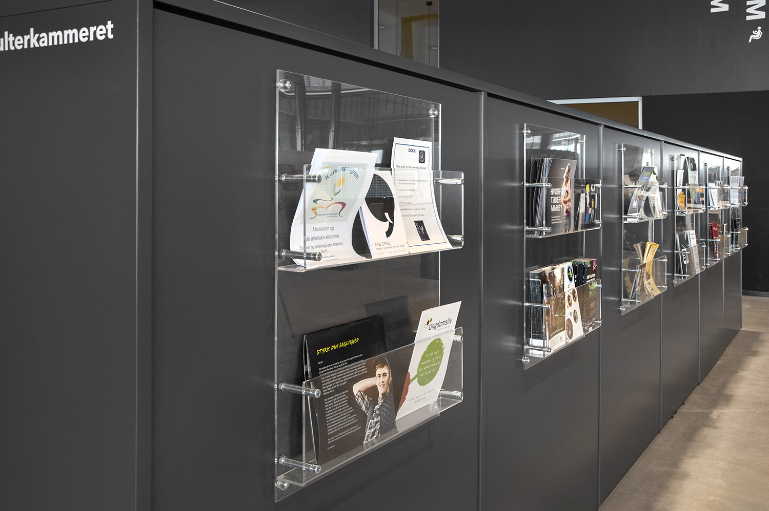 Unsere Schwestergesellschaft Lammhults Biblioteksdesign A/S hat den Großteil des Mobiliars für die Bibliothek im Dokk1 geliefert, sowohl Standard- als auch Sonderlösungen. Die Architektur des Gebäudes ist innen und außen als Kreuzfahrtschiff gestaltet. Dieses Design findet sich in der Innenarchitektur, Ausstattung und Möblierung wieder. Da es die Anforderung gab, so wenig Möbeltypen wie möglich in der Bibliothek einzusetzen, fand eine Fusion unserer bekannten Systeme Ordrup und Frontline Square statt – und Ordrup Square war geboren.