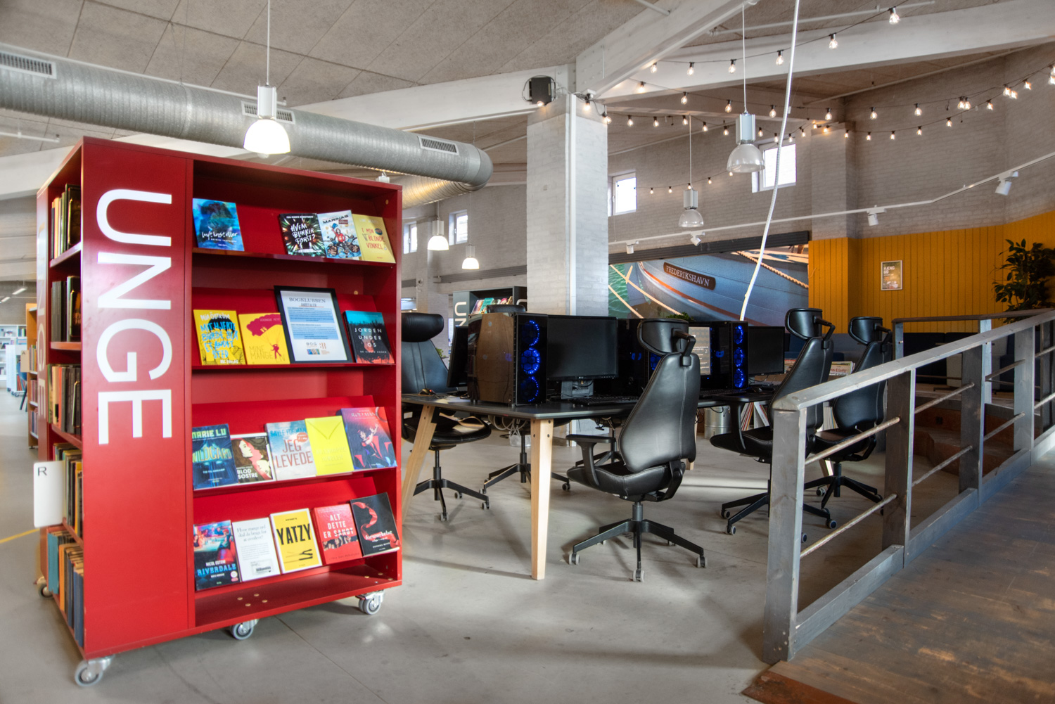 Im Jahr 2016 begannen wir mit der Arbeit an einer einzigartigen und aufregenden Kinder- und Jugendabteilung in der Frederikshavn Bibliothek. Ziel war es, einen coolen Ort zum Abhängen für Teenager und einen spielerischen Bereich für die kleineren Kinder zu schaffen.