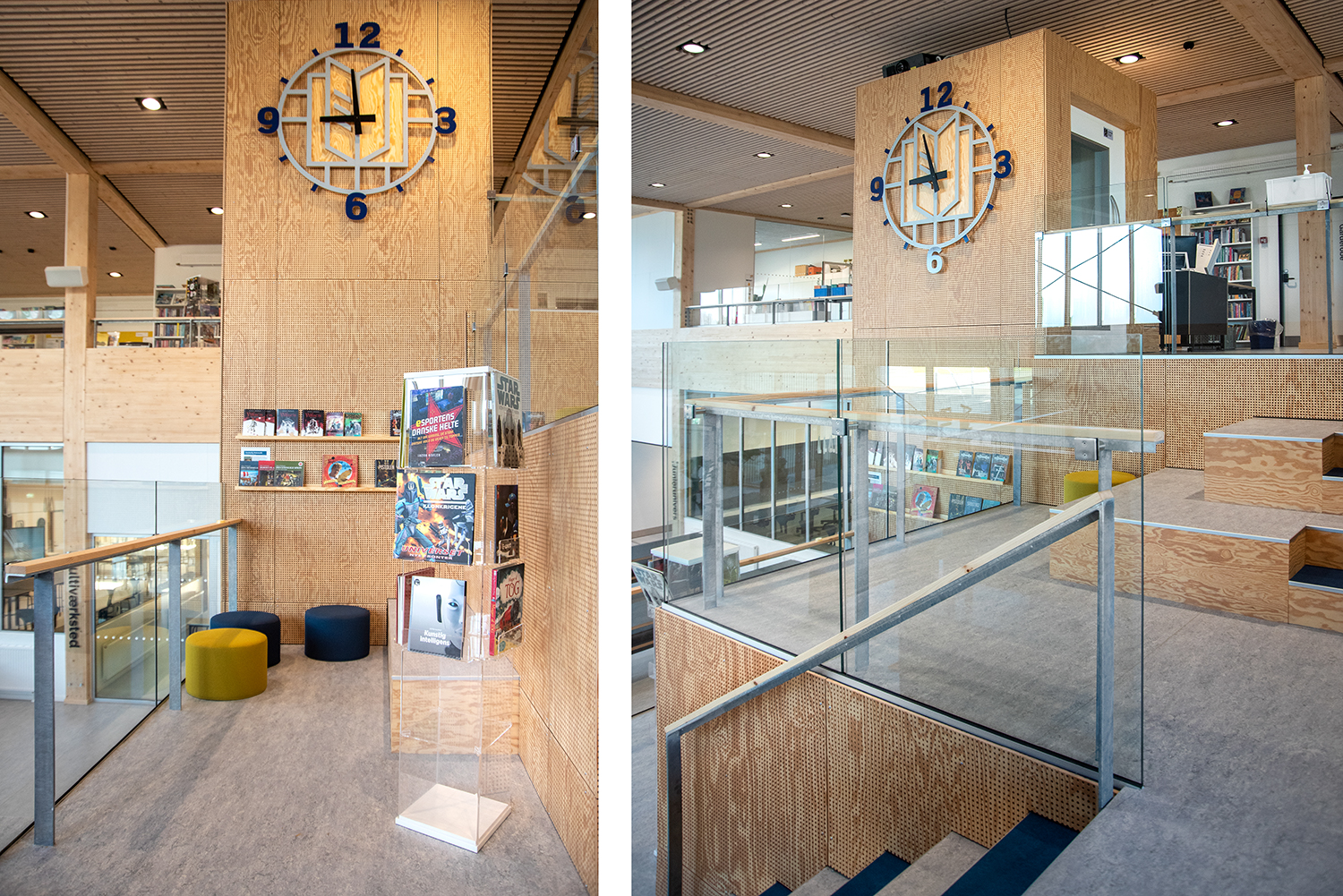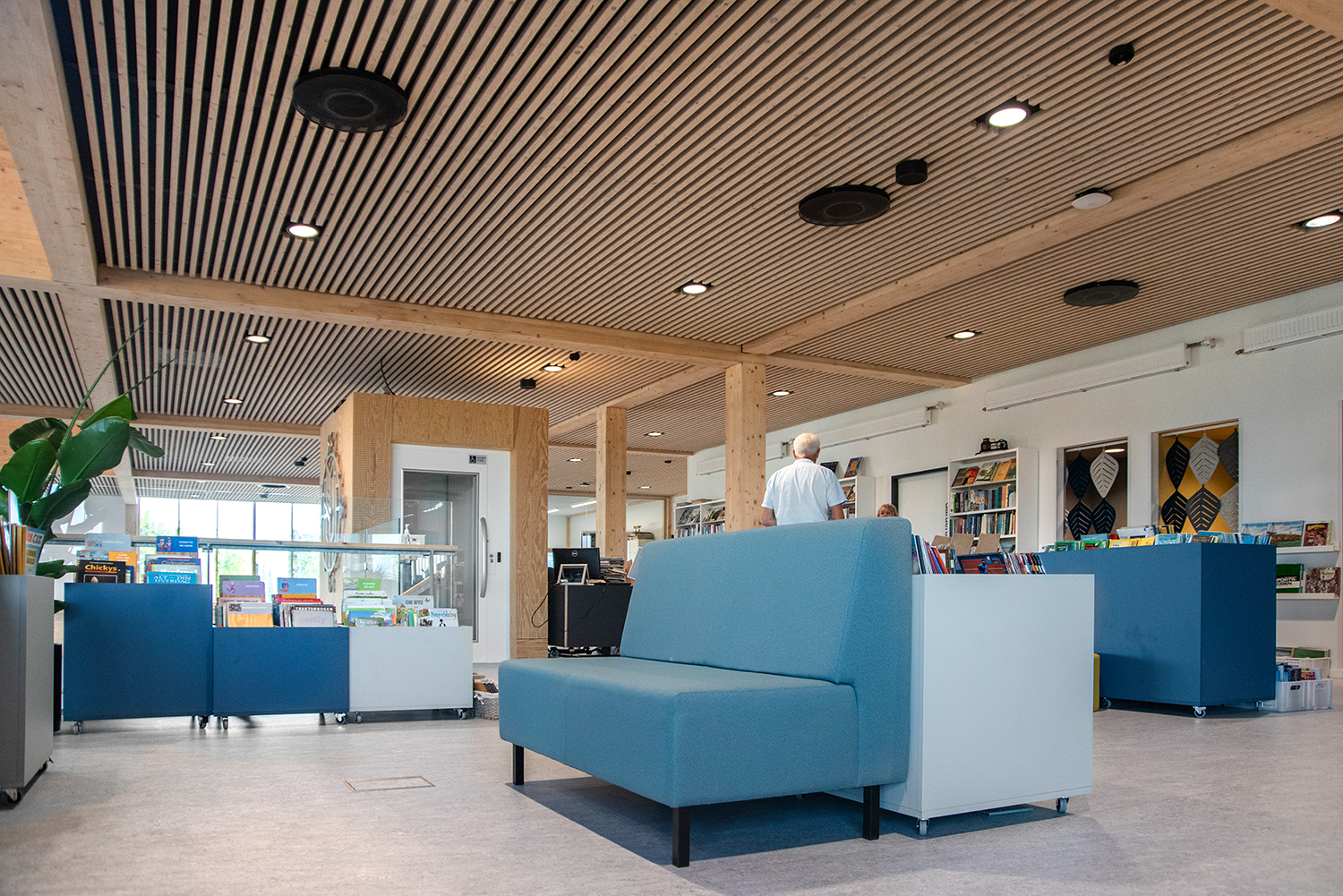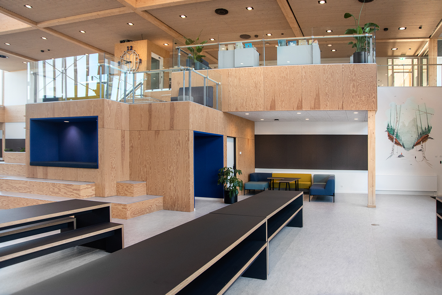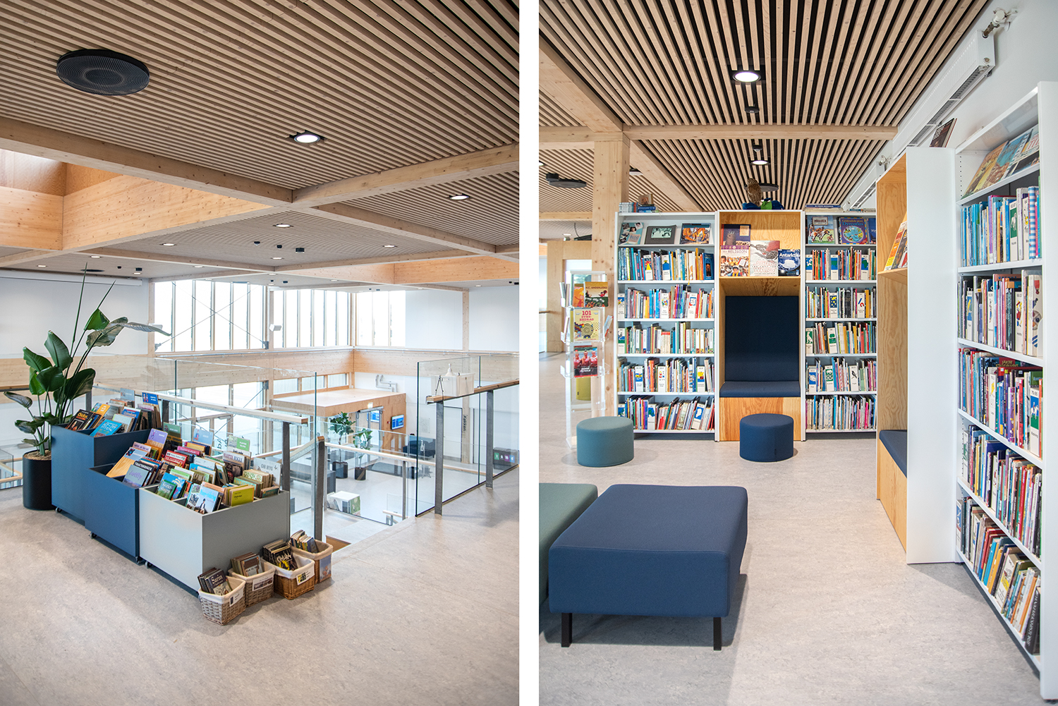 Die Visionen der Schule von Klima und Nachhaltigkeit werden durch unsere Regale und Möbel mit dem Nordic Ecolabel aus FSC-zertifiziertem Holz unterstützt. Ebenso bestehen alle Polster von Sofas und Poufs aus recycelten Materialien.