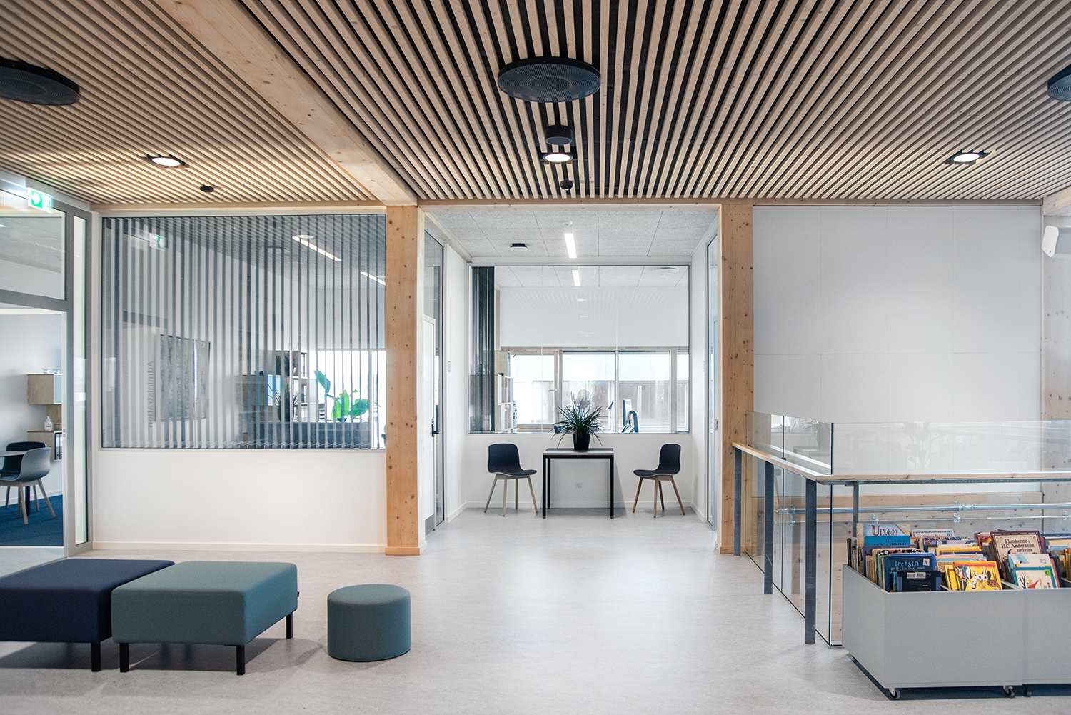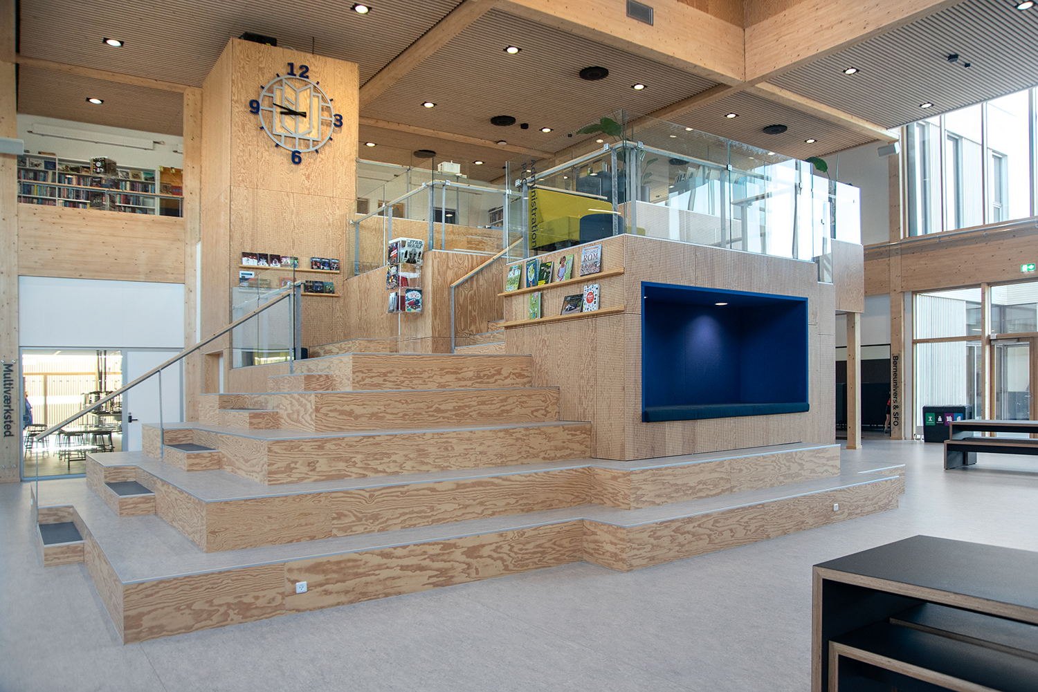 Die Erlev School ist eine innovative Schule mit nachhaltiger Architektur aus Holz. Die Schule wurde als Lernuniversum mit flexiblen, funktionalen und offenen Lernumgebungen entwickelt, die für die Lehrmethoden der Zukunft gerüstet sind. Sowohl Architektur als auch Innenarchitektur und Materialwahl des Gebäudes unterstützen die pädagogische Arbeit und das handlungsorientierte Lernen.