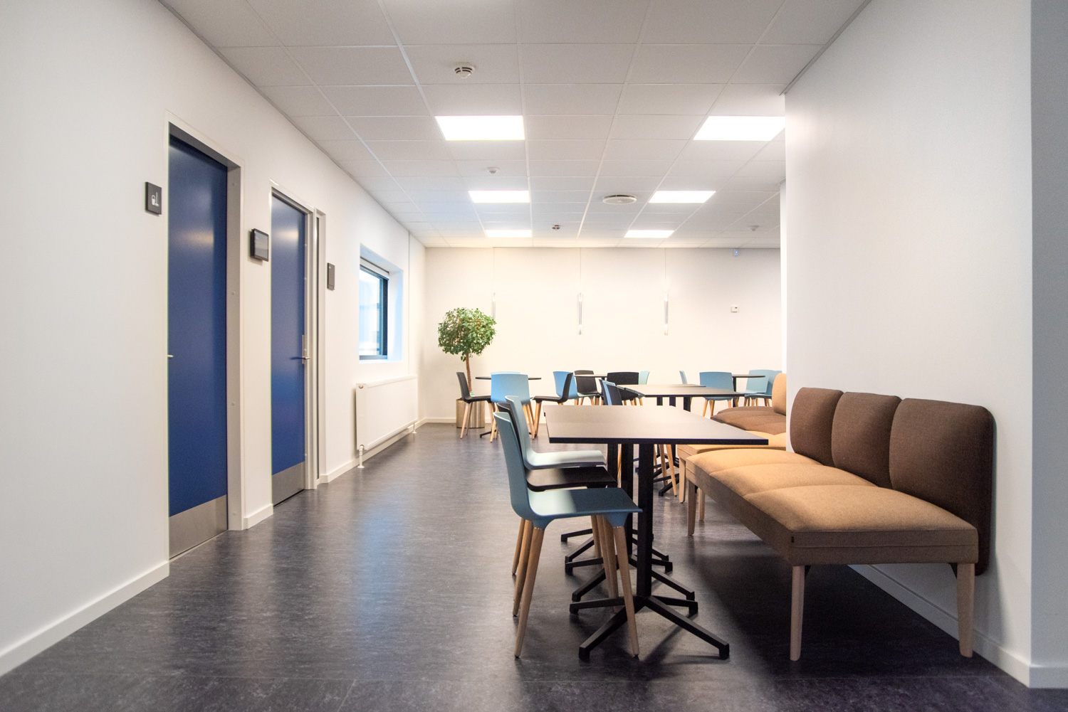 Der schöne neue Lernbereich enthält somit mehrere der gleichen Möbelstücke in einem modernen und zeitlosen Design, die bereits auf dem Rest des Campus existieren. Traditionelle Sitzmöbel mit Tischen und Stühlen finden sich ebenso wie weiche Sitzgelegenheiten, zum Beispiel das Senso-Sofa, das es ermöglicht, von beiden Seiten des Sofas aus zu arbeiten und zu lernen.