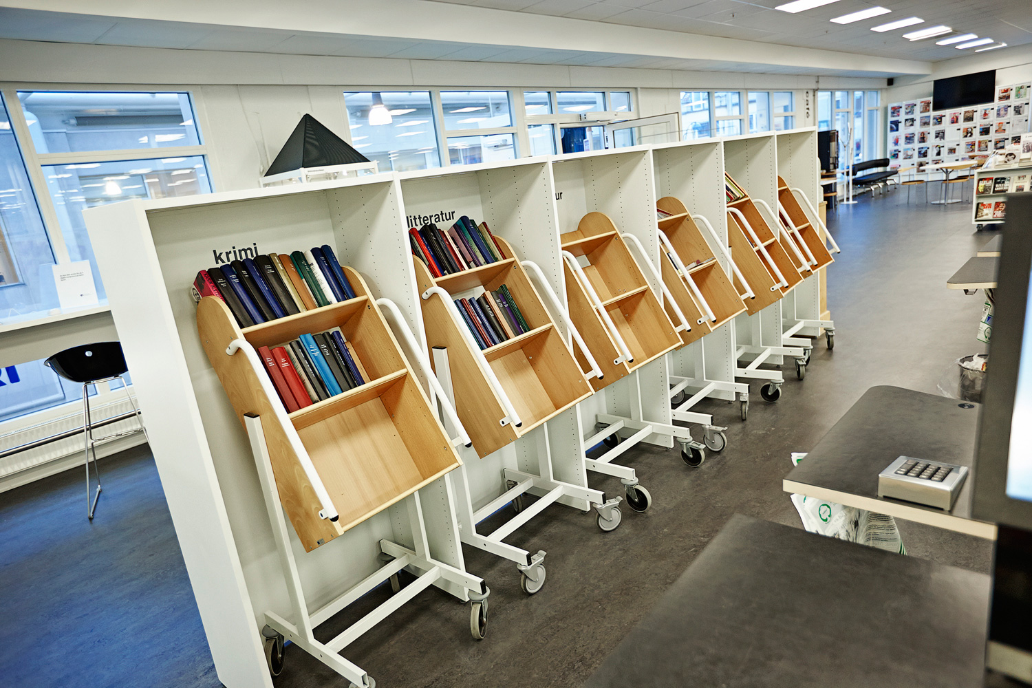 Als die Stadt Holte erfuhr, dass die Bibliothek verlegt und neu gebaut werden sollte, wurde die Möglichkeit für einen Neustart ergriffen. Da die neuen Räume jedoch einiges kleiner sind, wurden sehr viel höhere Anforderungen an die neue Gestaltung und das Design gestellt.