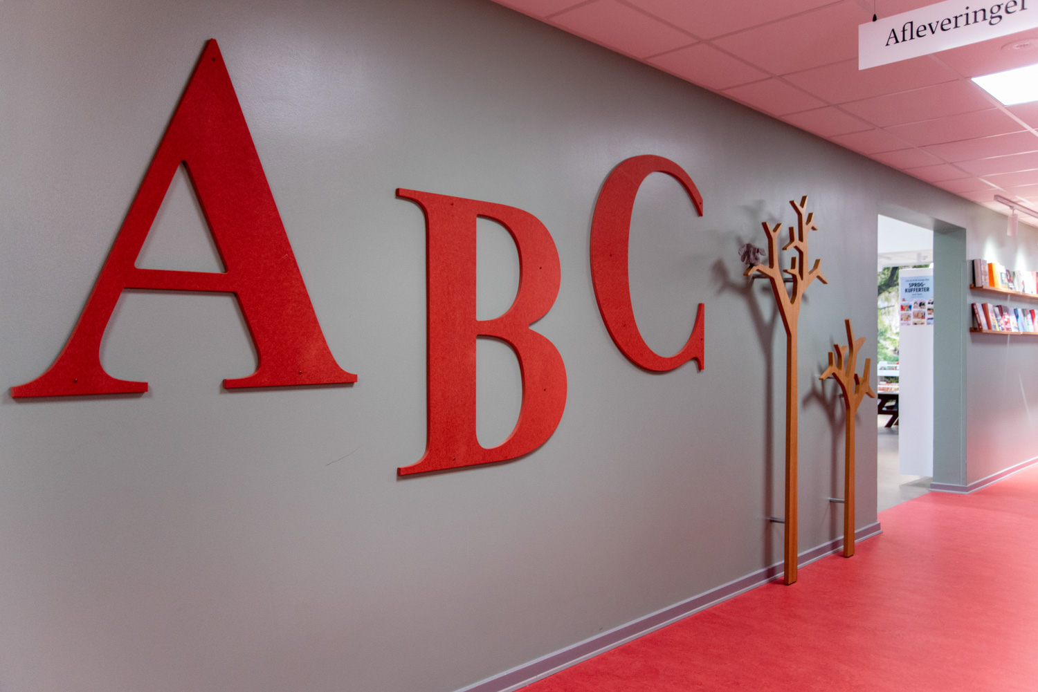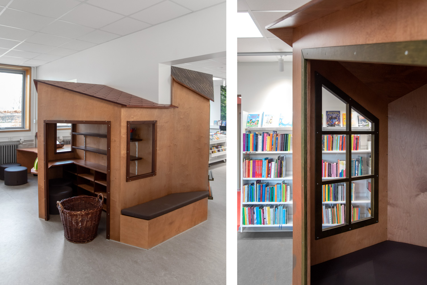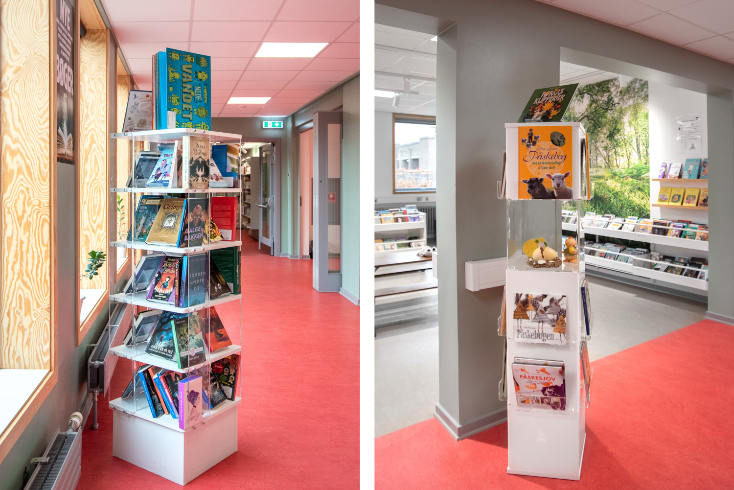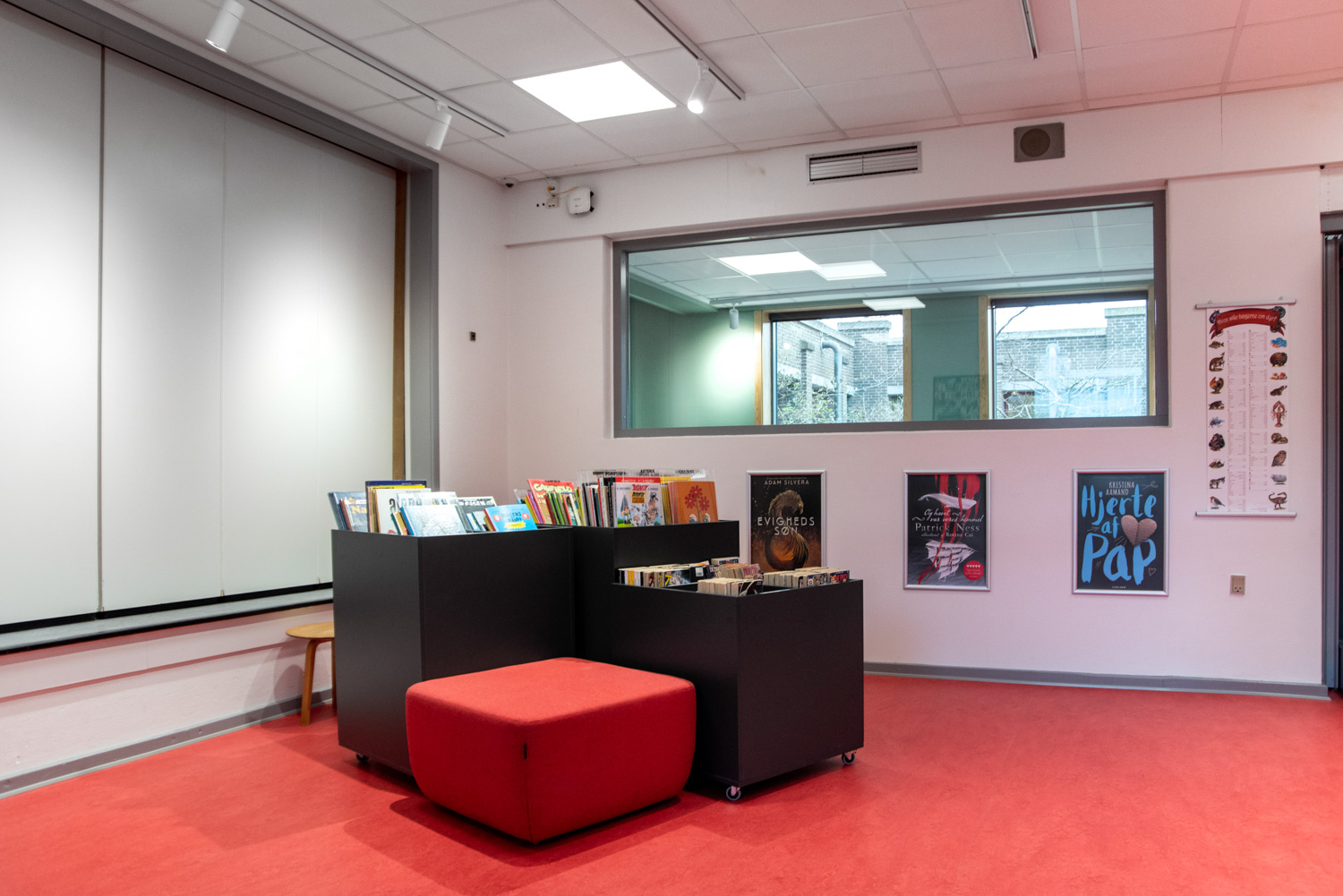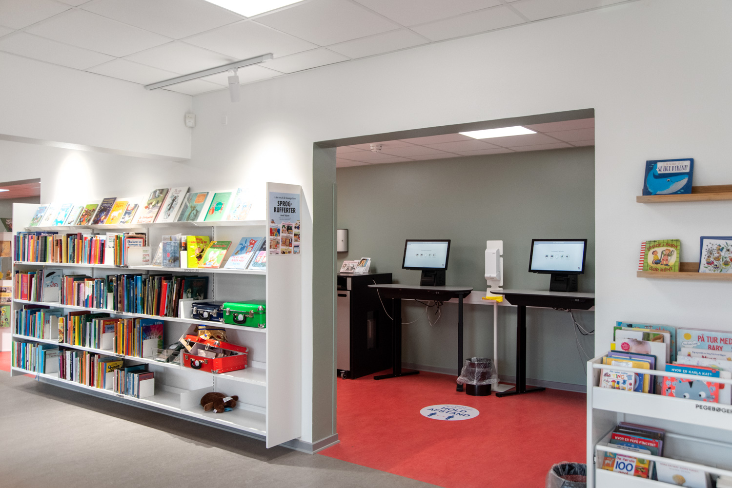 Die Bibliothek basiert auf den Werten Recycling und Nachhaltigkeit, weshalb das Gebäude renoviert und die alten Regalsysteme recycelt wurden. Ein Architekt war für die Renovierung verantwortlich, während Lammhults Biblioteksdesign für die Auswahl der Wandfarben und des gesamten Innenraums verantwortlich war. Durch die Modernisierung der Regalsysteme mit neuen Paneelen und die strategische Platzierung der blauen und Leseregale auf den neuen roten Böden wirkt die