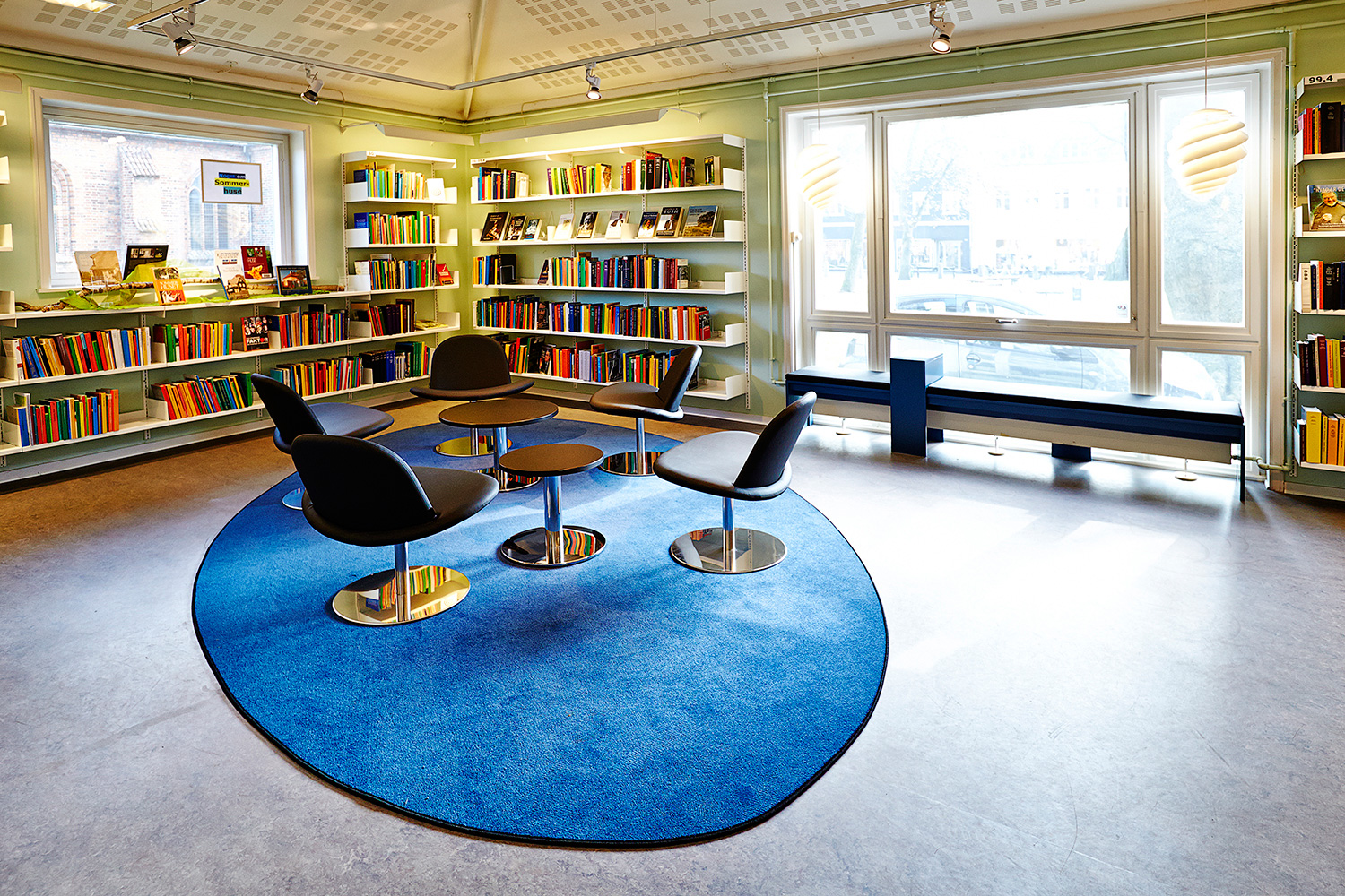 Die Farbzusammenstellung hat unsere Innenarchitektin Lykke Jørgin gemeinsam mit der Bibliothek entworfen. Die Farben verbinden Gebäude und Funktionen und heben die neue Zonenaufteilung