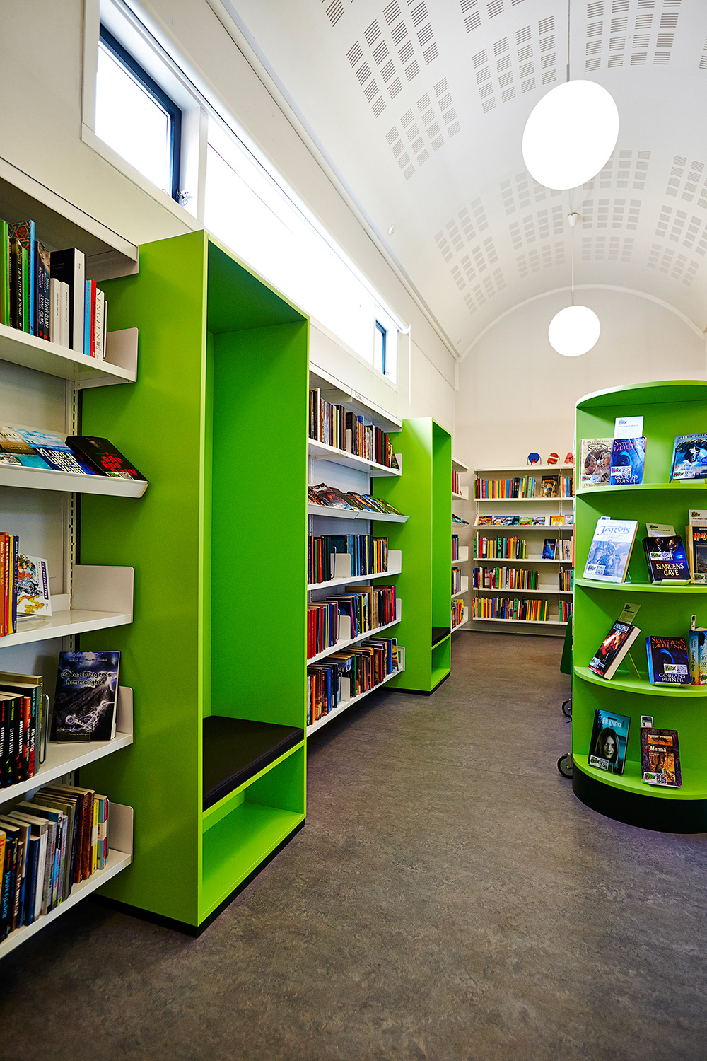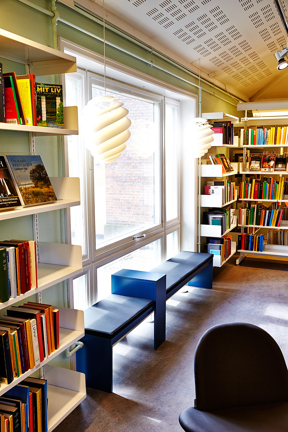 Im Zuge der neuen Innenausstattung der Bibliothek war es die Aufgabe unserer Innenarchitektin Lykke Jørgin, eine neue und modernere Aufteilung der Zonen vorzunehmen und die bedeutenden Funktionen und Materialien zu trennen und hervorzuheben.