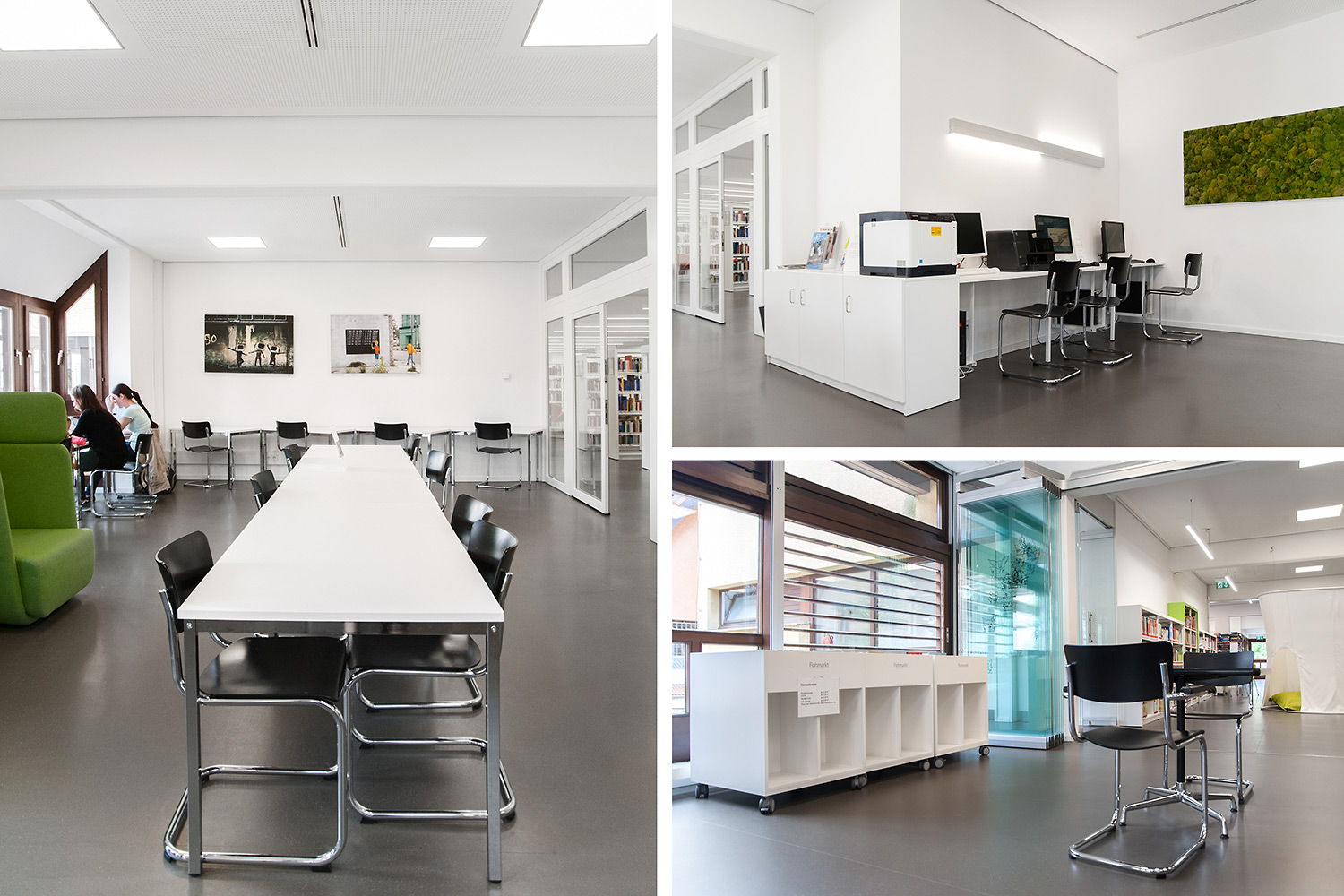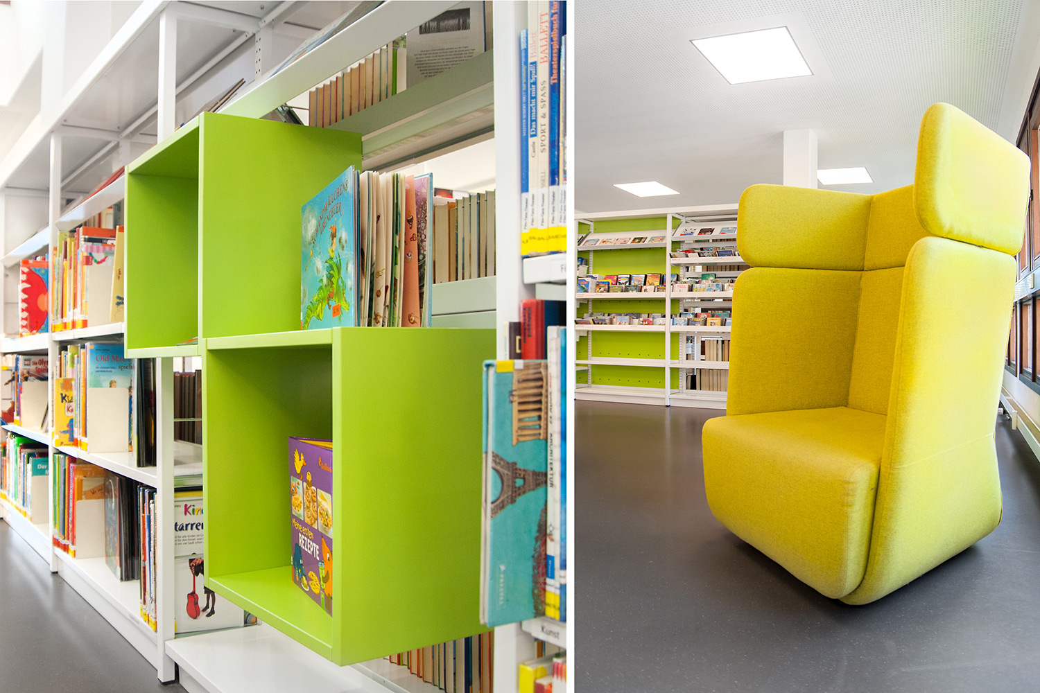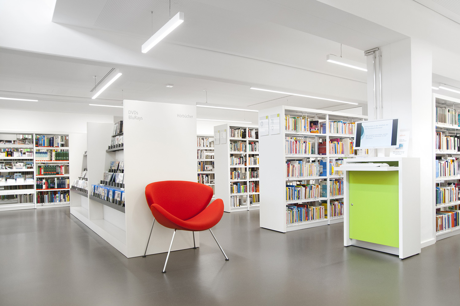 Die Bibliothek liegt im historischen Zentrum von Bietigheim. Es wurde Wert darauf gelegt in diesem klassischem Umfeld eine Oase der Entspannung aber auch ein modernes Umfeld zu schaffen in dem man sich wohlfühlt. Es urden Zonen für alle Arten von Nutzern geschaffen um Alt und Jung unter einem Dach zusammenzubringen. Besonders gelungen ist der Kinderbereich der den Eltern die Möglichkeit gibt, ihrem Nachwuchs einen Aufenthaltsbereich zu nutzen der die Phantasie entwickelt.