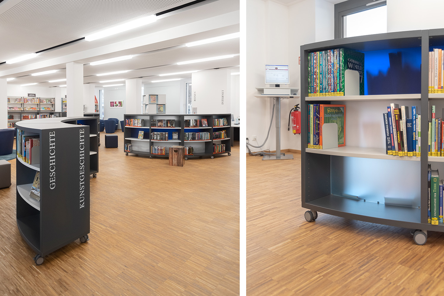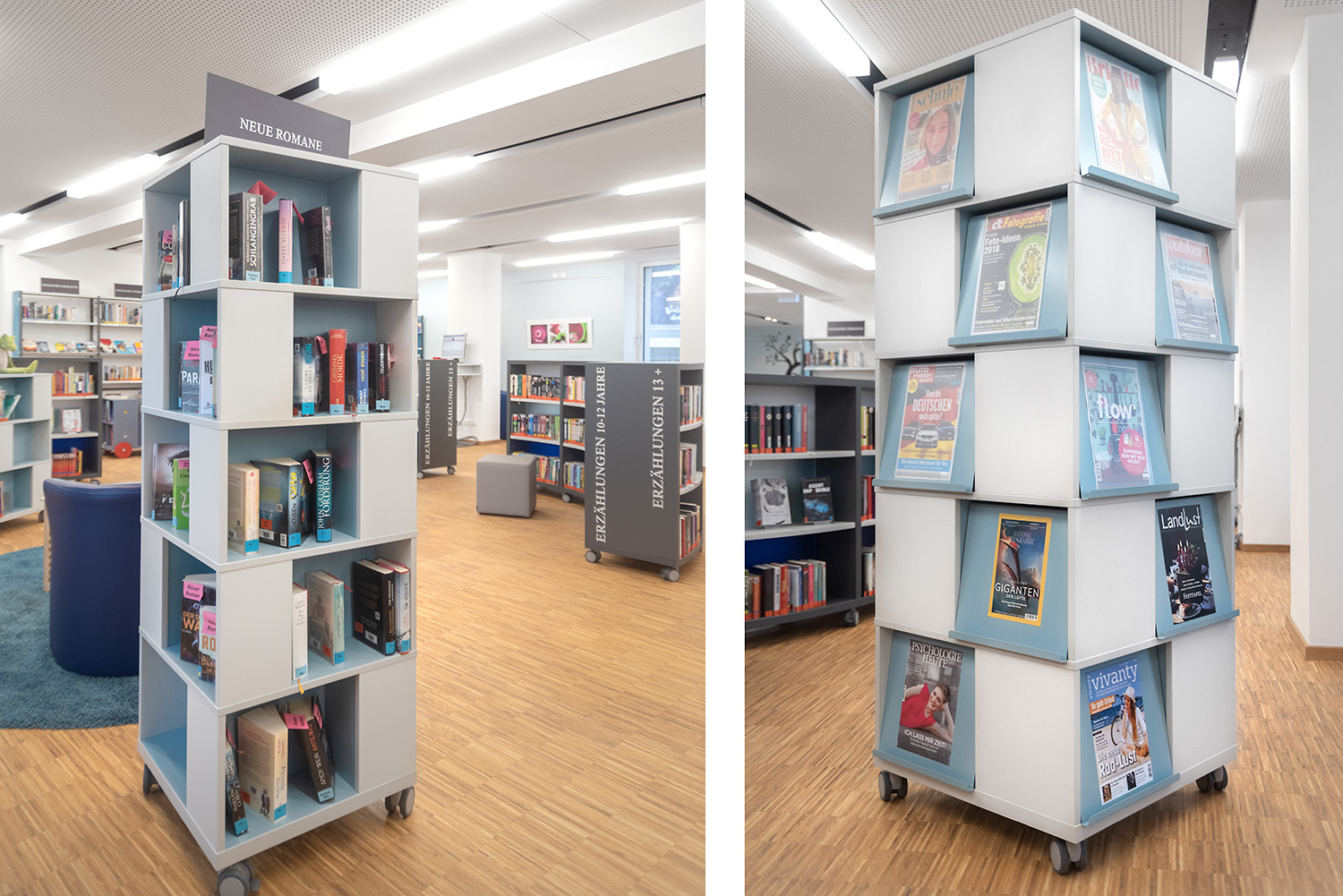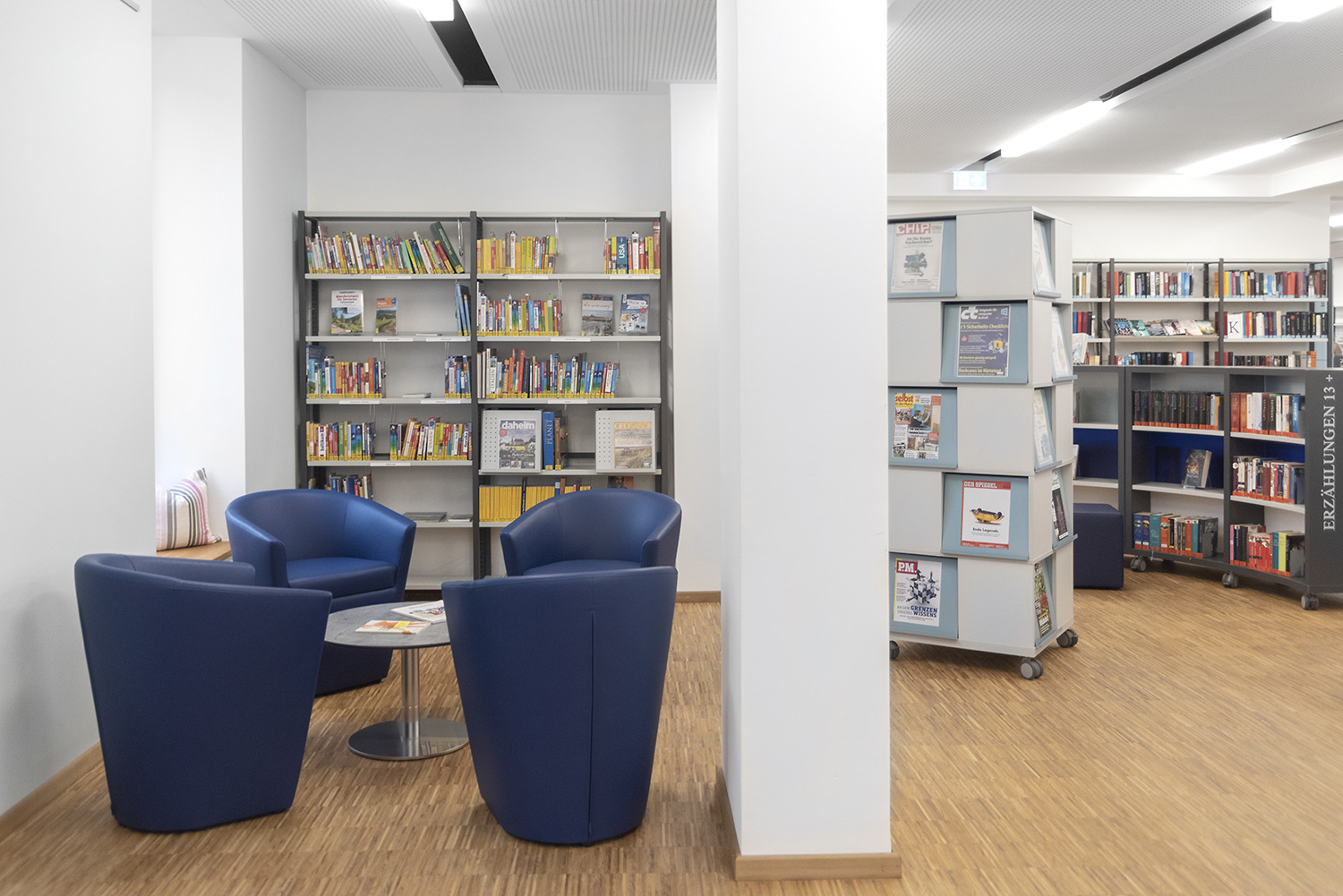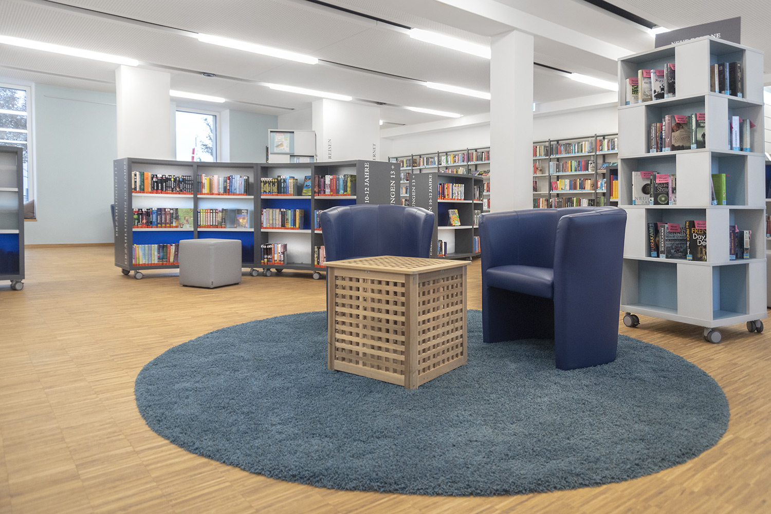 Im schönen Allgäu gelegen haben wir hier ein Beispiel für gelungenes und zeitloses Bibliotheksdesign. Gekonntes kombinieren von Farben, Licht und Materialien schaffen eine Wohlfühlatmosphäre. Wir haben hierbei unsere Informtheke , sowie Inform Rundregale und Uniflex eingesetzt. Und natürlich auch etliche andere Möbel um dieses schöne Resultat zu schaffen.
