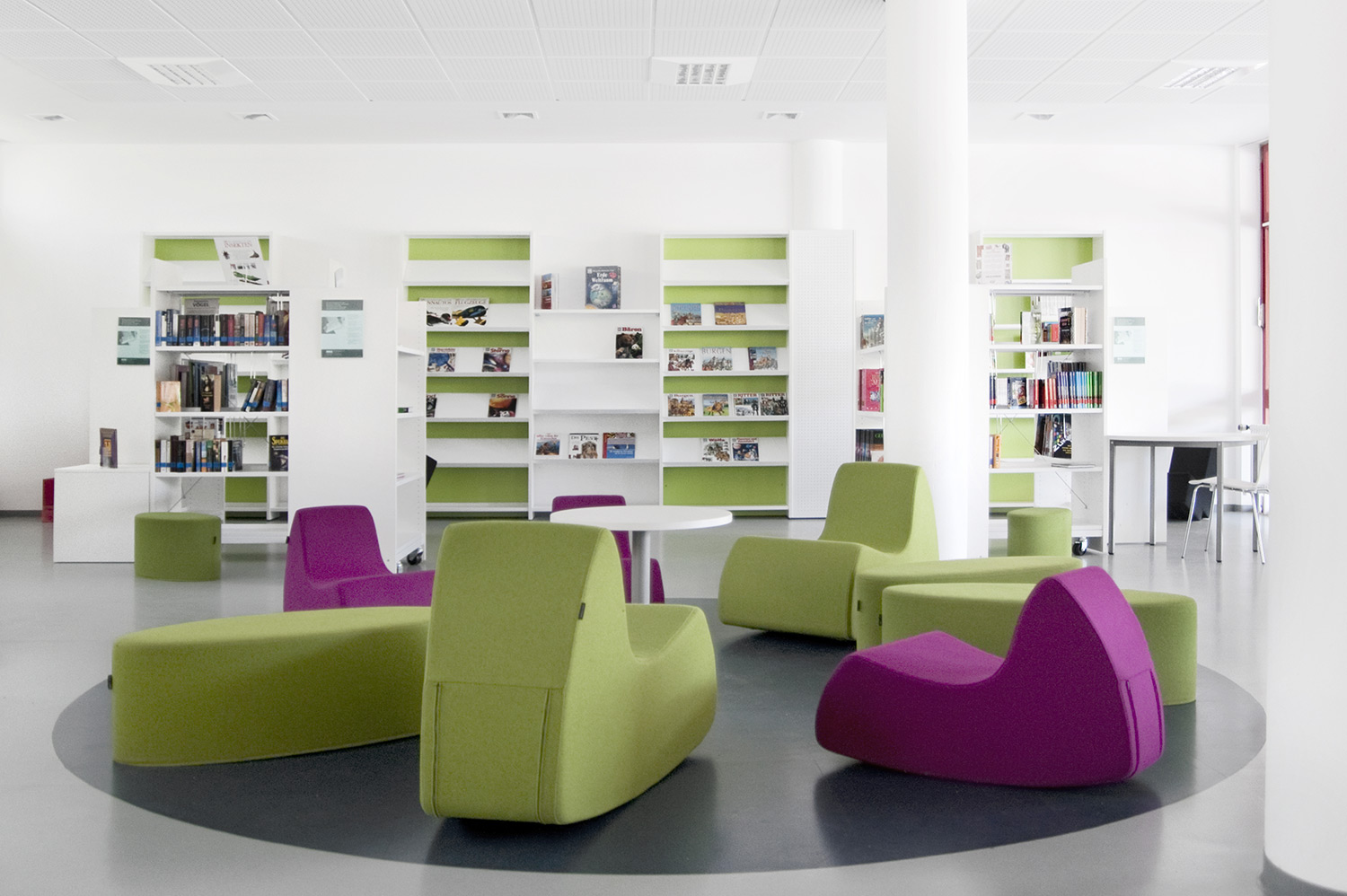 Das Design soll Raum und Inspiration sowohl für Selbststudien als auch Kommunikation zwischen den Schülern bieten. Es handelt sich um einen frischen luftigen Raum, in dem Lernen Freude macht und der ein lockeres Forum für unterschiedlichste spezielle Schulveranstaltungen bietet.