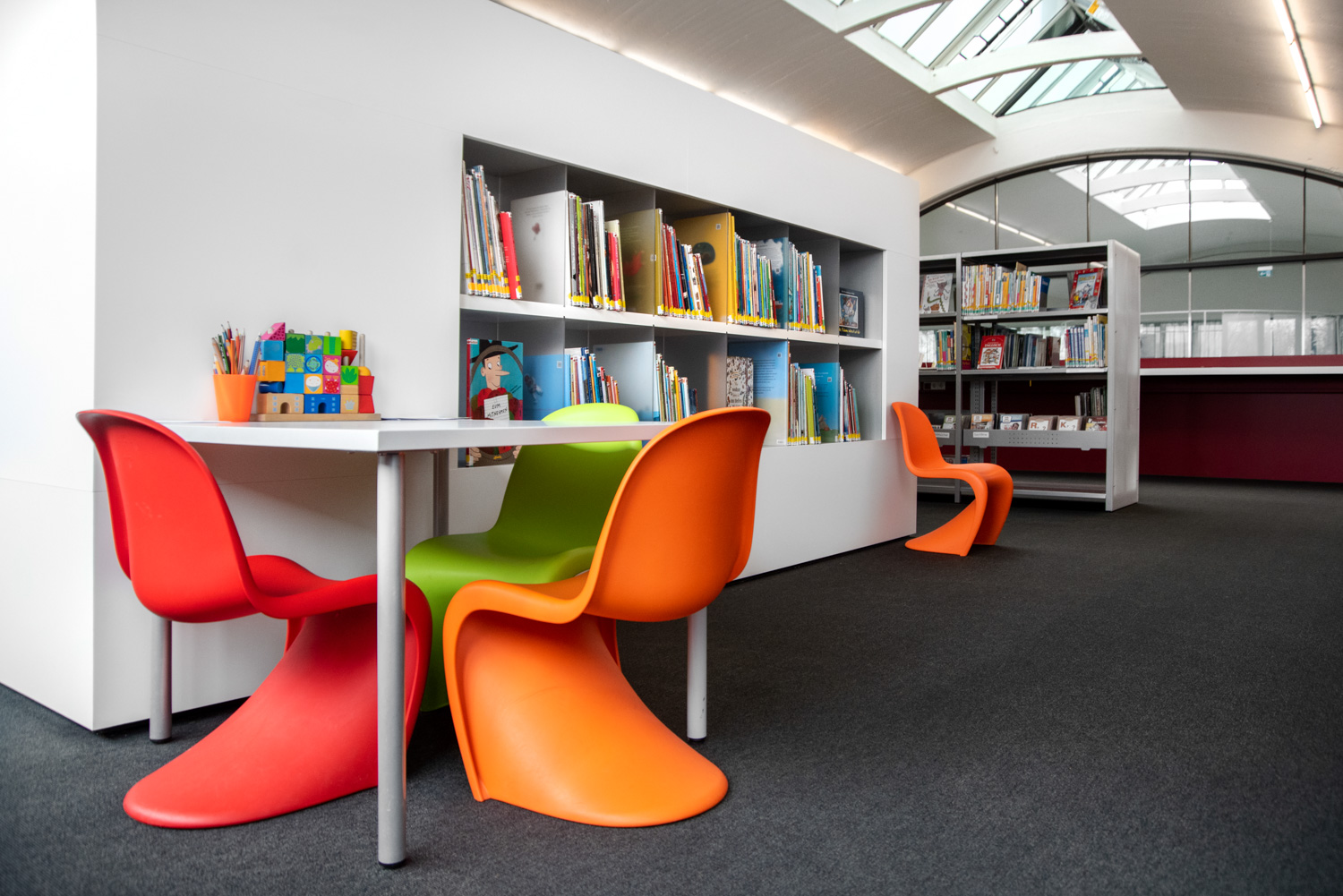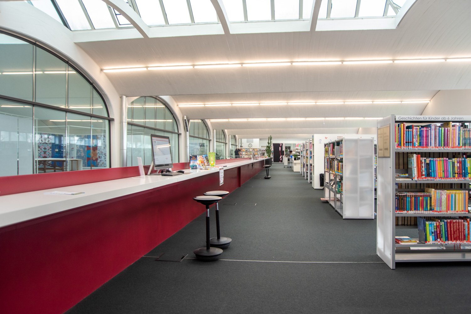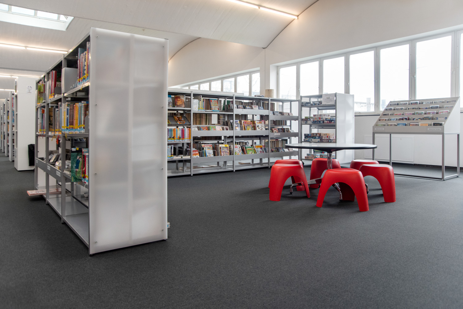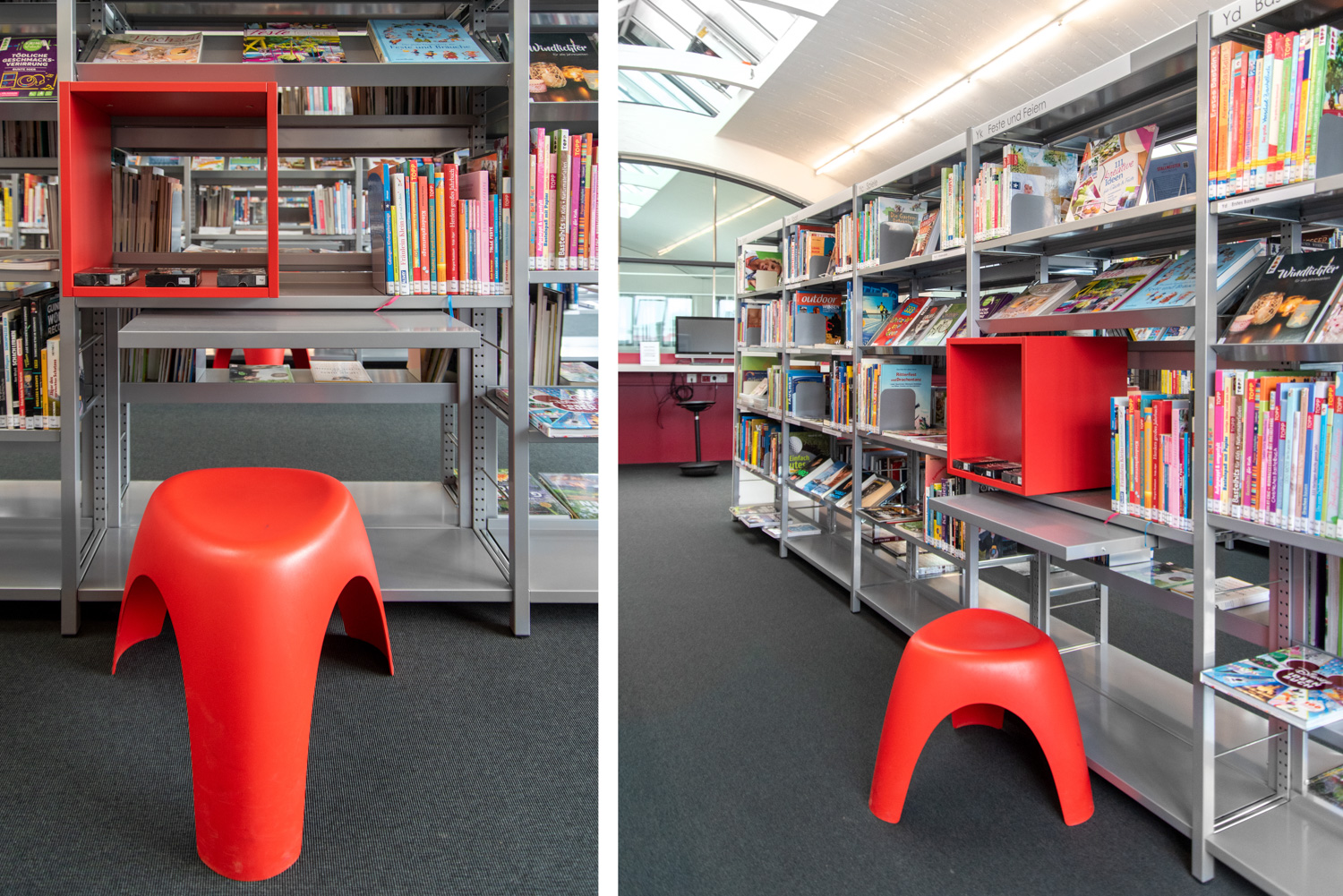 Das wurde hier in Mössingen mit vielen kleinen Details von den Architekten professionell umgesetzt. Lichtdurchflutet, großzügig und verspielt bietet die Bibliothek ihren Besuchern einen angenehmen Aufenthalt und einen großzügigen Treffpunkt in dieser spannenden Bibliothek.