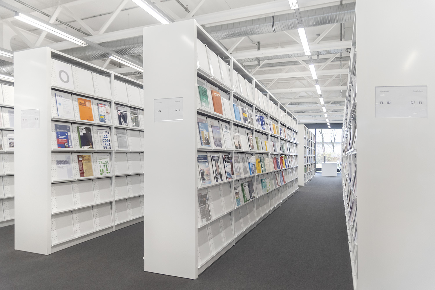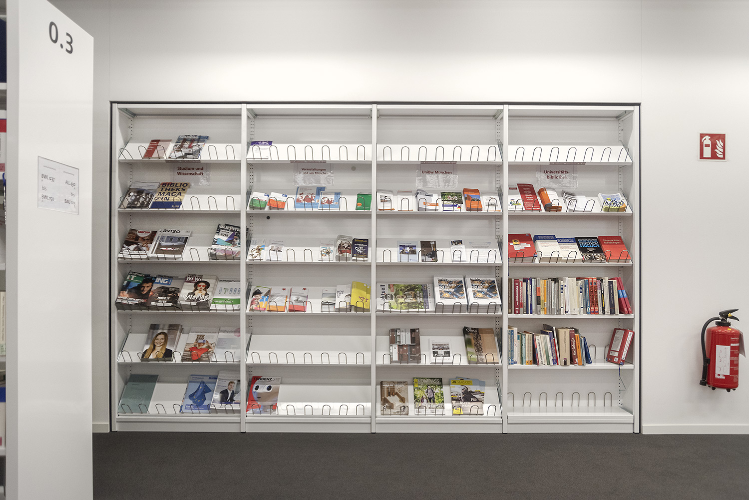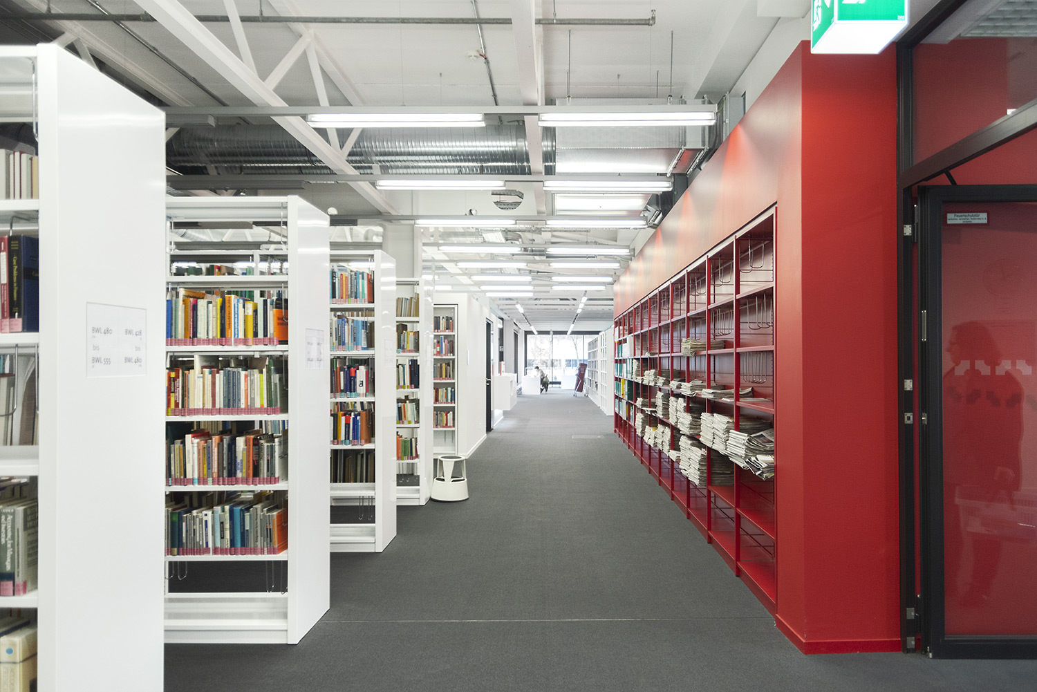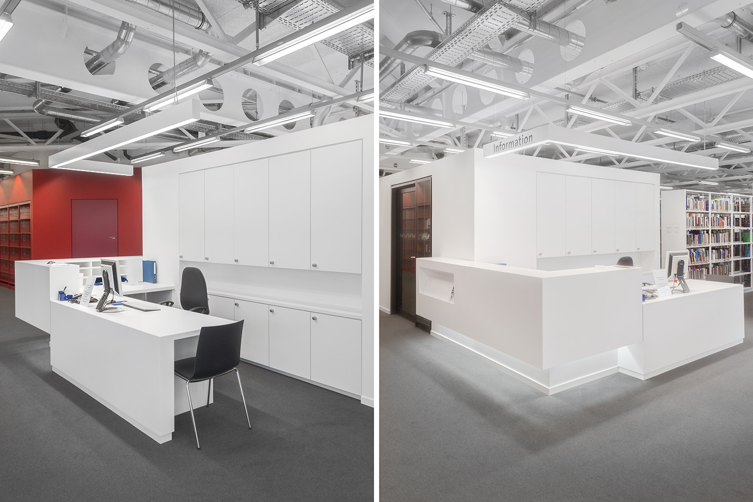 Ein gutes Beispiel dafür, dass hoher technischer Anspruch und schönes Design Hand in Hand gehen können. Wir haben bei diesem beeindruckenden Projekt unser Regalsystem Uniflex eingesetzt. Hierbei wurden die Seitenverkleidungen geschickt mit einer neuen Technik in den Tragrahmen integriert um ein besonders filigranes Erscheinungsbild zu schaffen. Des Weiteren wurde unser Regalsystem in manchen Bereichen in die Wand integriert was eine hohe Fertigungsqualität sowie eine hohe Aufmerksamkeit bei der Installation erfordert. Beides hat unser Team hier geschafft. Wenn man heute durch das Gebäude geht, überzeugt die geschickte Kombination von Farbe, Licht und Material und schafft eine inspirierende Atmosphäre.