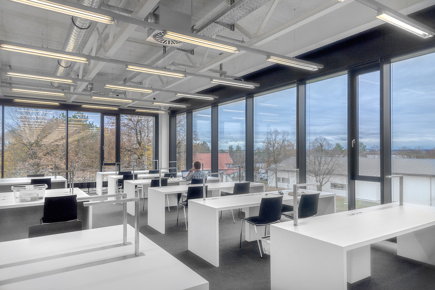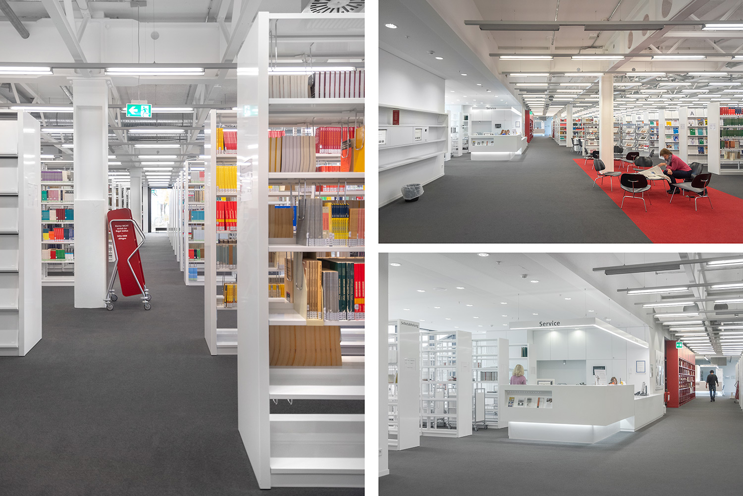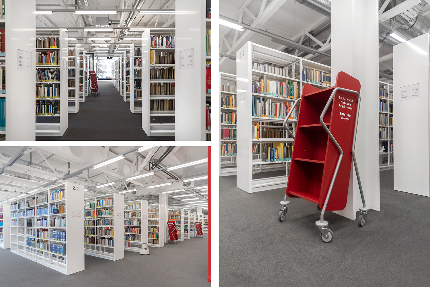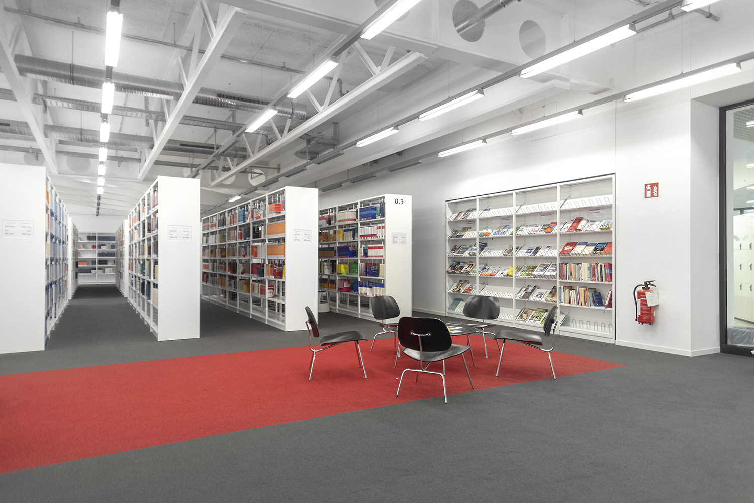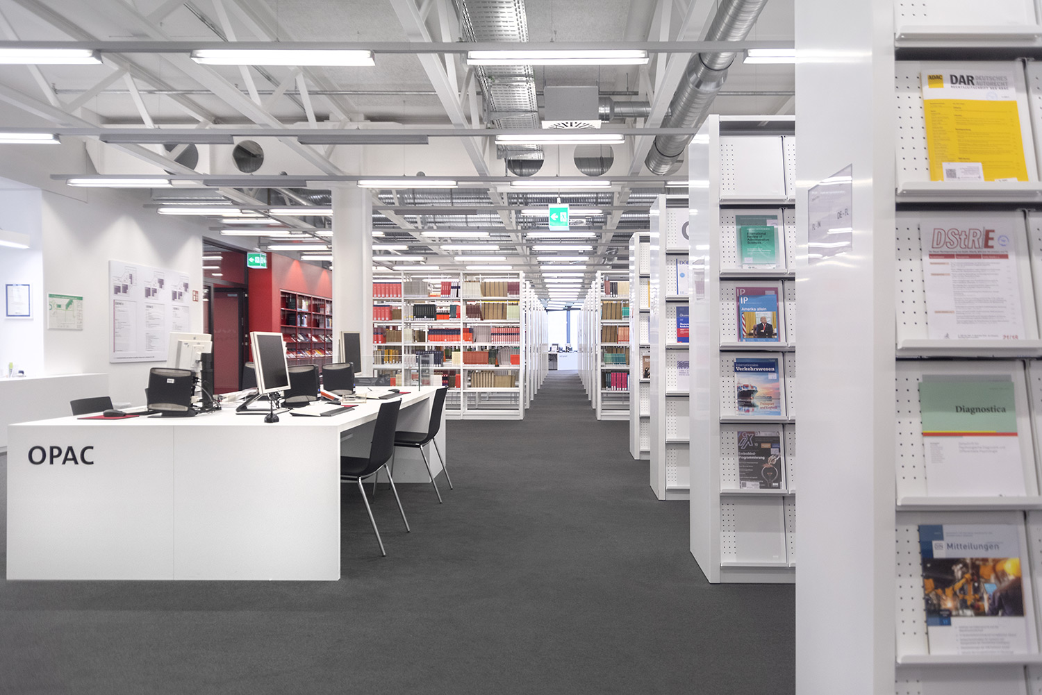Ein gutes Beispiel dafür, dass hoher technischer Anspruch und schönes Design Hand in Hand gehen können. Wir haben bei diesem beeindruckenden Projekt unser Regalsystem Uniflex eingesetzt. Hierbei wurden die Seitenverkleidungen geschickt mit einer neuen Technik in den Tragrahmen integriert um ein besonders filigranes Erscheinungsbild zu schaffen. Des Weiteren wurde unser Regalsystem in manchen Bereichen in die Wand integriert was eine hohe Fertigungsqualität sowie eine hohe Aufmerksamkeit bei der Installation erfordert. Beides hat unser Team hier geschafft. Wenn man heute durch das Gebäude geht, überzeugt die geschickte Kombination von Farbe, Licht und Material und schafft eine inspirierende Atmosphäre.