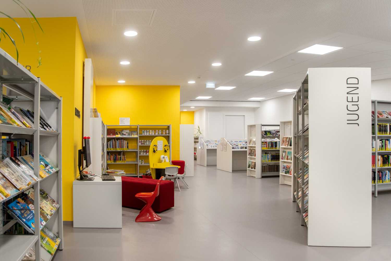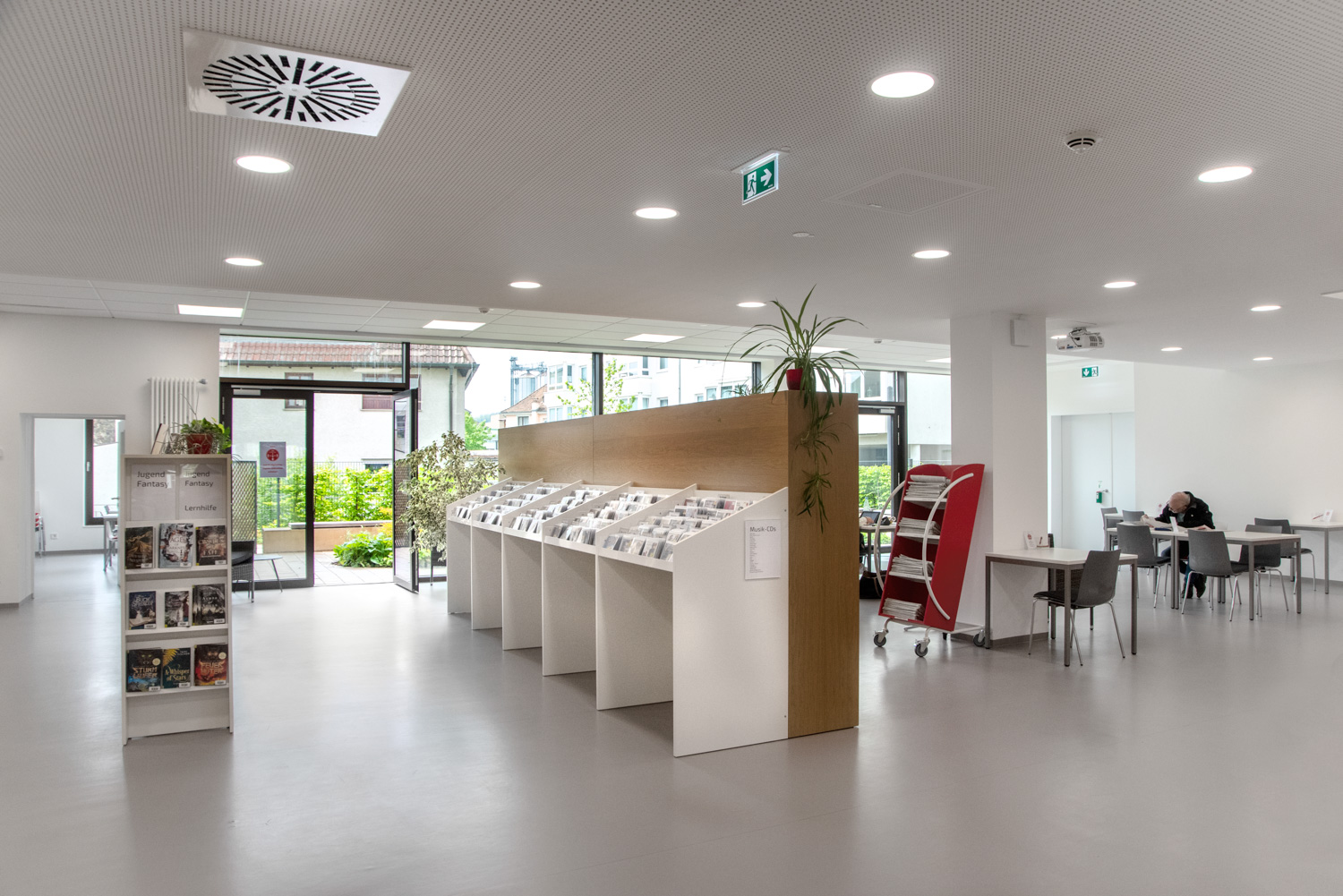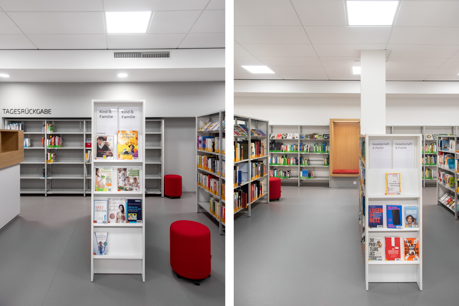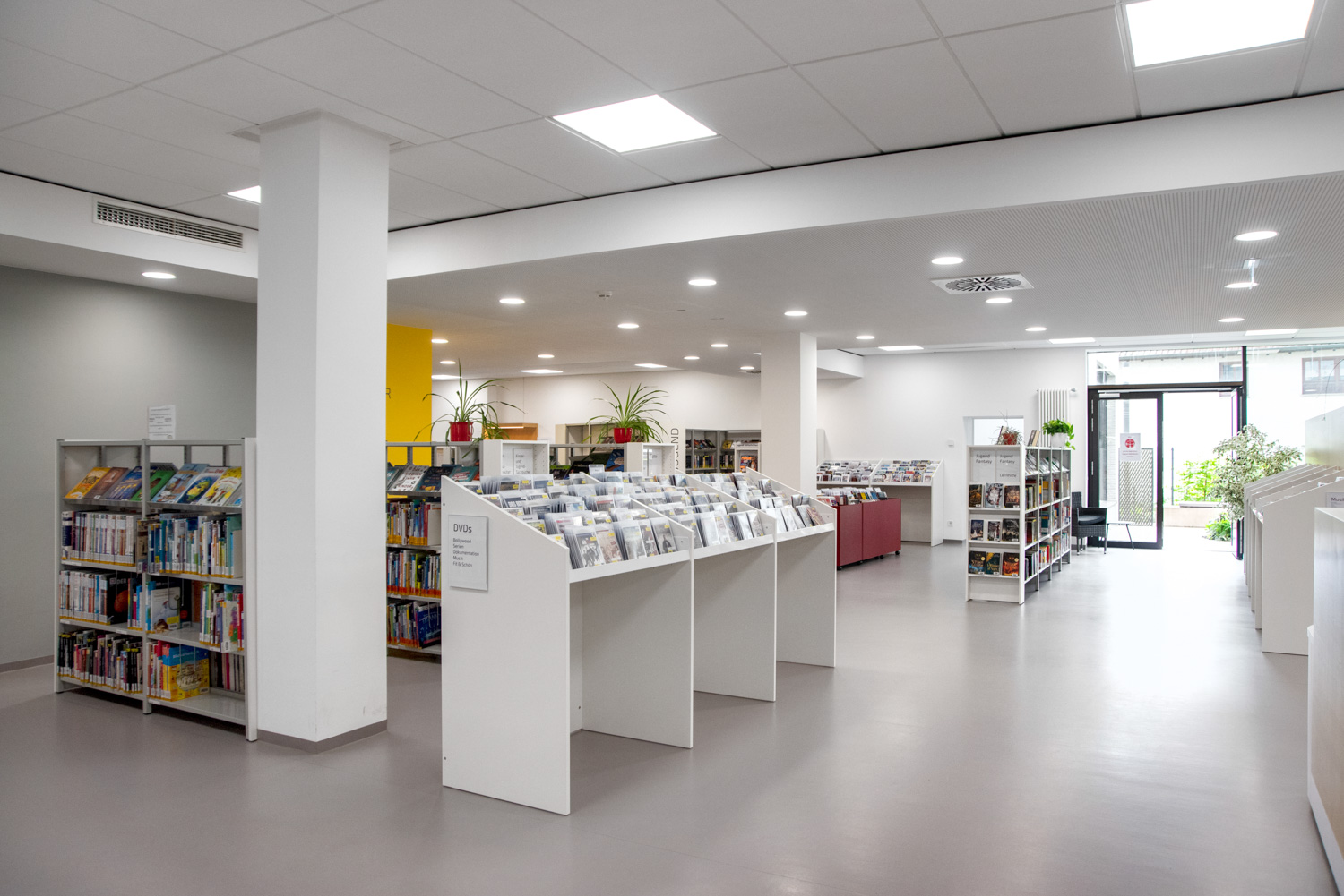 In der Bibliothek Sinsheim wurden alle Metallregale überarbeitet. Gleichzeitig wurden der Bibliothek neue Möbel hinzugefügt , z.B. das Wow!, die Show it Pyramide und der Inform-Tisch, um der Bibliothek einen frischen neuen Touch zu verleihen.
