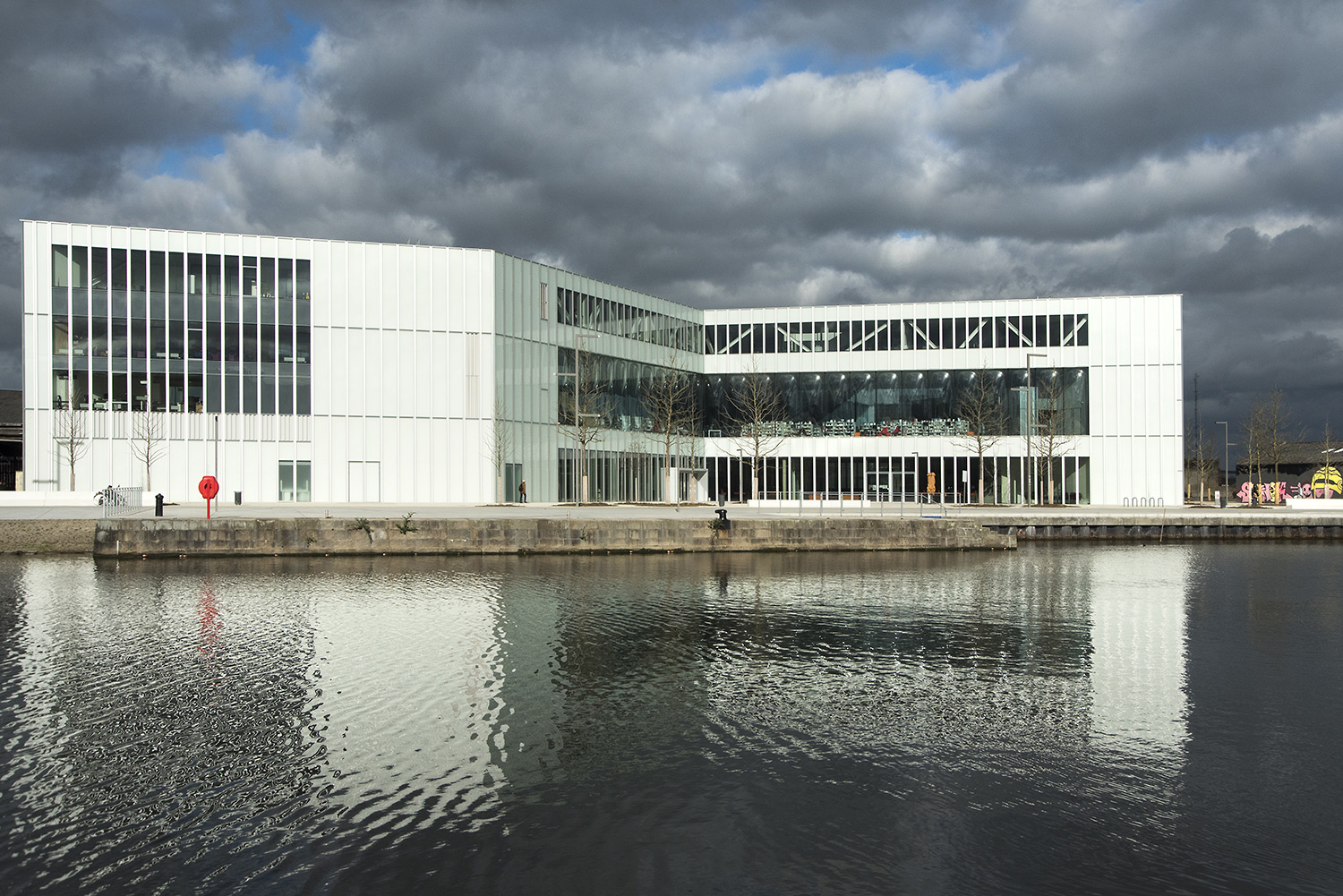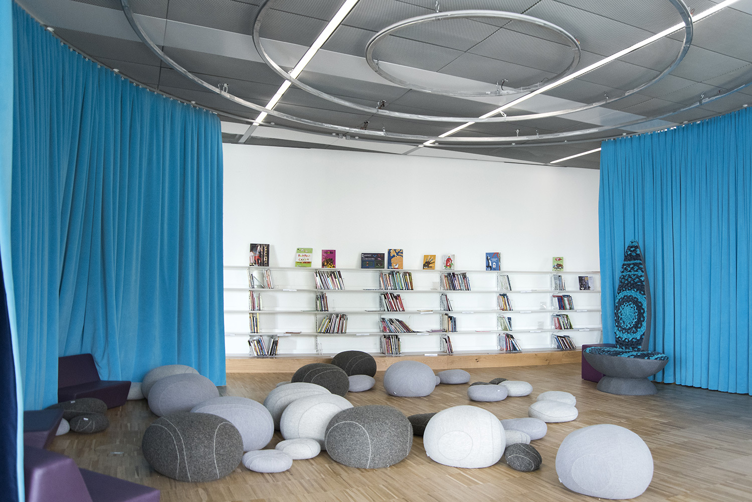 Die Glasfassade verbindet den Park auf der einen mit der Fußgängerzone auf der anderen Seite. Die beiderseitigen großen Eingänge sind zugleich Verbindung und Interaktion mit der Umgebung. Die Schlüsselposition der Bibliothek zwischen dem historischen und dem neuen Stadtteil entspricht der Forderung der Stadtbewohner nach einem neuen zentralen Treffpunkt.