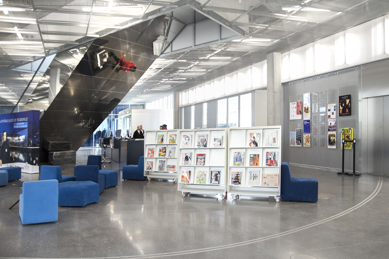 Die neue Bibliothek Alexis de Toqueville in Caen-la-Mer/Frankreich wurde von dem preisgekrönten Architekten Rem Koolhaas aus dem international bekannten Architekturbüro OMA geplant. Die offizielle Eröffnung der Bibliothek nahm die französische Kultusministerin Audrey Azoulay am 13. Januar 2017 vor. Sie war sprachlos beim Anblick dieser großartigen Bibliothek und begann ihre Rede mit den Worten: „Dies ist eine der schönsten Bibliotheken in Frankreich“.