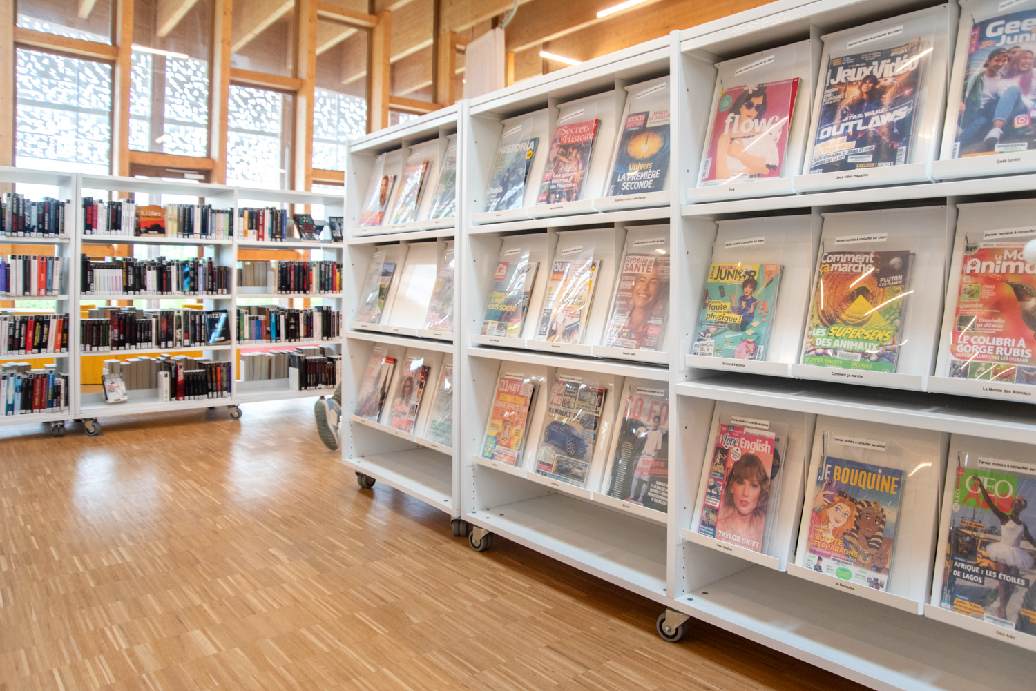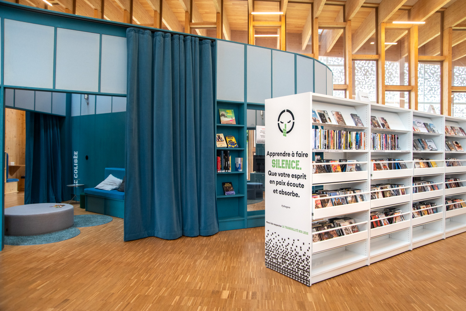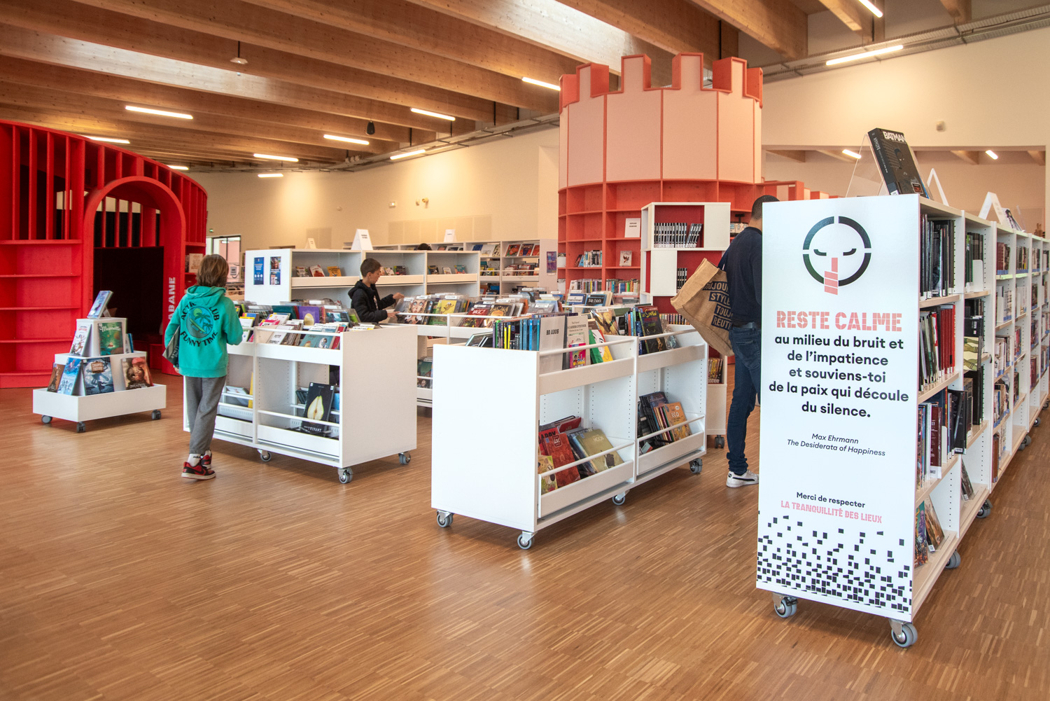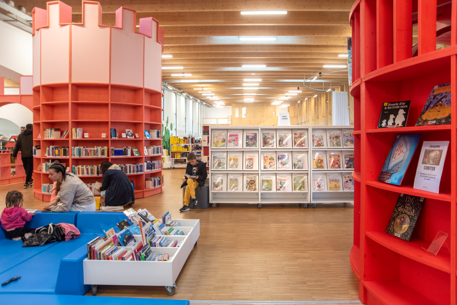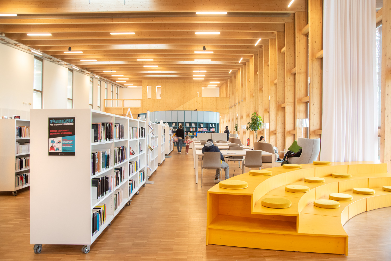 Im Kulturzentrum von Herblay-sur-Seine verschmelzen die Lesebereiche der Bibliothek, die Spielbereiche der Kinderbibliothek und ein flexibles Auditorium zu einem einheitlichen Ganzen. Das Auditorium kann für Veranstaltungen, Konzerte und Filmvorführungen genutzt werden, während die offene, modulare Gestaltung es ermöglicht, das Gebäude für eine Vielzahl von Aktivitäten anzupassen.