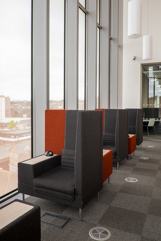 Die Universität Bedfordshire investierte kürzlich £ 46 Mio. auf ihrem Campus Luton in eine neue Bibliothek, die dem neuesten Stand der Technik entspricht. Thedesignconcept hatte das Vergnügen, der Hauptlieferant für das Mobiliar dieses Projektes zu sein, das 7.400 qm umfasst und sich auf 9 Ebenen erstreckt. In enger Zusammenarbeit mit dem Projektteam der Universität und den MCW Architekten installierte Thedesignconcept erfolgreich im ganzen Gebäude Möbel in vielfältiger Auswahl. Dazu gehören:
