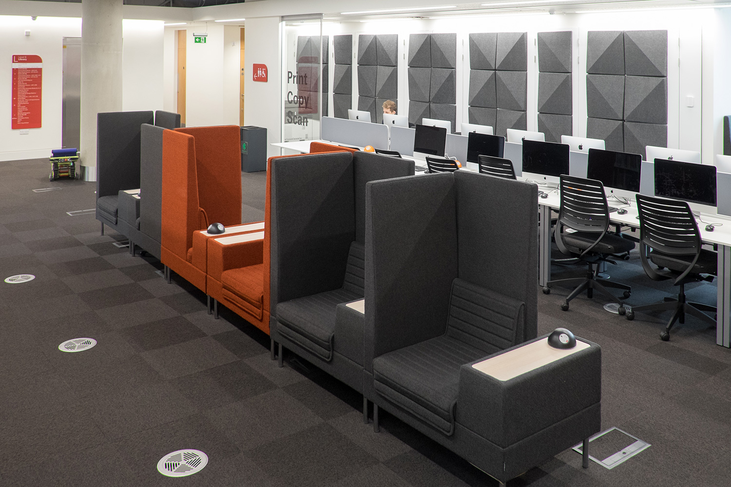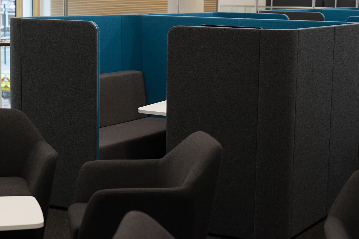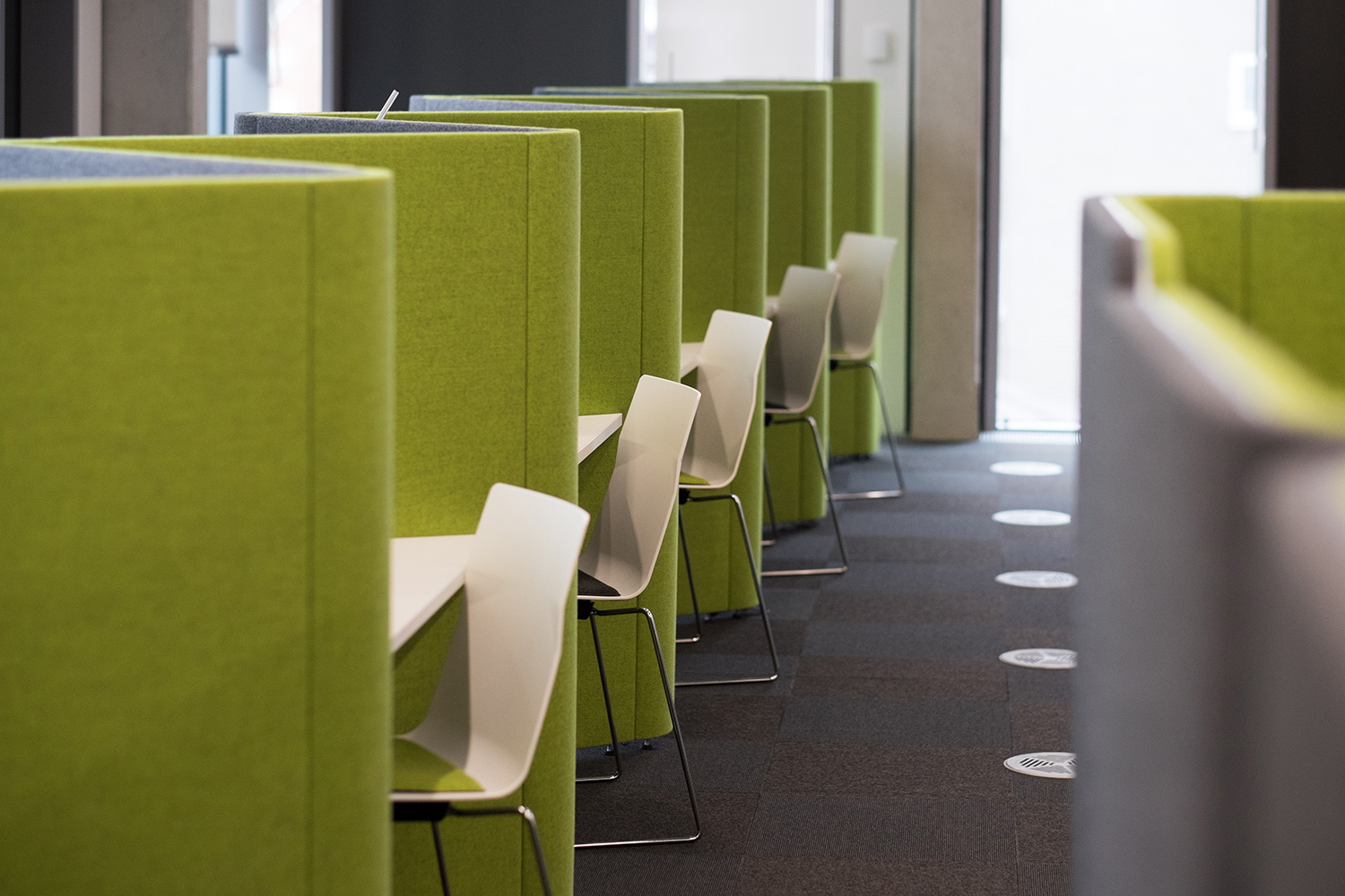 Kabinen sowohl für die Arbeit in Gruppen als auch für stilles Arbeiten