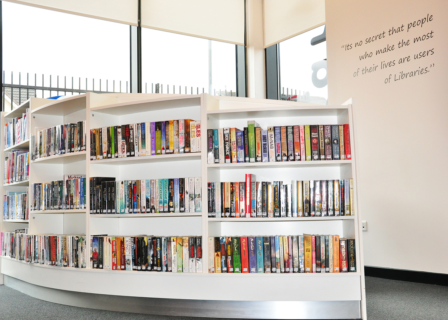 Für die Kinderabteilung hat man eine Mini-Genius Bar nachgebildet in einer kleineren und niedrigeren Ausführung. Eine klare Beschilderung und poetische Graphiken bilden einen lyrischen Hintergrund, mit dem Ergebnis einer zugleich technologisch dynamischen und doch einladenden Bibliothek, die von der Gemeinde angenommen und gerne benutzt wird.
