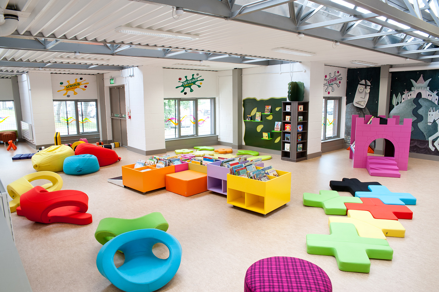 Eltern und Kinder sind eine besonders wichtige Benutzergruppe der Bibliothek und Ziel war, einen einladenden und speziellen Raum für sie zu schaffen, wobei ein Gleichgewicht zwischen der Unabhängigkeit sowie dem Spiel- und Erforschungsdrang der Kinder und den notwendigen Sicherheits- und Kontrollmaßnahmen bestehen bleiben musste. Die Einrichtungsauswahl ist dynamisch, interaktiv und modern, um die Kinder zu begeistern und sie Erfahrungen machen zu lassen, die alle Erwartungen übertrifft. Dabei ist es äußerst wichtig, dass die Kinderabteilung der Bibliothek ihre Bedürfnisse wirklich erfüllt und nicht nur eine kleinere Version des Raums für die Erwachsenen ist.