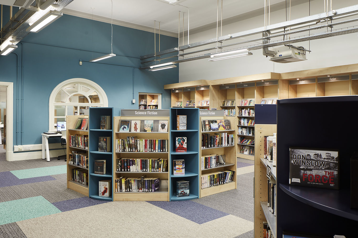 Der Hauptbereich der Bibliothek für Erwachsenen- und Jugendliteratur wurde komplett umgestaltet, wobei das Fachwissen unseres Teams zu allen Designelementen beitrug.