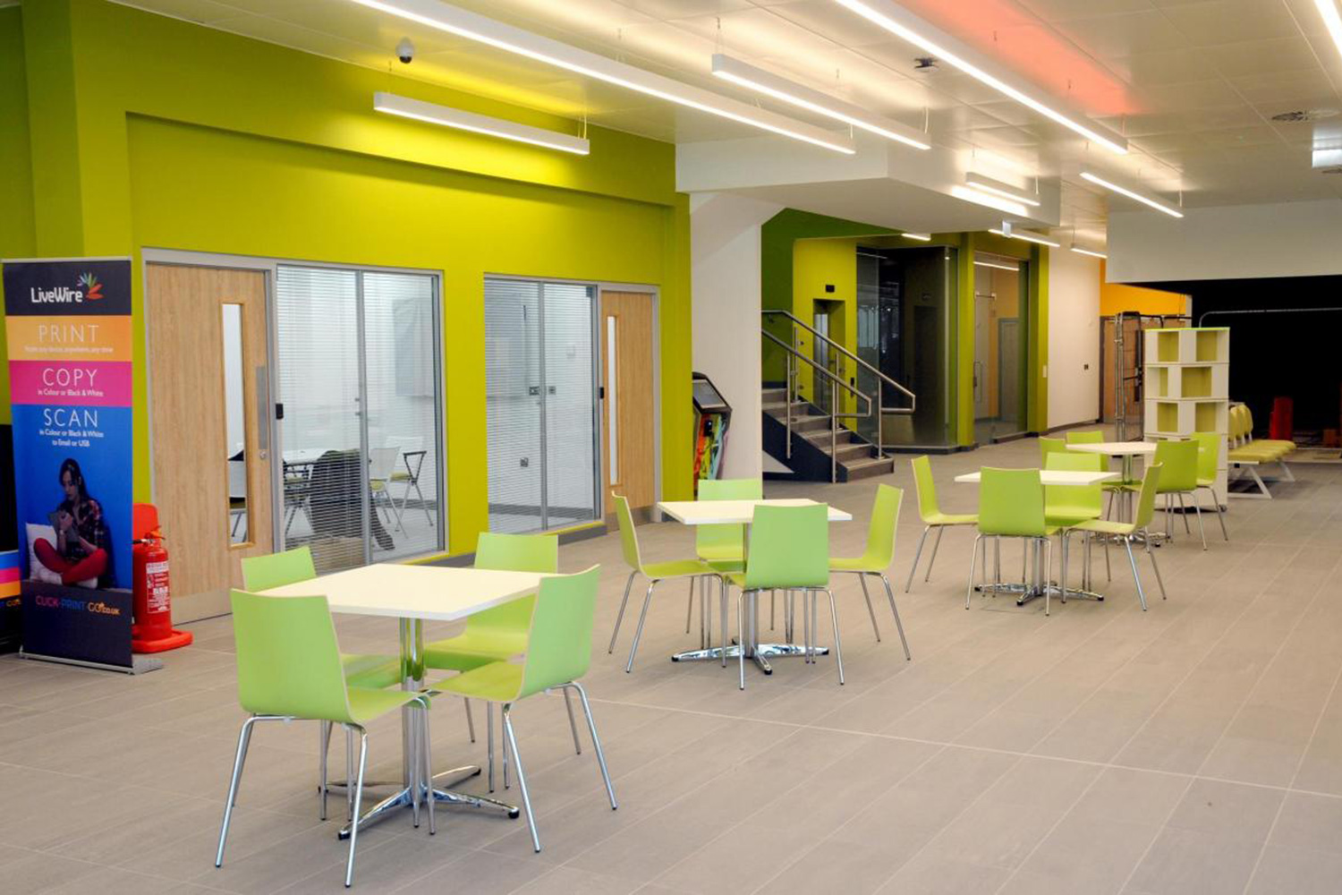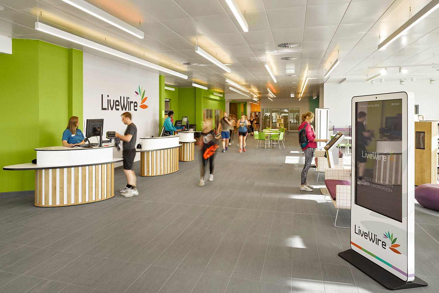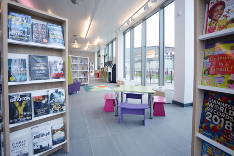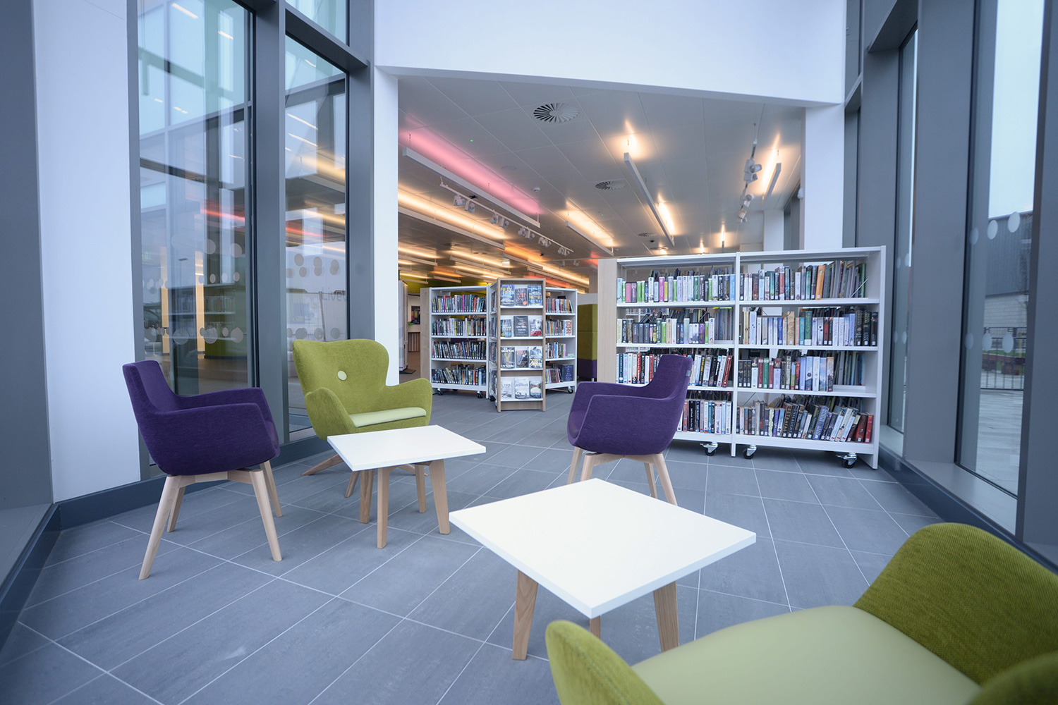 Great Sankey Neighbourhood Hub ist eine integrative Einrichtung. Das Gebäude beinhaltet Gesundheits-, Freizeit und Bibliotheksteile für Warrington. an integrated facility. Unser englische Niederlassung “Thedesignconcept“ hat eng mit allen beteiligten Stellen in dem Projekt zusammen gearbeitet und Produktlösungen entwickelt die zu den Architektenvorstellungen passen. Um sicherzustellen, dass die besonderen Bedürfnisse von Demenzkranken berücksichtigt werden, arbeiteten wir eng mit dem Stirling Dementia Services Development Centre zusammen um deren Zustimmung zu erhalten.