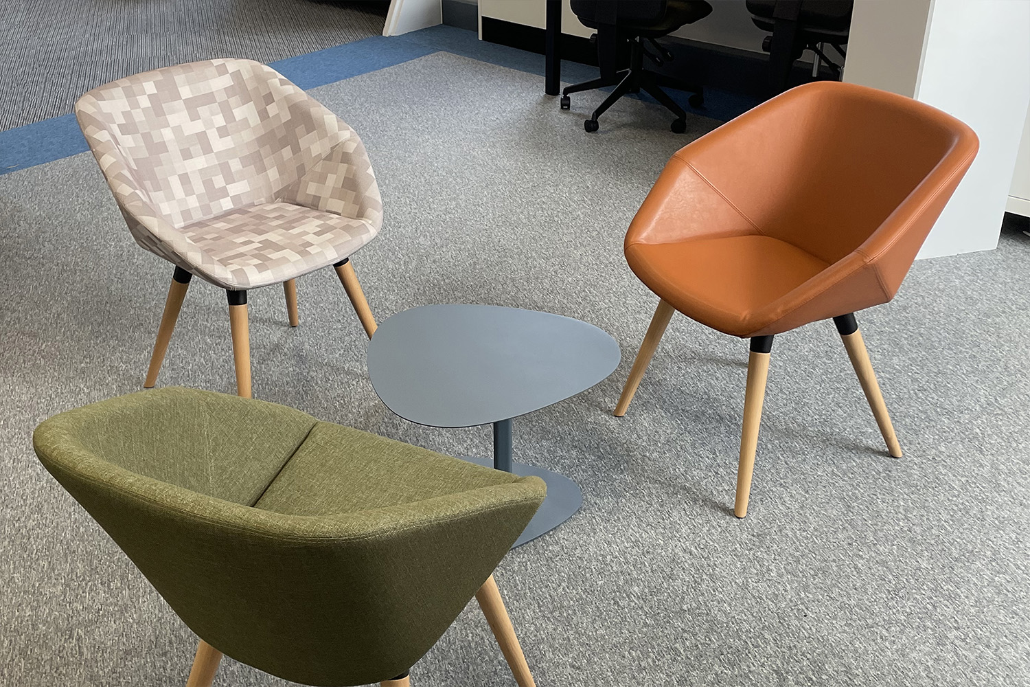 Gute Sichtlinien sind von entscheidender Bedeutung, weshalb die Schreibtische der Mitarbeiter so angeordnet sind, dass sie die gesamte offene Bibliothek überblicken können. Durch den Einsatz von verstellbaren Info-Pods haben wir die Sicht überall verbessert und den Mitarbeitern mehr Bewegungsfreiheit gegeben, was auch einen sozialeren Raum fördert, in dem die Gemeinschaft im Mittelpunkt steht.