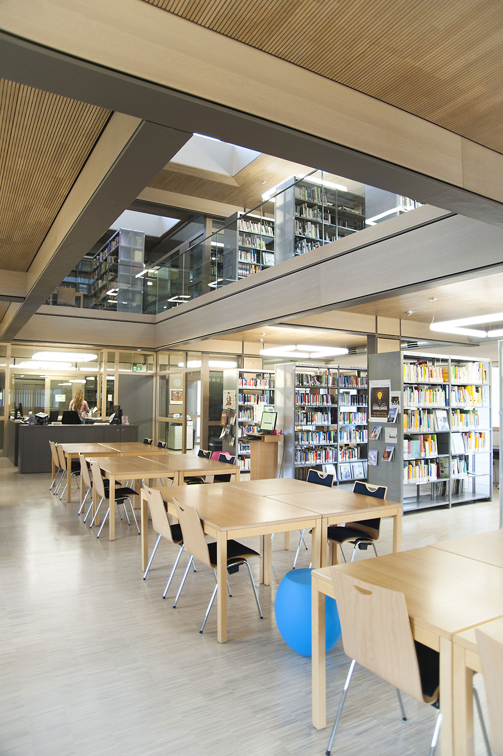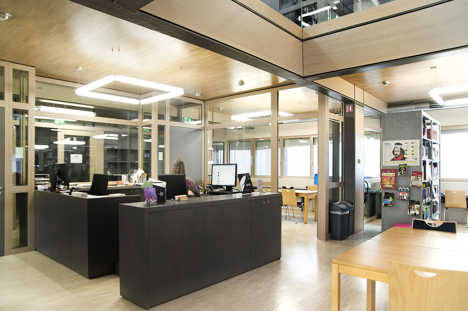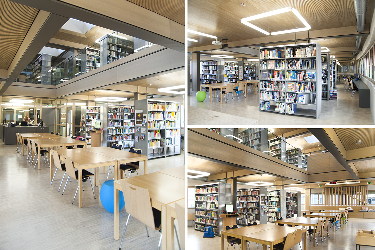 2015 wurde ein Teil der Privatschule Fieldgen renoviert. Die neue Bibliothek wurde an zentraler Stelle im Gebäude platziert. Dies war zunächst schwierig. Doch jetzt ist sie gut erreichbar für alle und kann deshalb auch als Klassenraum oder Lernzone dienen. Eine integrierte Bühne ist der perfekte Ort für Lesungen und Aufführungen.