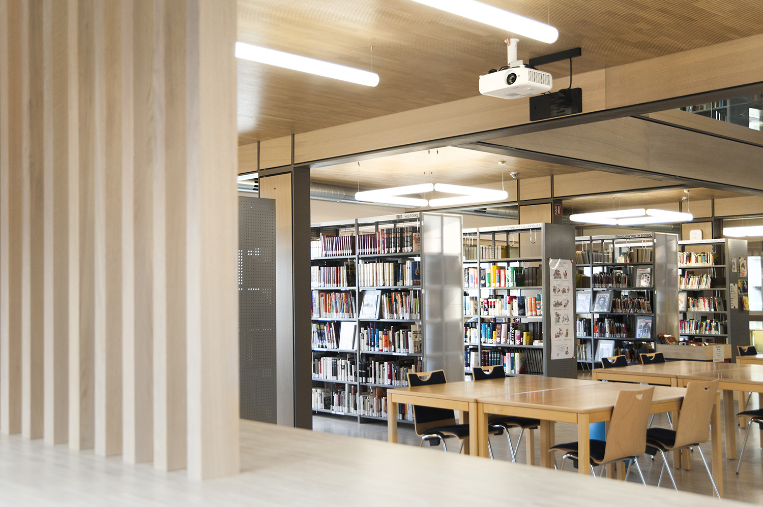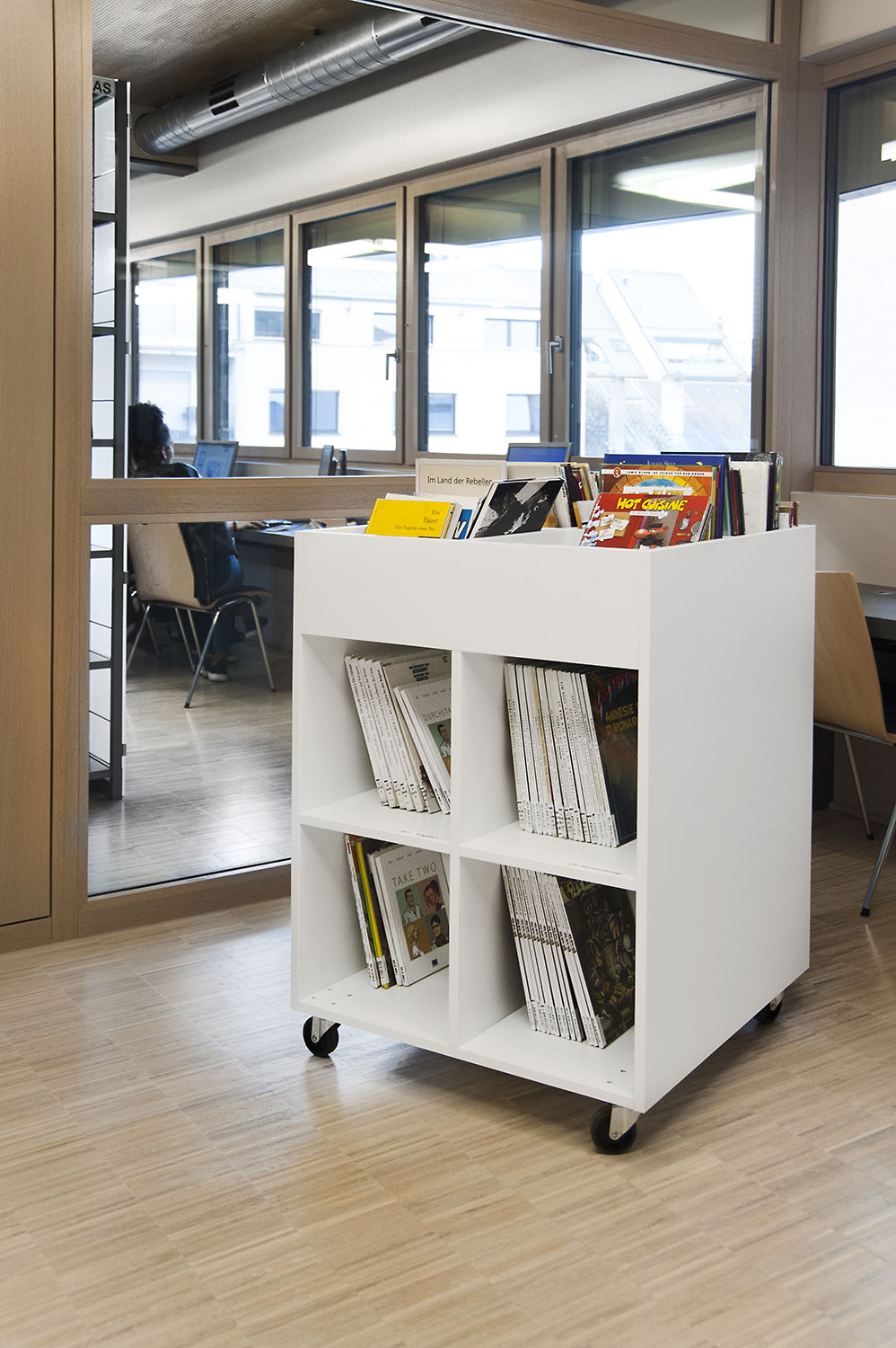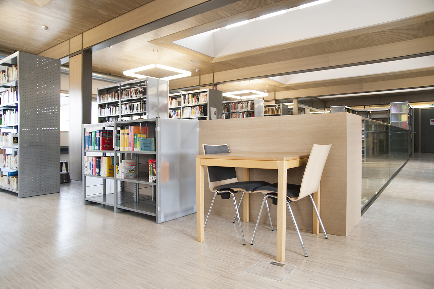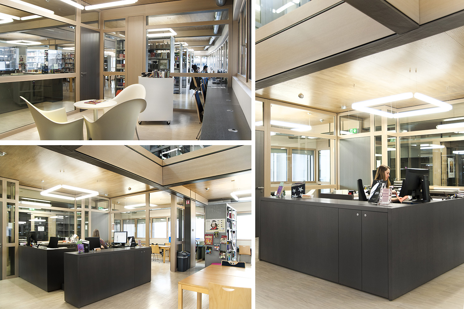 2015 wurde ein Teil der Privatschule Fieldgen renoviert. Die neue Bibliothek wurde an zentraler Stelle im Gebäude platziert. Dies war zunächst schwierig. Doch jetzt ist sie gut erreichbar für alle und kann deshalb auch als Klassenraum oder Lernzone dienen. Eine integrierte Bühne ist der perfekte Ort für Lesungen und Aufführungen.