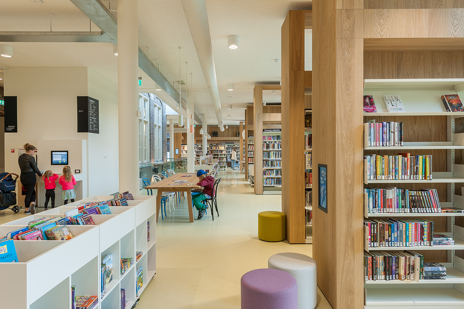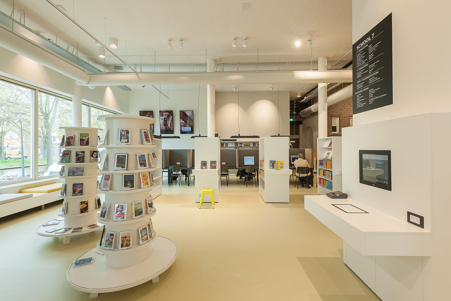 Die neue Bibliothek in Den Helder befindet sich in einem 100 Jahre alten Gebäude, das vormals der Schule 7 gedient hat. Das neue Gebäude für die Bibliothek wurde um das bereits bestehende herum gebaut. Das Ergebnis ist ein erfolgreicher Mix zwischen Authentizität und moderner Atmosphäre. Evelien van Veen, Van Veen Architects BV, Rotterdam, zeichnet verantwortlich für die Planung des Gebäudes, für das Marcel van der Veer, MARS Interior designers, die Inneneinrichtung entworfen hat.