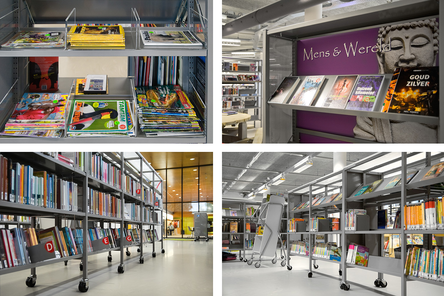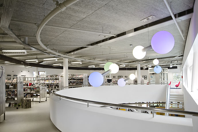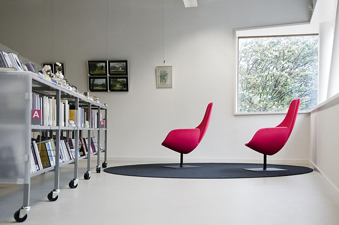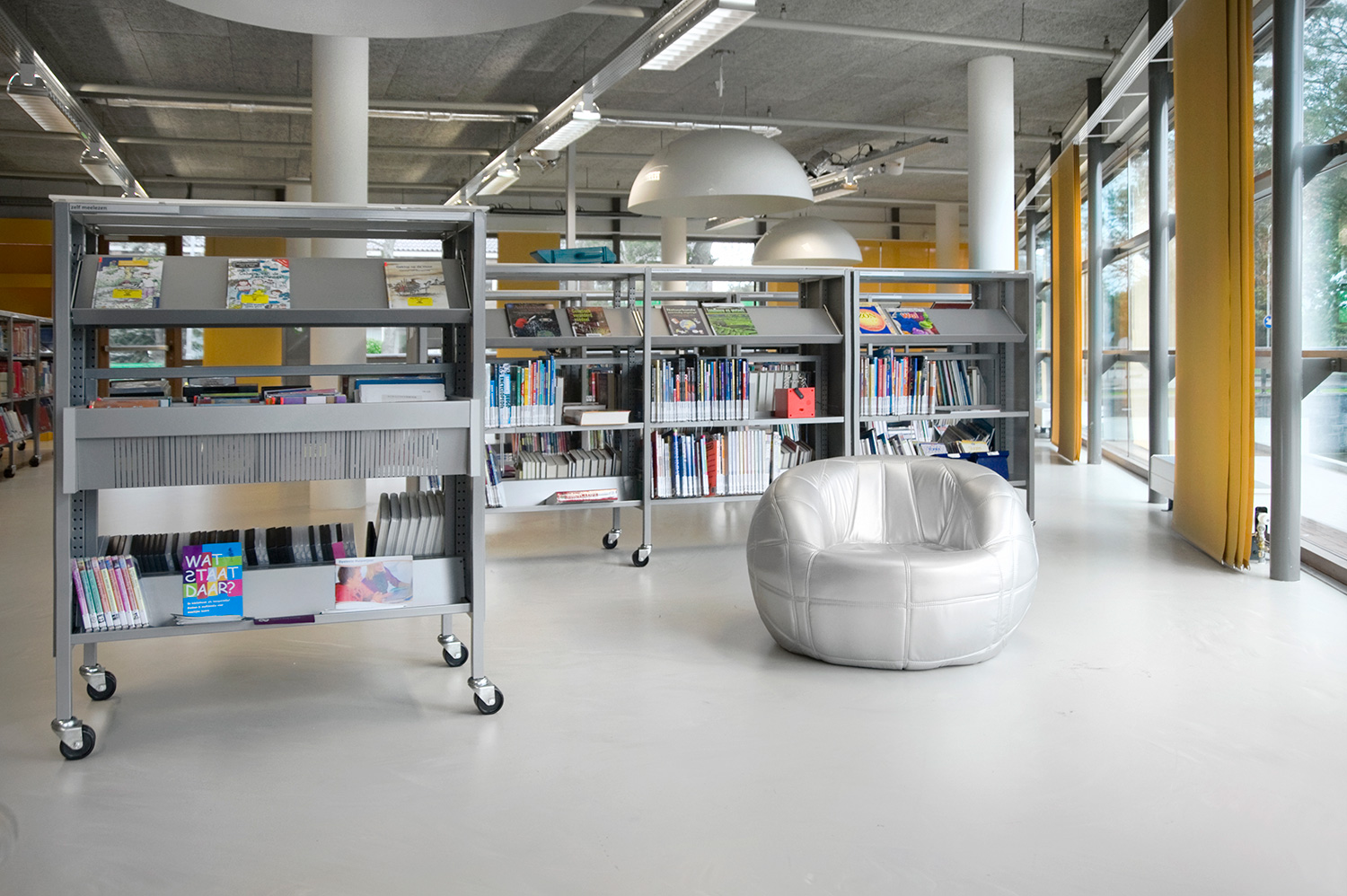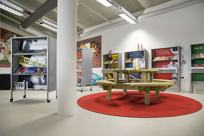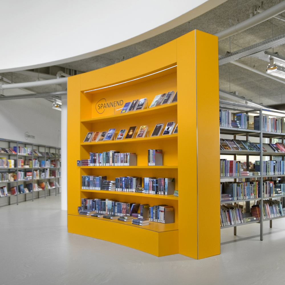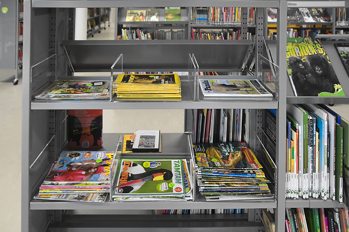 Diese Lösung geht aber noch einen Schritt weiter. Ergänzend zur gewöhnlichen Standardeinrichtung wurde die Bibliothek in Heemskerk mit einigen individuell gestalteten Gegenständen ausgestattet, mit denen die Architekten einzigartige Elemente in ihr Design integrieren konnten.