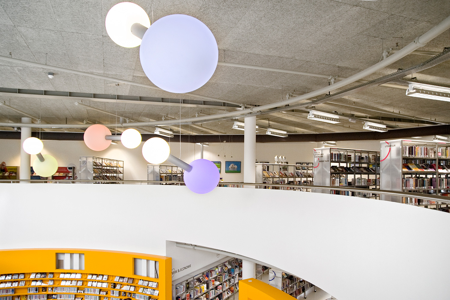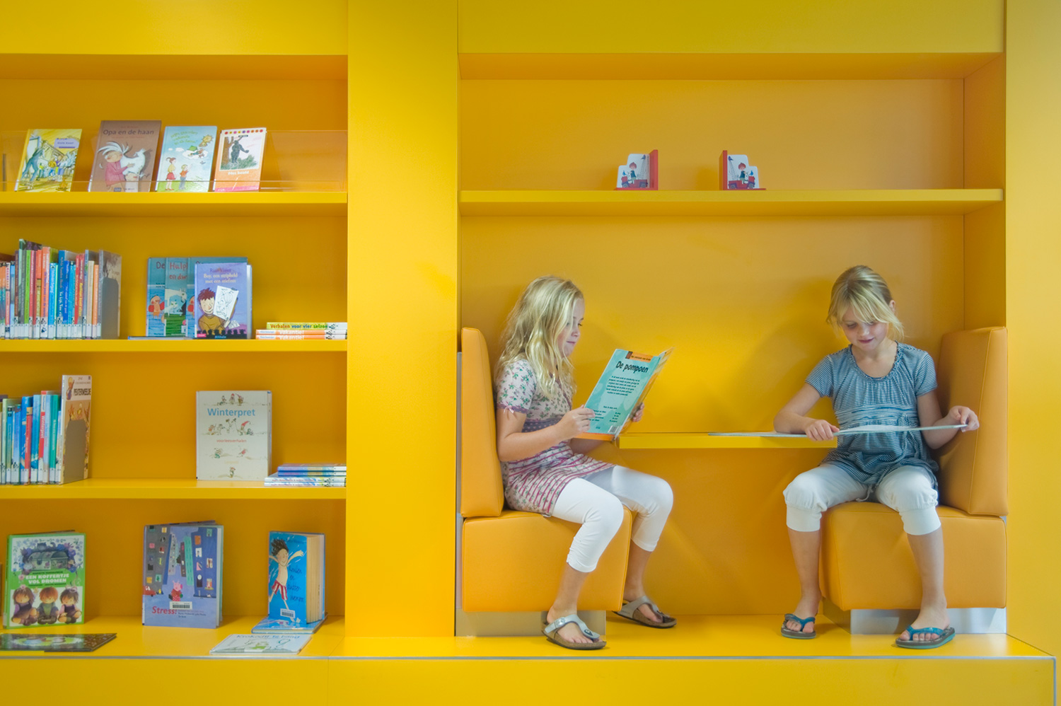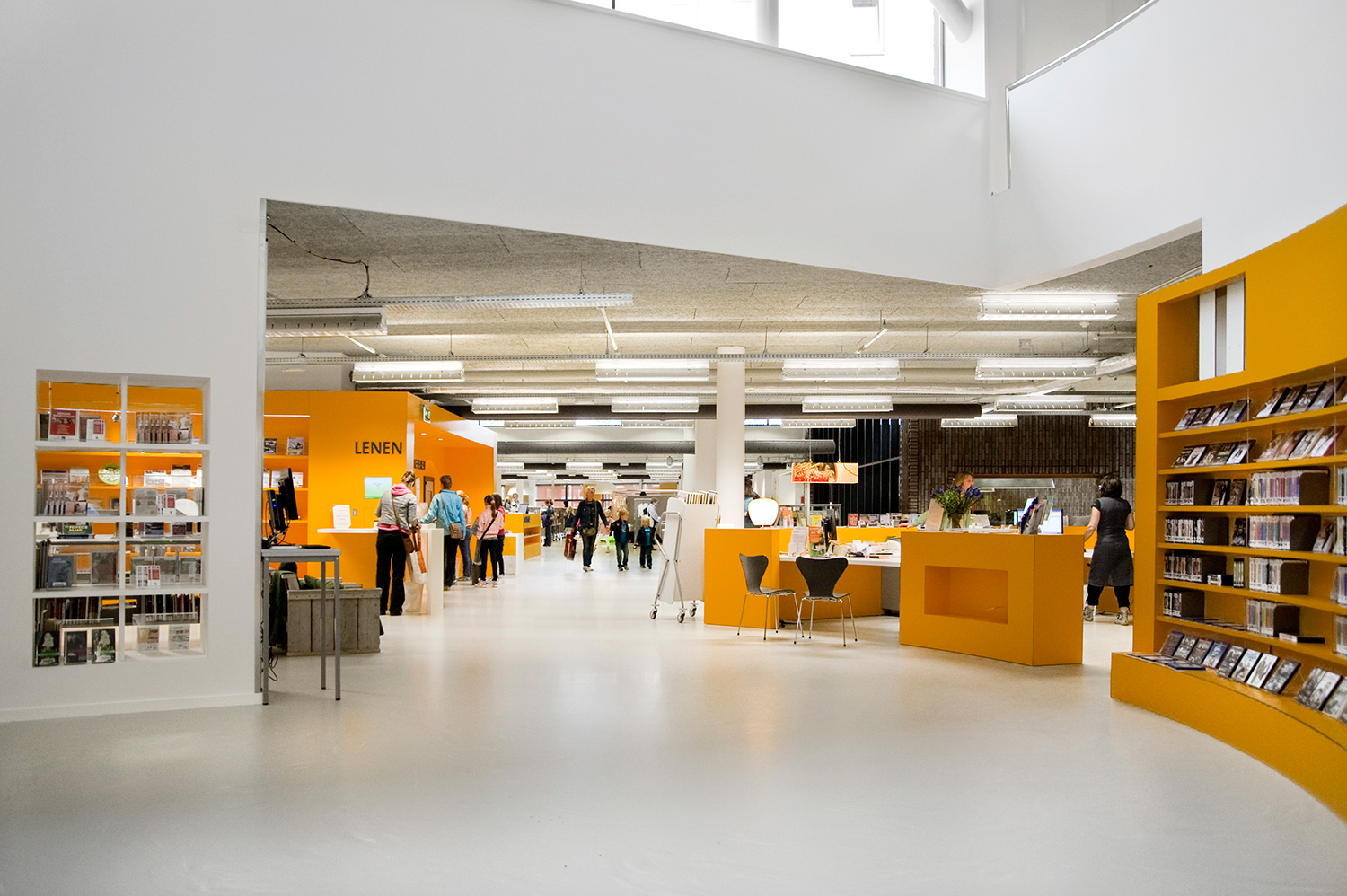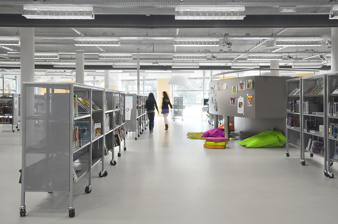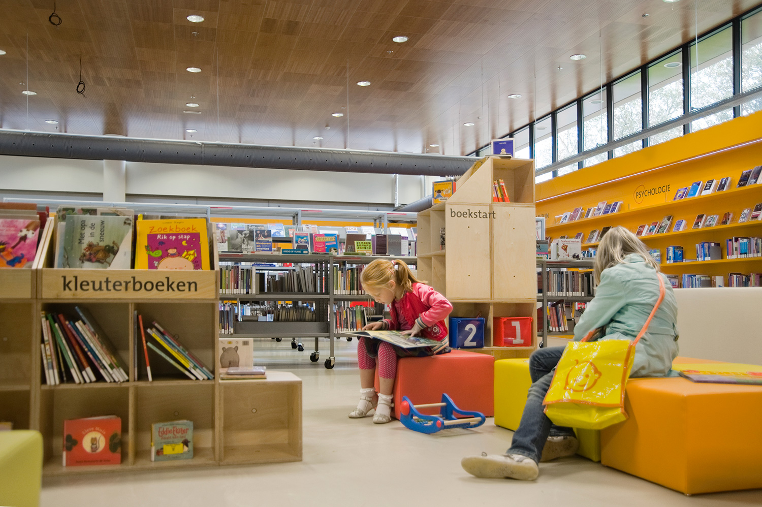 Diese Lösung geht aber noch einen Schritt weiter. Ergänzend zur gewöhnlichen Standardeinrichtung wurde die Bibliothek in Heemskerk mit einigen individuell gestalteten Gegenständen ausgestattet, mit denen die Architekten einzigartige Elemente in ihr Design integrieren konnten.