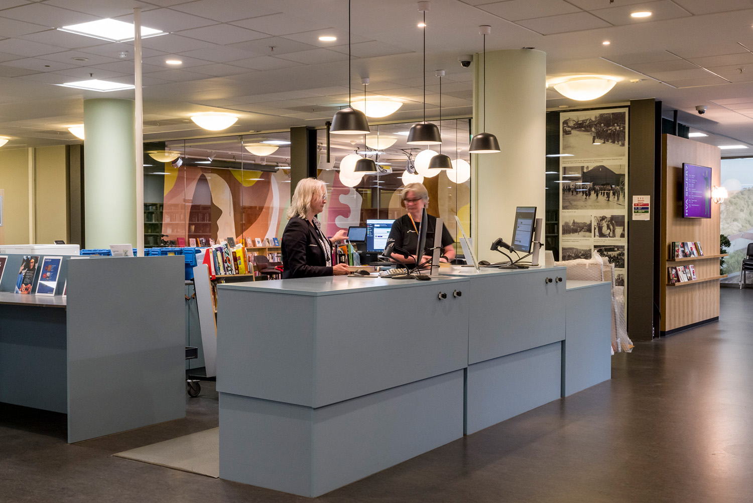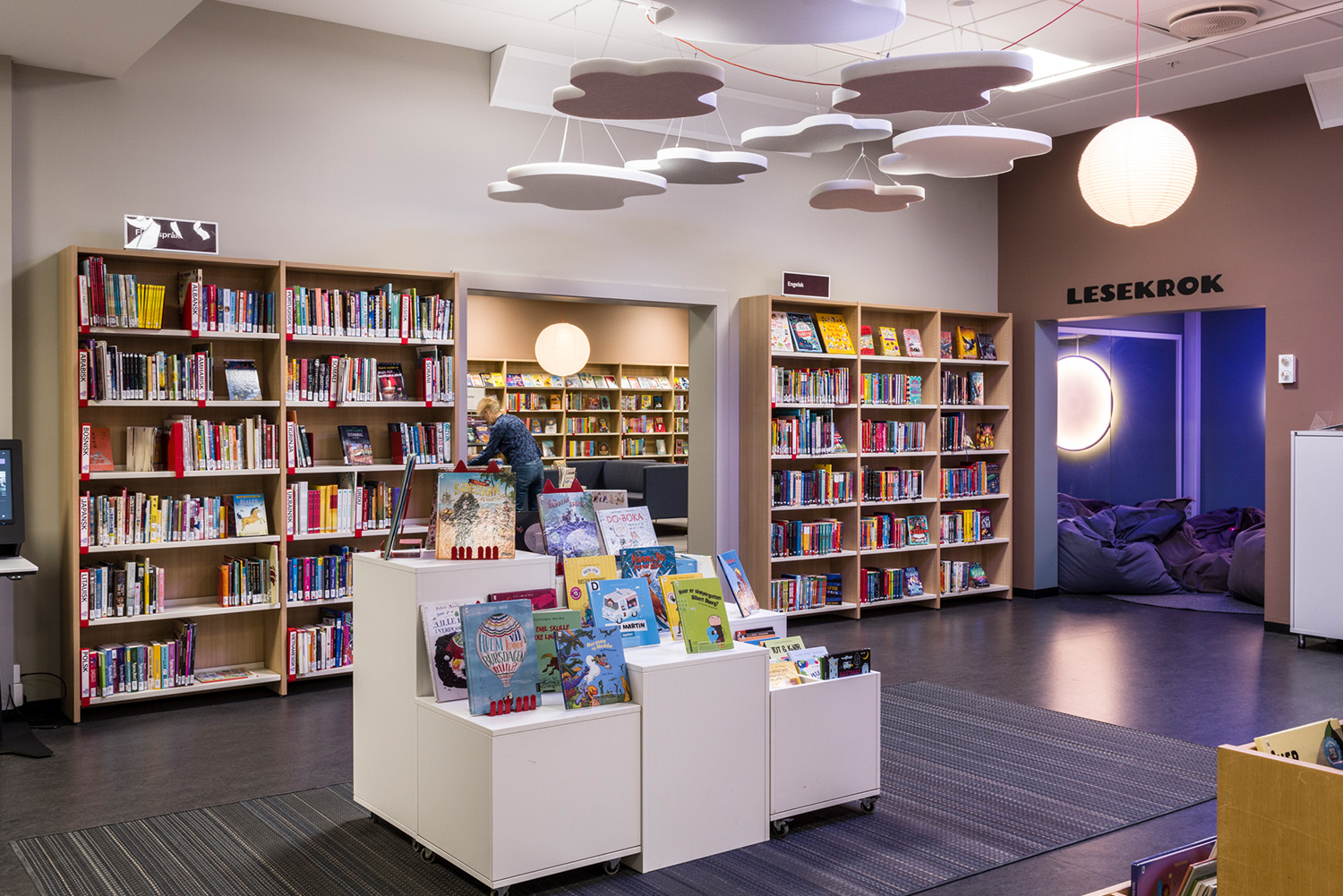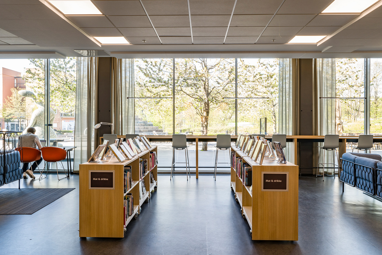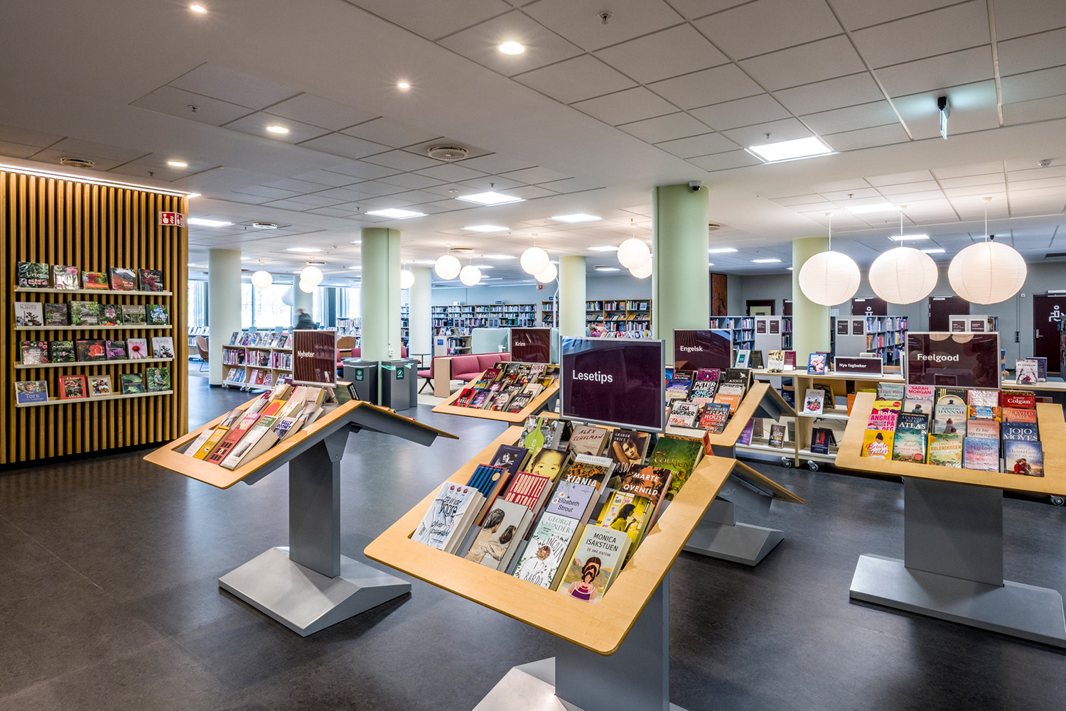 Die Bibliothek von Asker ist ein modernes Wahrzeichen von Asker und ein lebendiges Zentrum für Bildung, Inspiration und Gemeinschaft. Ihre zentrale Lage mit großen Glasfassaden lädt Besucher auf natürliche Weise zum Eintreten ein und macht die Bibliothek zu einem wichtigen und beliebten Treffpunkt. Nach einer umfassenden Modernisierung der Räumlichkeiten mit einer neuen Raumaufteilung, neuen Farben und dem Austausch der meisten Regale präsentieren sich die Räumlichkeiten nun in einer zeitgemäßen und einladenden Atmosphäre. Diese Modernisierung zieht weiterhin neue Besucher in die gemütlichen Räumlichkeiten.